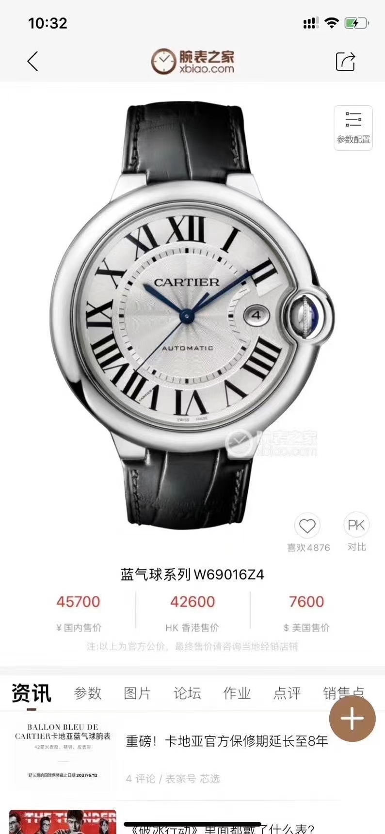 82,卡地亚,蓝气球系列,w69016Z4,表径:42.1mm,机械男表,单表无附件