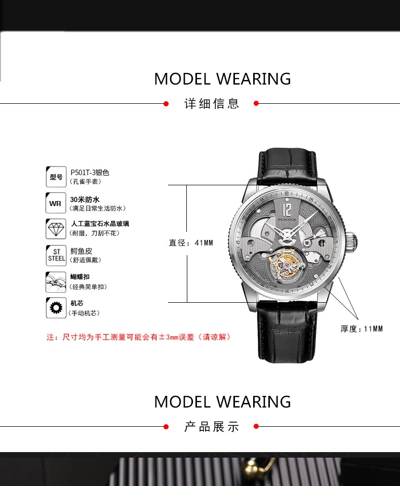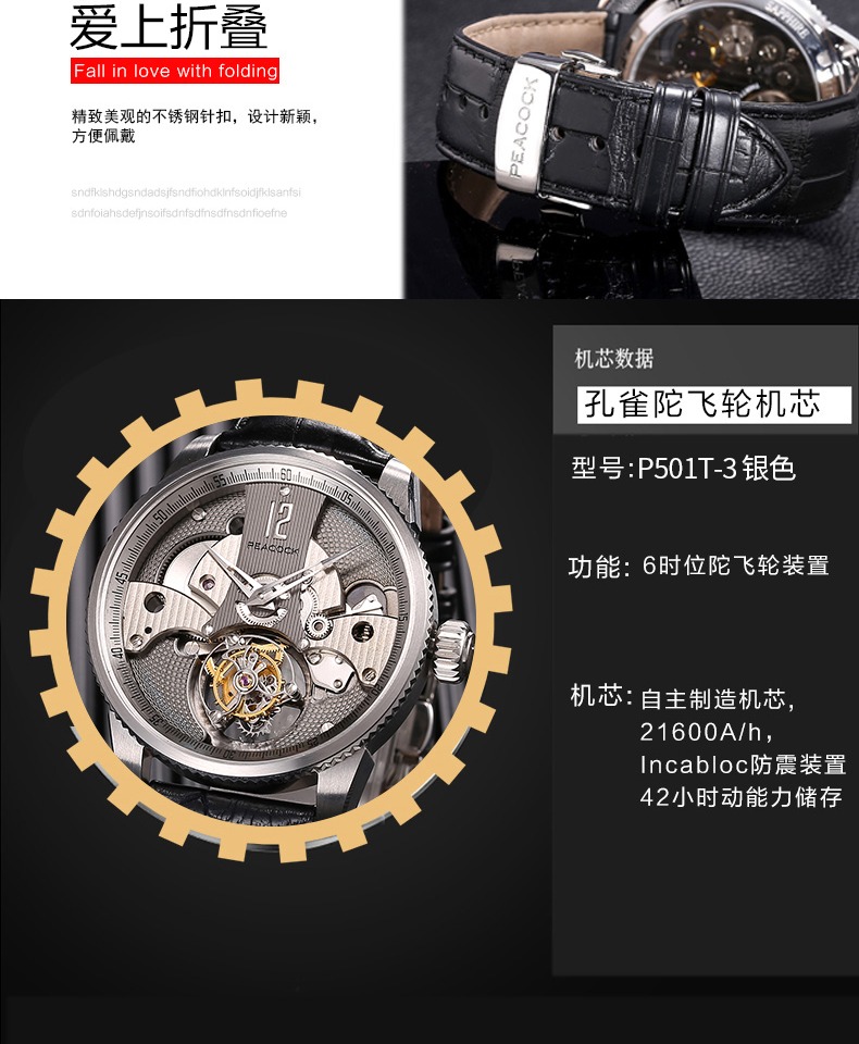 轻奢顶级,孔雀表Peacock陀飞轮腕表机械手表。孔雀表业始于1957年,是国内三大表业基地之一,中国陀飞轮机芯生产基地。中国当代大儒,思想家,著名国学大师范增先生曾亲爱题字。该系列陀飞轮腕表无论是做工还是机芯工艺均达到国际先进水平。
