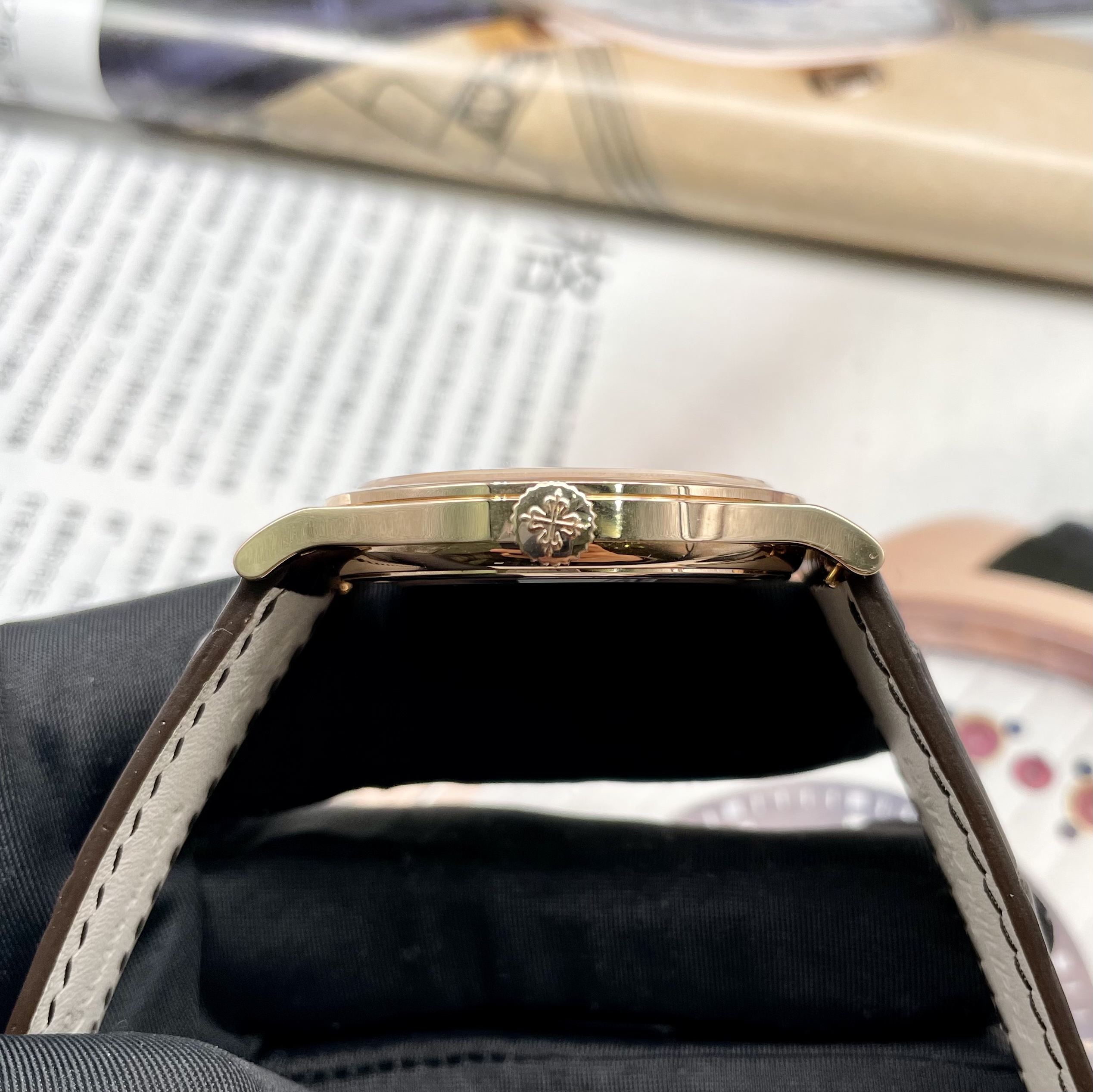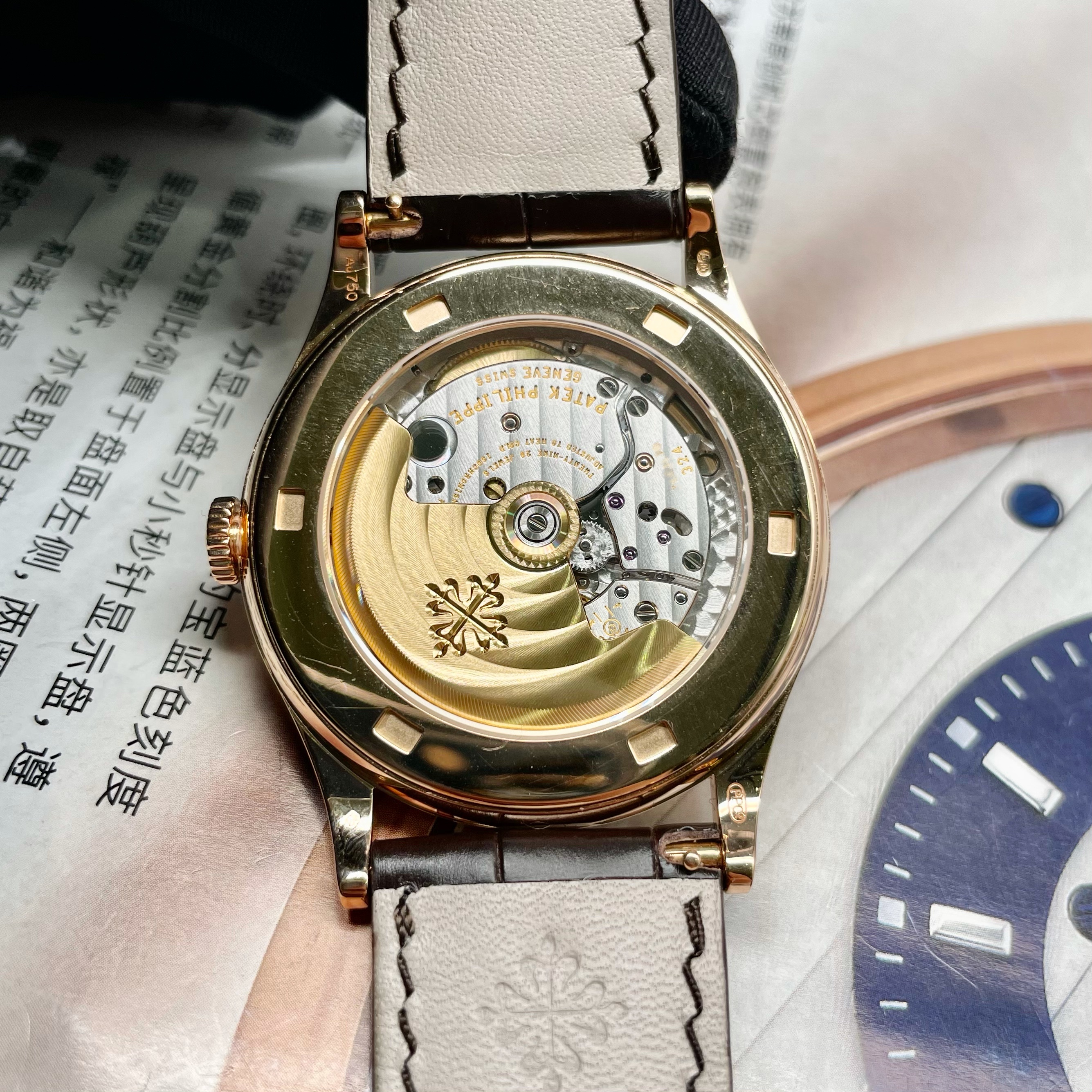 百达翡丽 系列:古典表系列 型号:5296R 材质:18k玫瑰金 镜面:蓝石宝玻璃 表盖:透底 表扣:针扣 表径:38mm 机类芯型:自动机械机芯 附件:单表 公价:197600 现在价好出 包回收