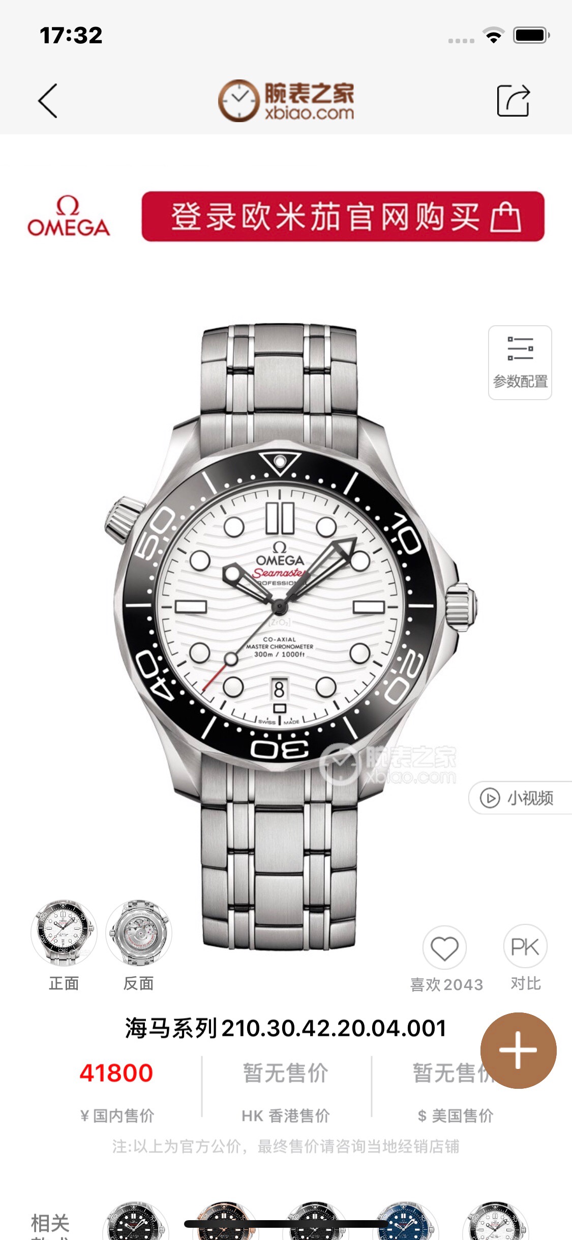 公价41800欧米茄海马系列 型号210.30.42.20.04.001 自动机械 精钢材质 新款海马 水波纹盘面 42mm表径 20年全套