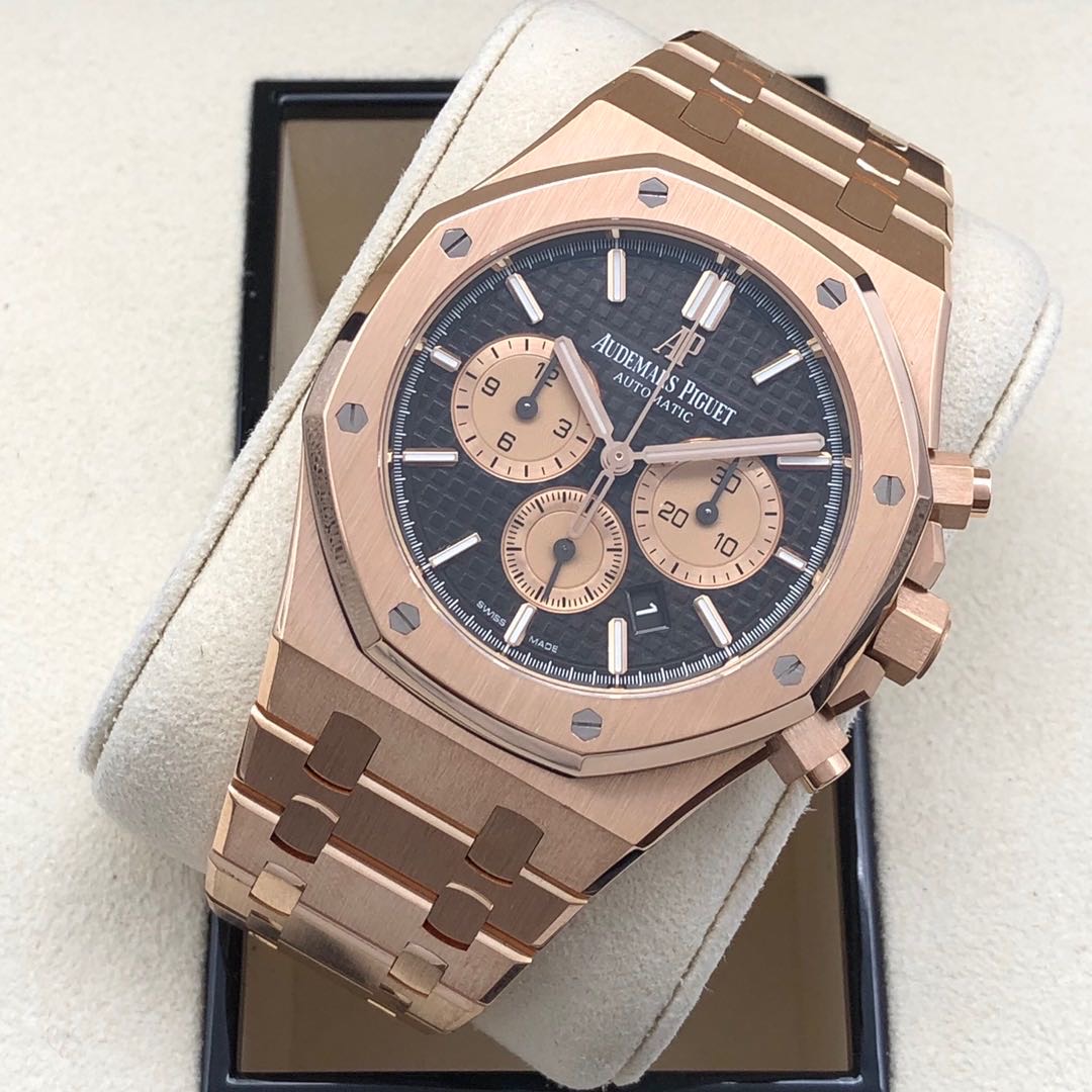 T 公价473000 爱彼皇家橡树系列 型号26331OR 自动机械 18k玫瑰金材质 41mm表径 日期显示 计时功能 20年5月全套 国际保修至25年