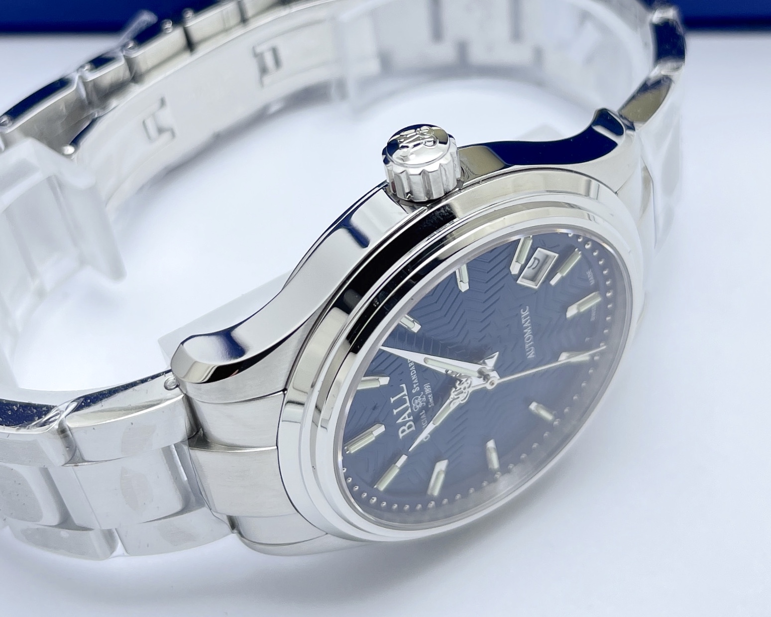 波尔铁路长官系列自动机械男士腕表,钢质表壳表链,坚固耐用,蓝色表盘饰以特殊纹路,令人眼前一亮,带夜光、日期显示,满足日常需求。表径39mm,全长腕周!公价11600