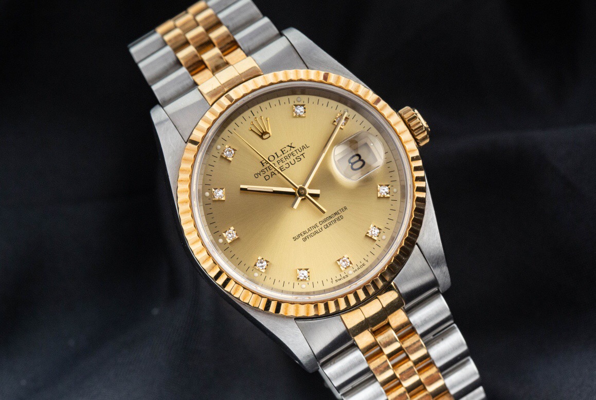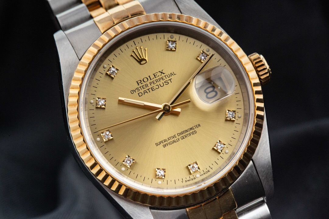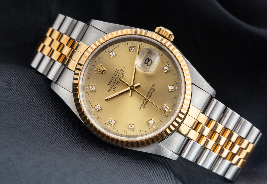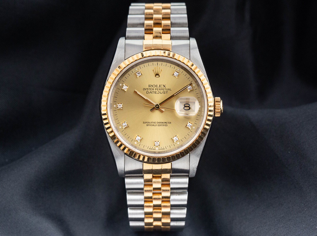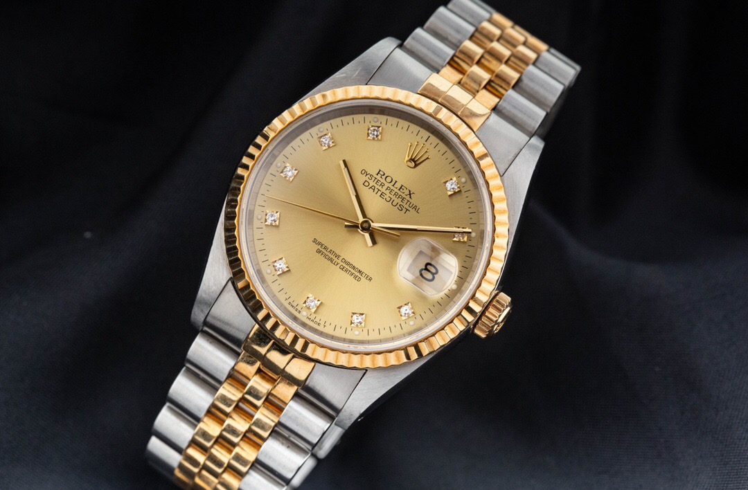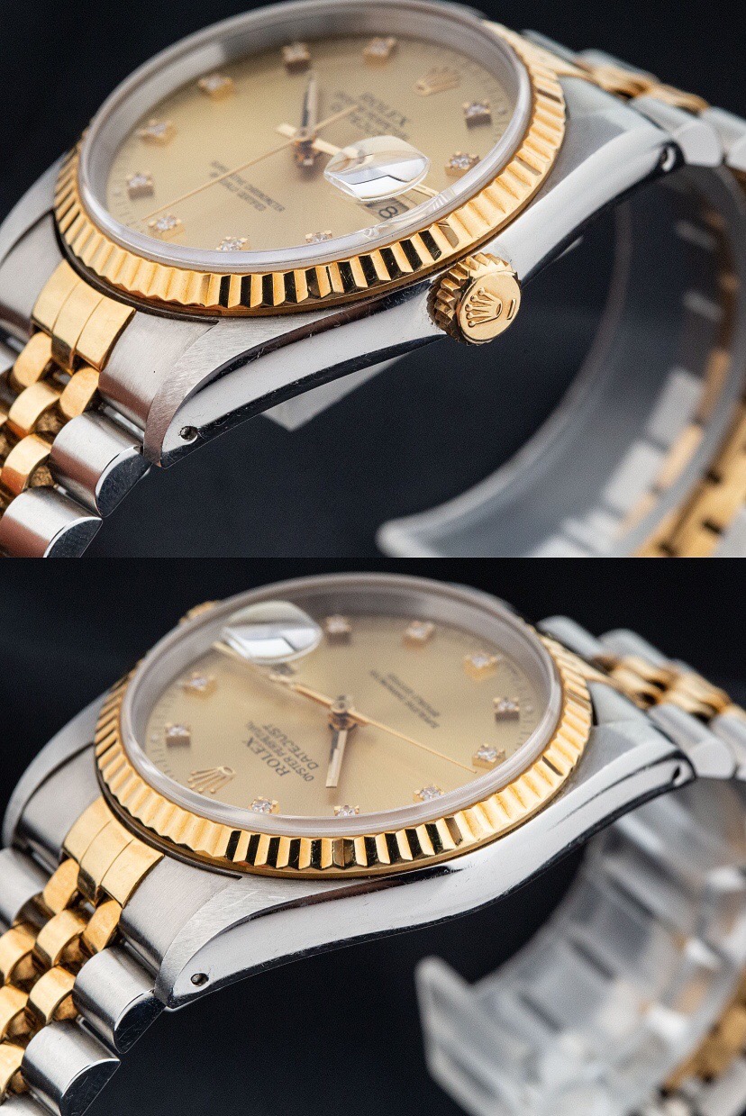 劳力士16233 一代经典之作 间金 香槟面 壳形饱满 表带直挺 极品成色 36mm 刻度钻 日期显示 自动机械 现好价出