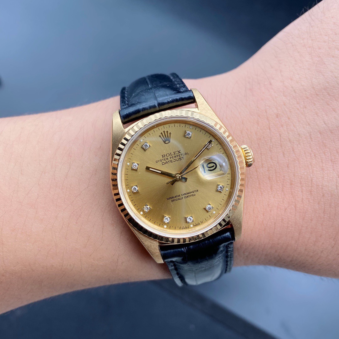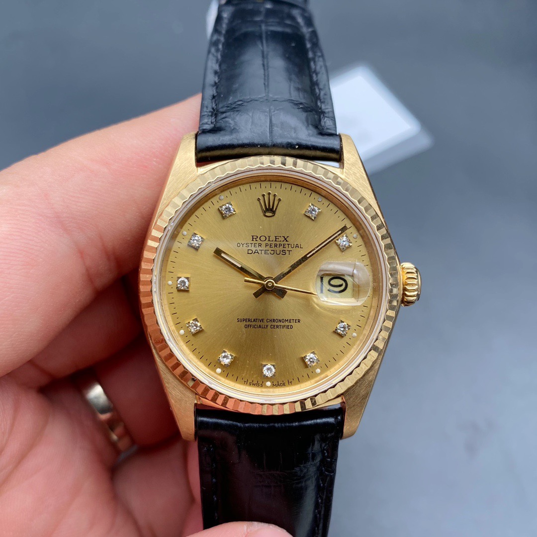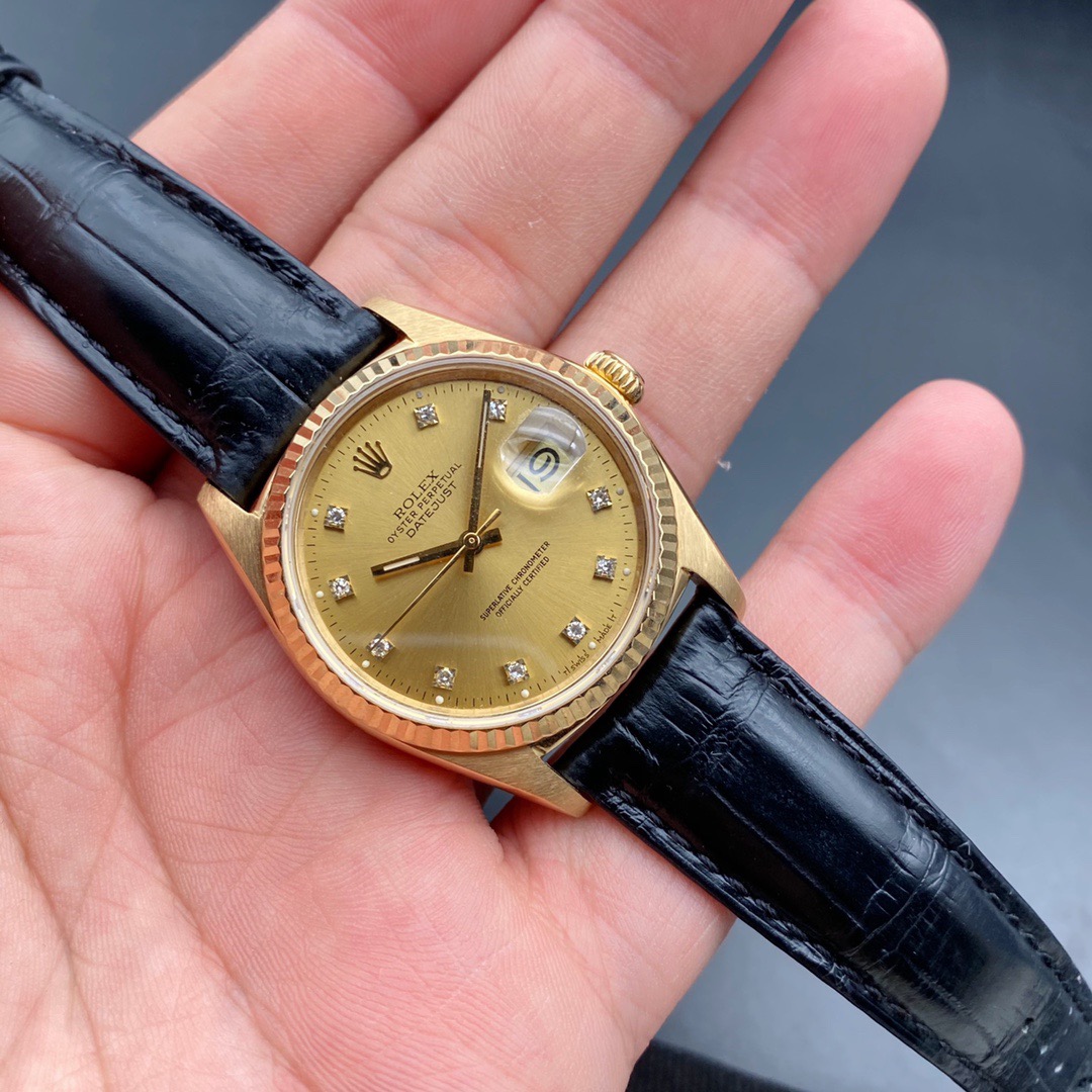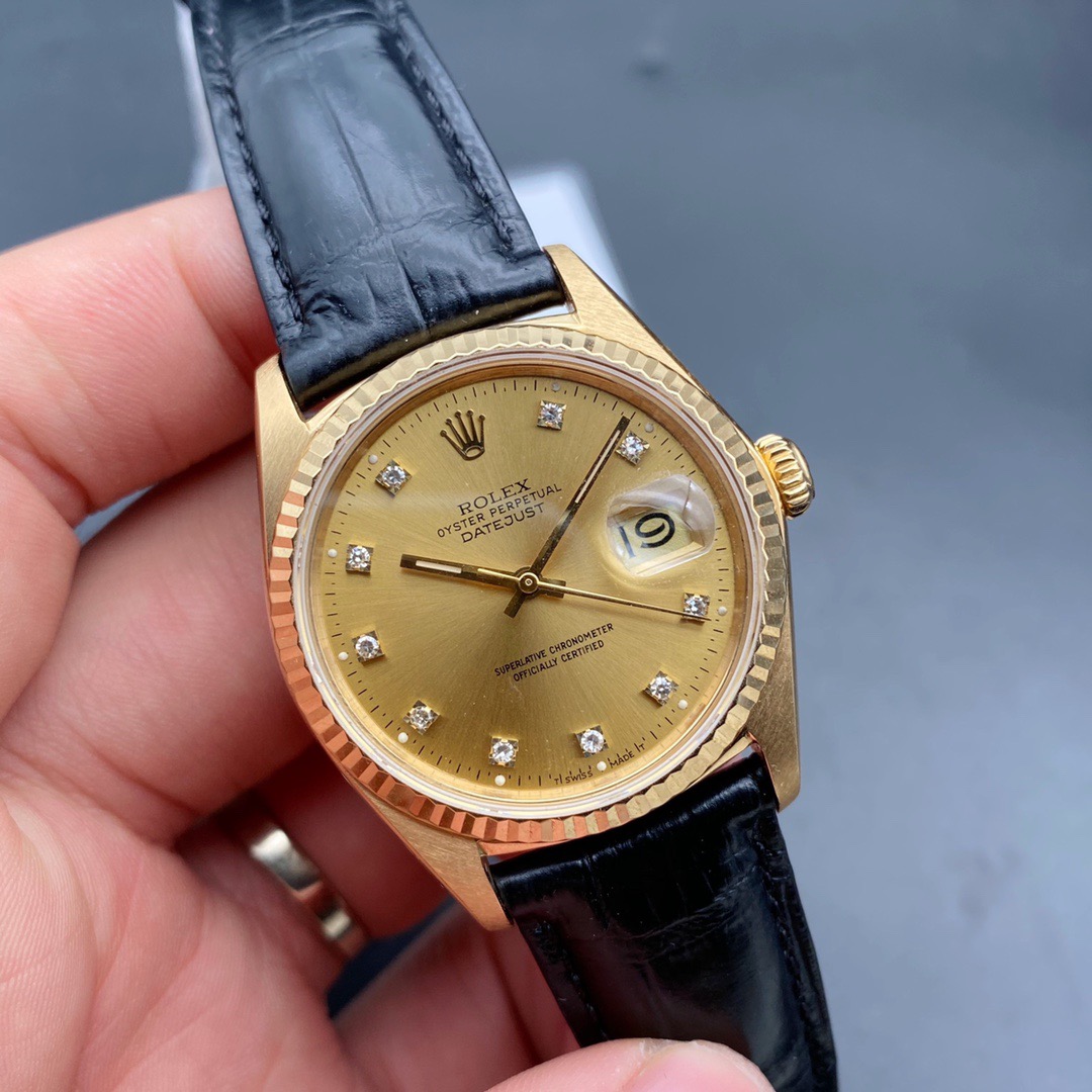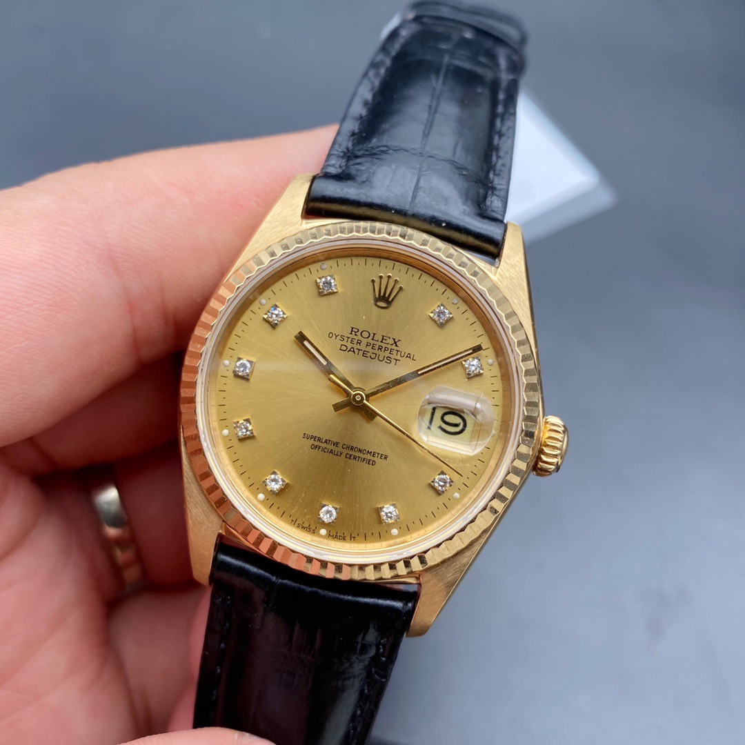全金捞劳力士星期日志型16018男表,搭载自动机械3035机芯,黄金18k实金打造,经典中的经典,36mm表径钻石刻度,日历显示,走时准确