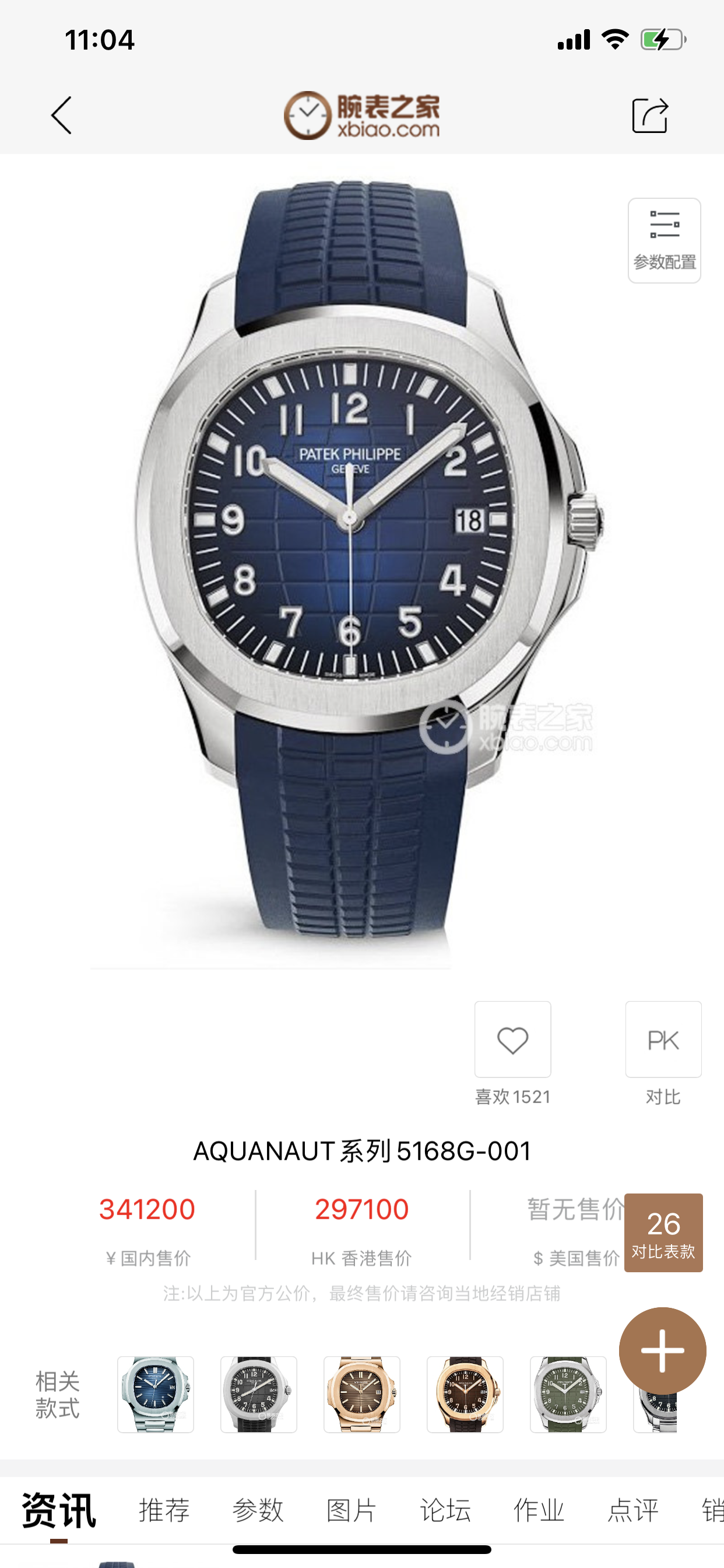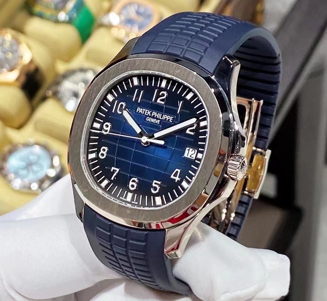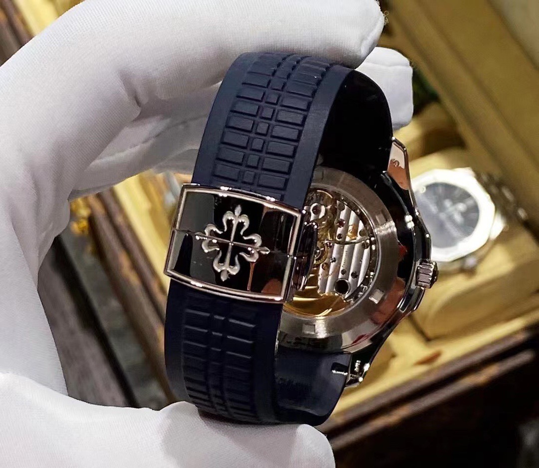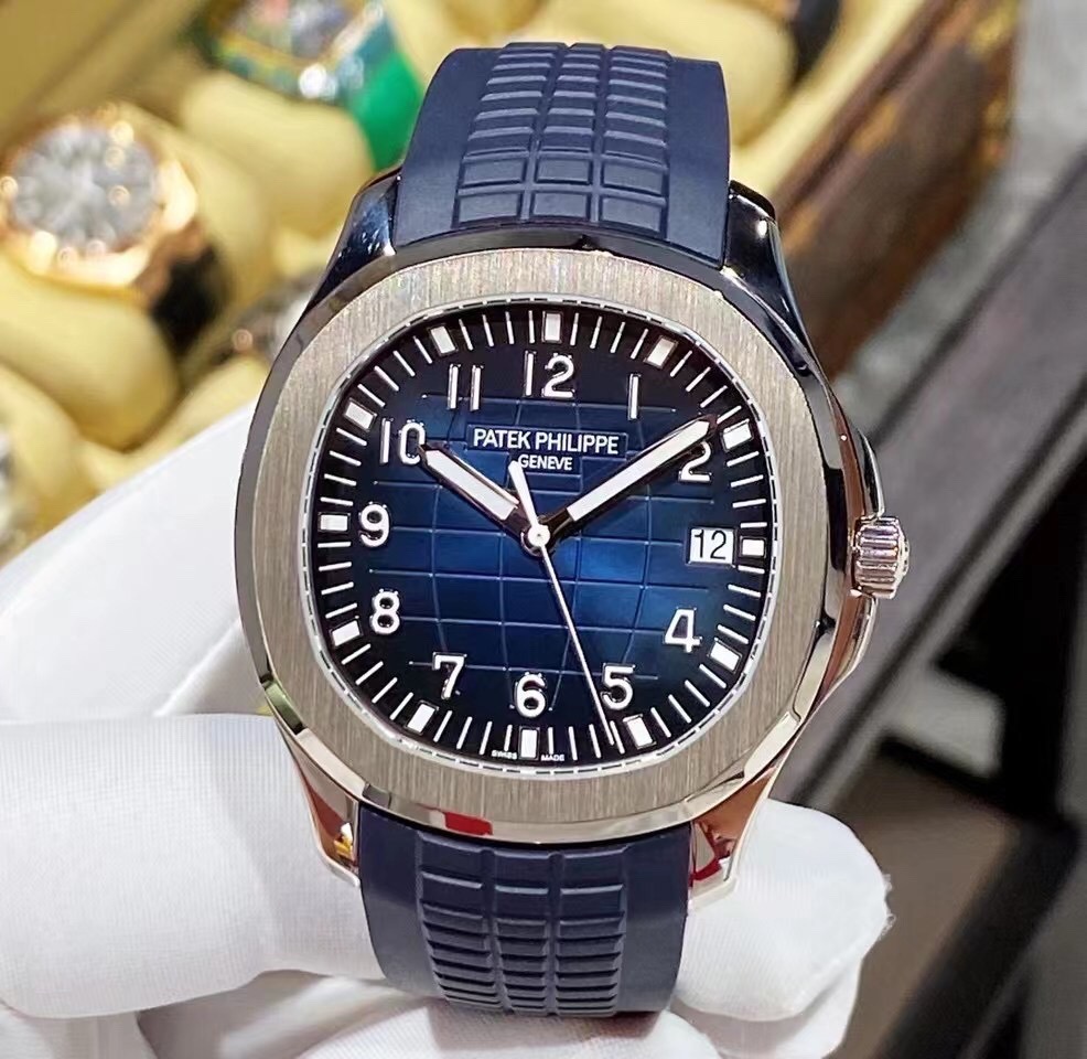 百达翡丽pp5168G新款大号手雷二十周年限量版,18k白金 全自动机械 背透机芯 男士表径42.2mm 蓝盘 夜光刻度 日历显示 胶带折叠扣 专柜一生一表难求,全套