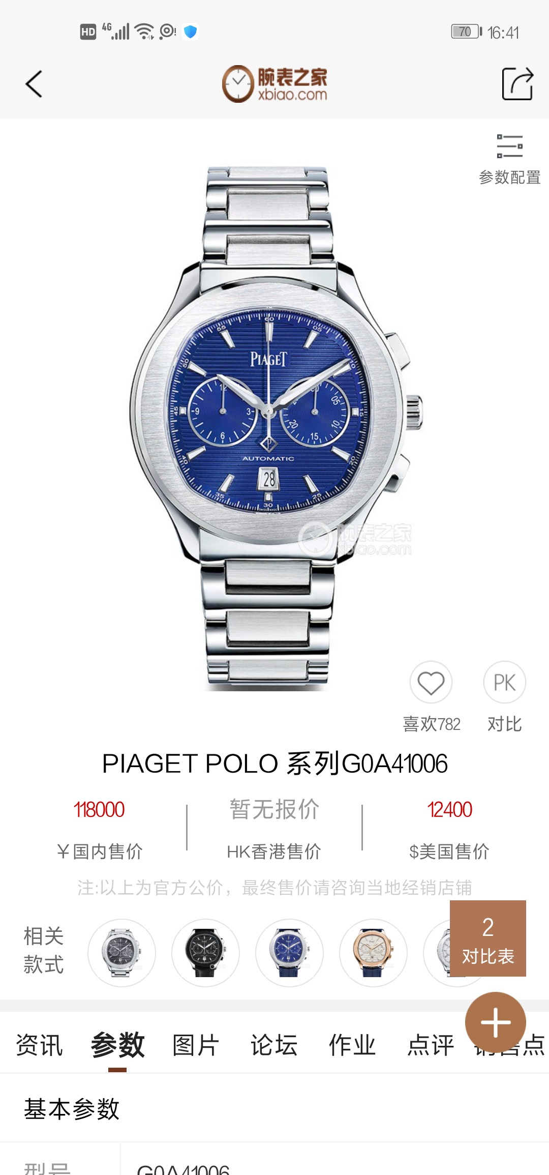 伯爵PIAGET POLO 系列-G0A41006,精钢自动机械男表,表径: 42mm ,腕周:180mm,附件:18年7月17日全套,保修:店铺保修一年,专柜价:118000元,现好价69800元