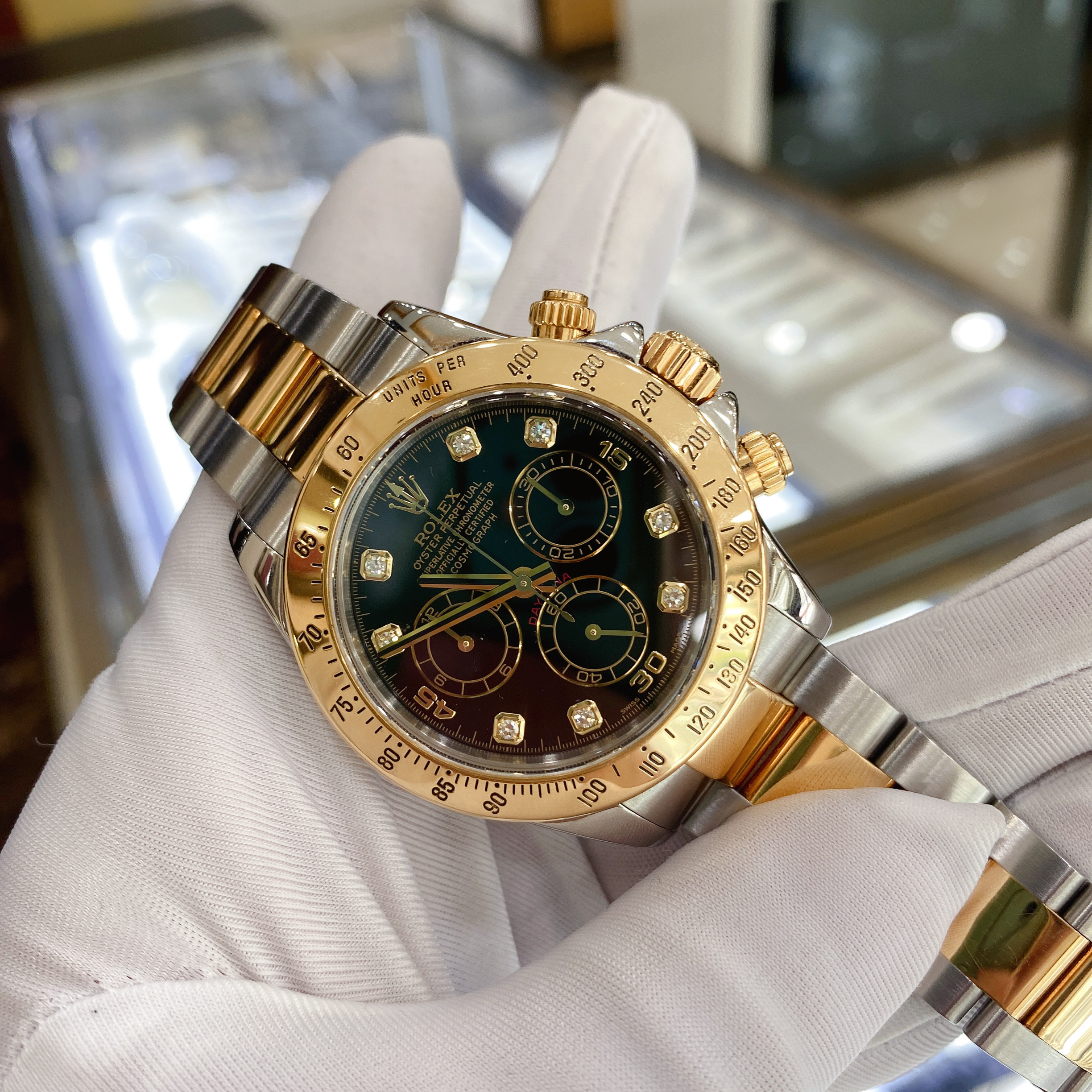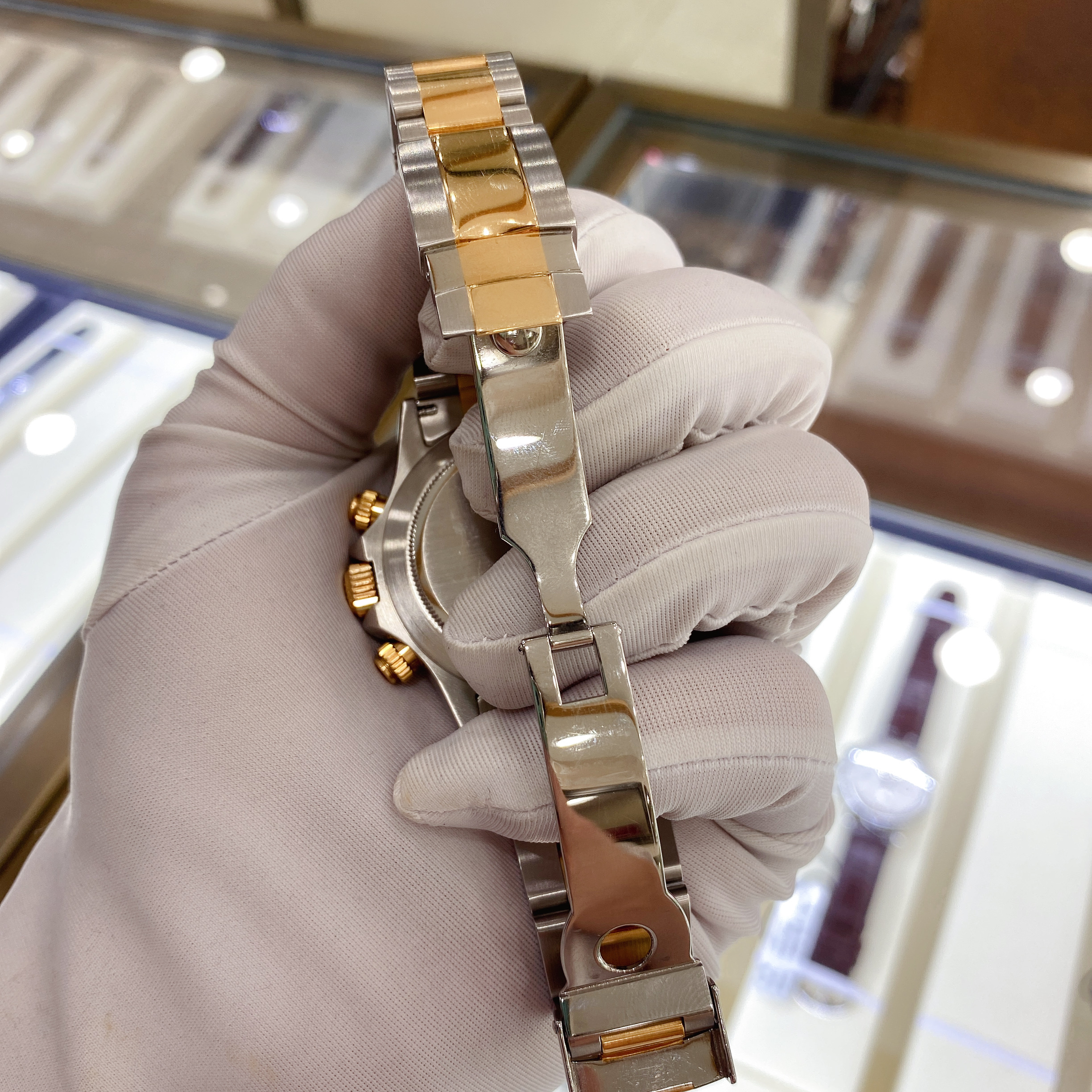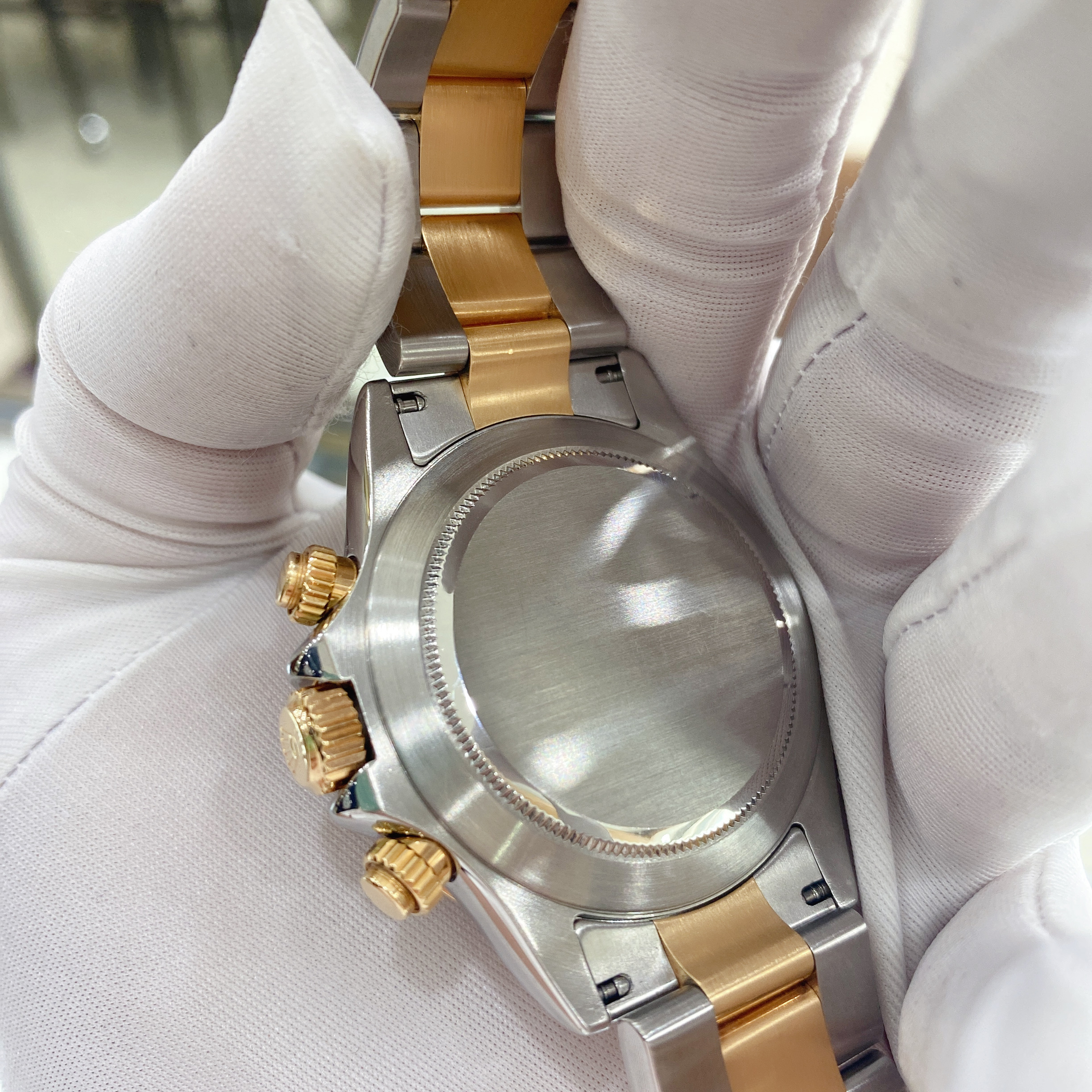 劳力士宇宙计型迪通拿116523,18K黄金/精钢材质,40mm表径,刻度镶钻,计时功能,D字头,自动机械,专柜售价167000 二手单表