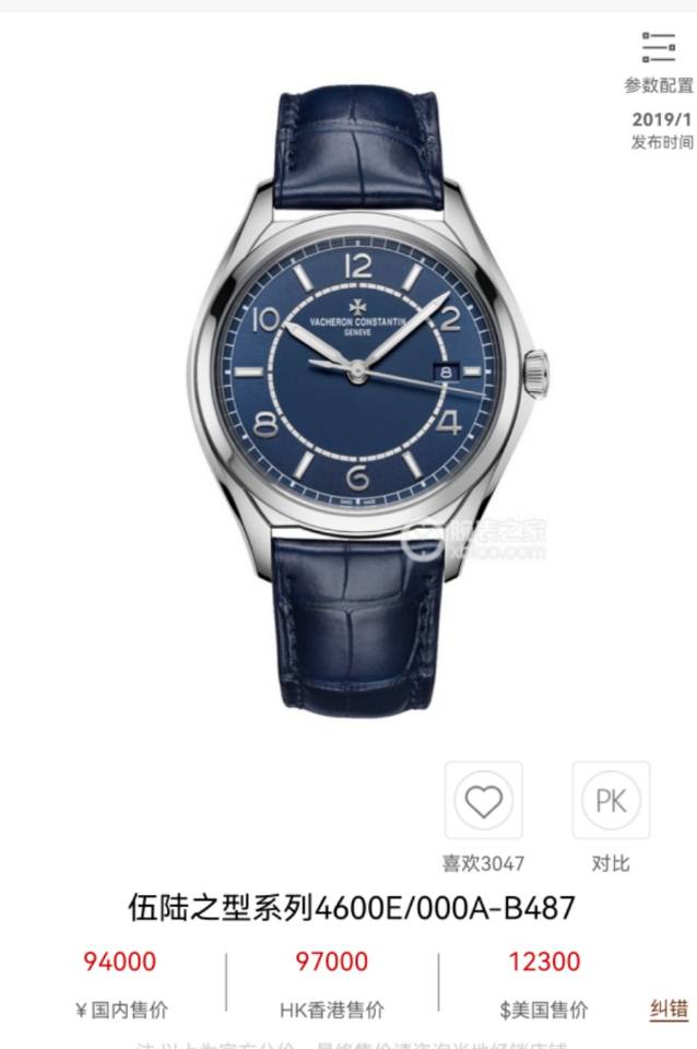 江诗丹顿 伍陆之型系列4600E/000A-B487自动机械男士腕表,最新款最美蓝盘,日期显示,表径40毫米,透底,金陀,21年8月全套有购买票据,公价94000元