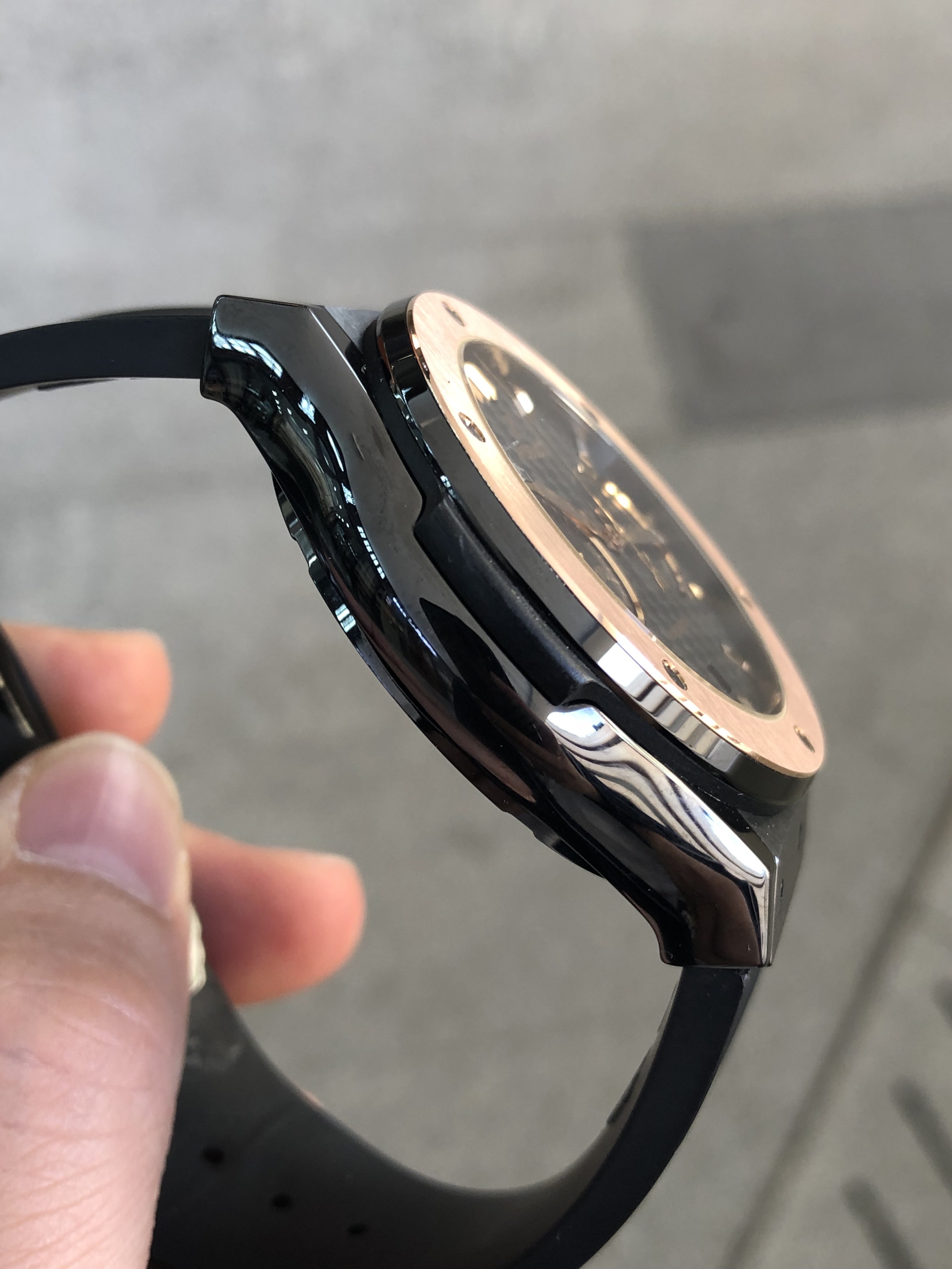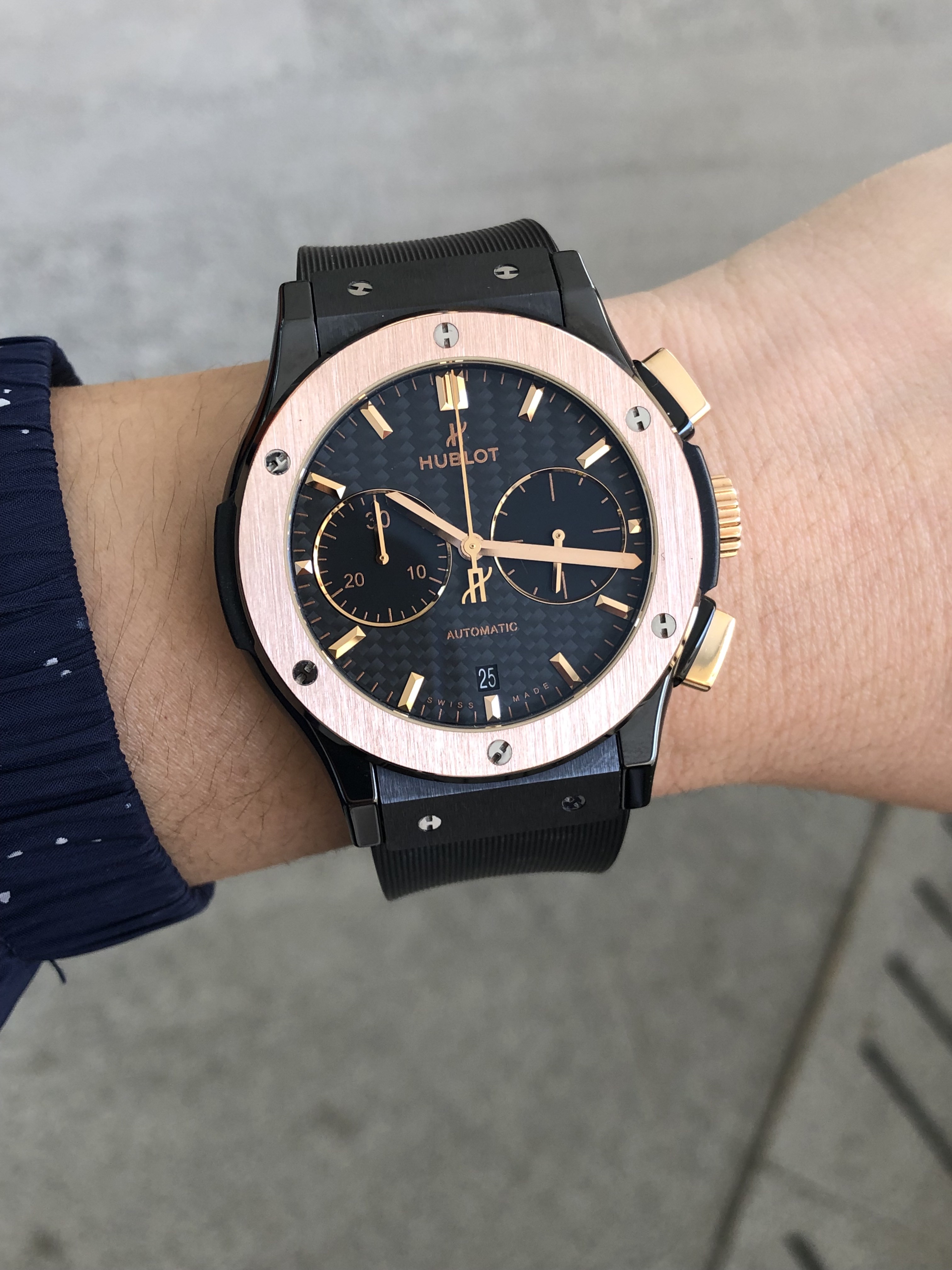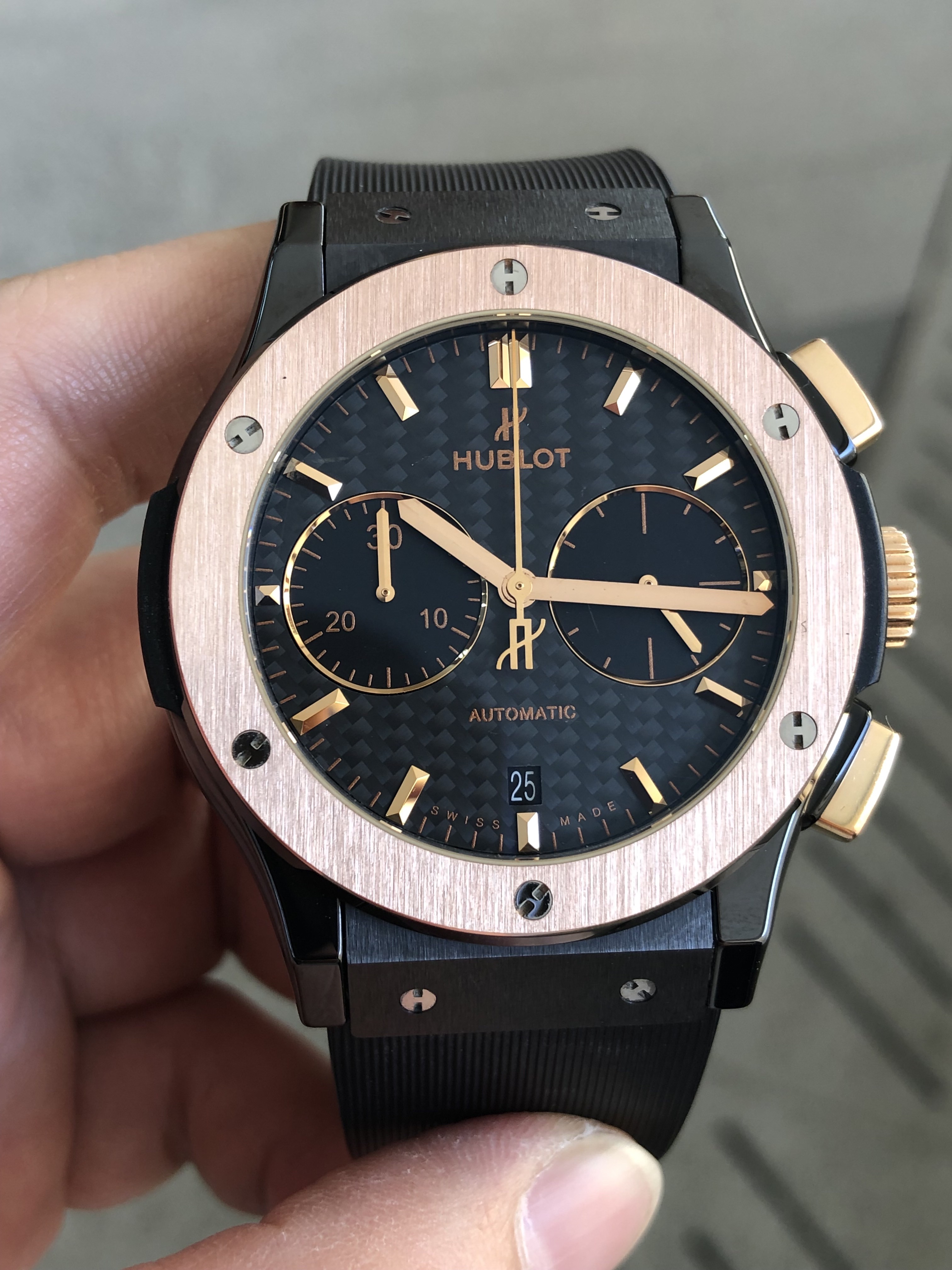 型号:521.CO.1781.RX自动机械男表,45mm表径,极品单表,表壳黑陶瓷材质,玫瑰金外圈及计时按钮、把头,碳纤维盘面,金质刻度、指针,计时功能,日期显示,专柜售价109000,现货好价