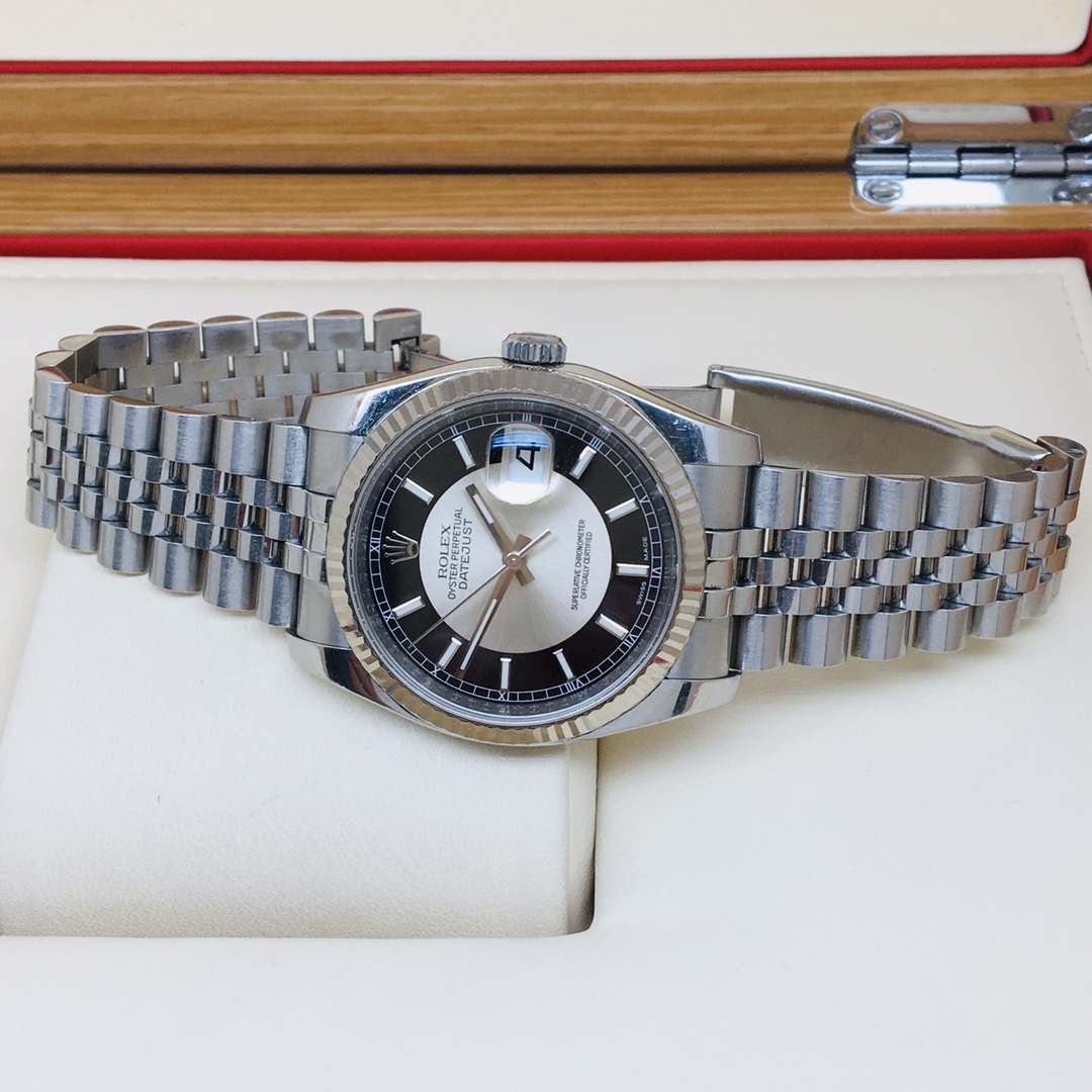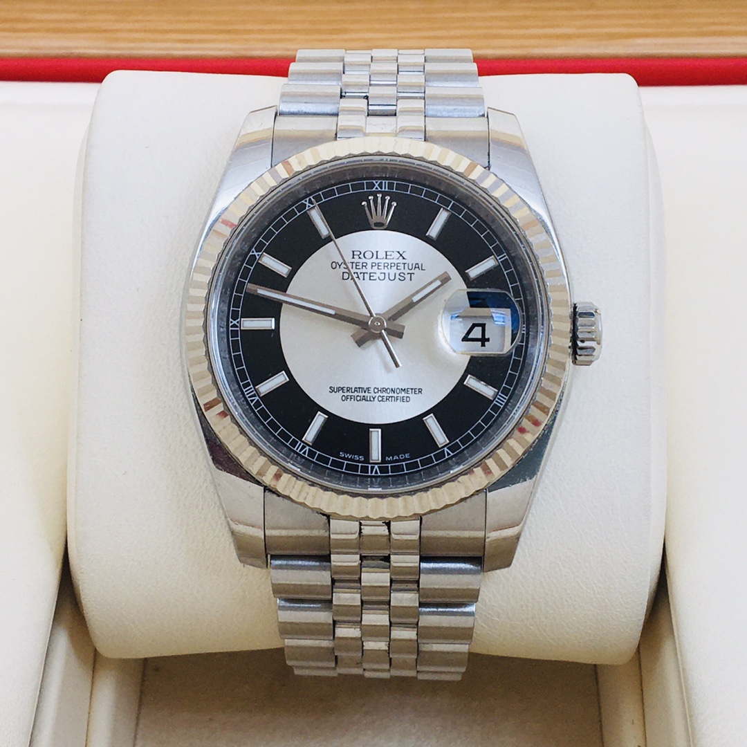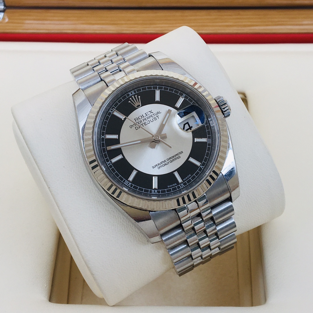 Rolex.劳力士.日志型116234 自动机械 男表 36盘表径 稀有黑白唱片盘 夜光刻度时标 红黑日历框显示 专柜售价64000¥