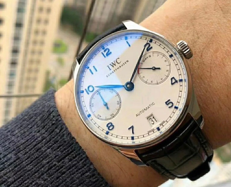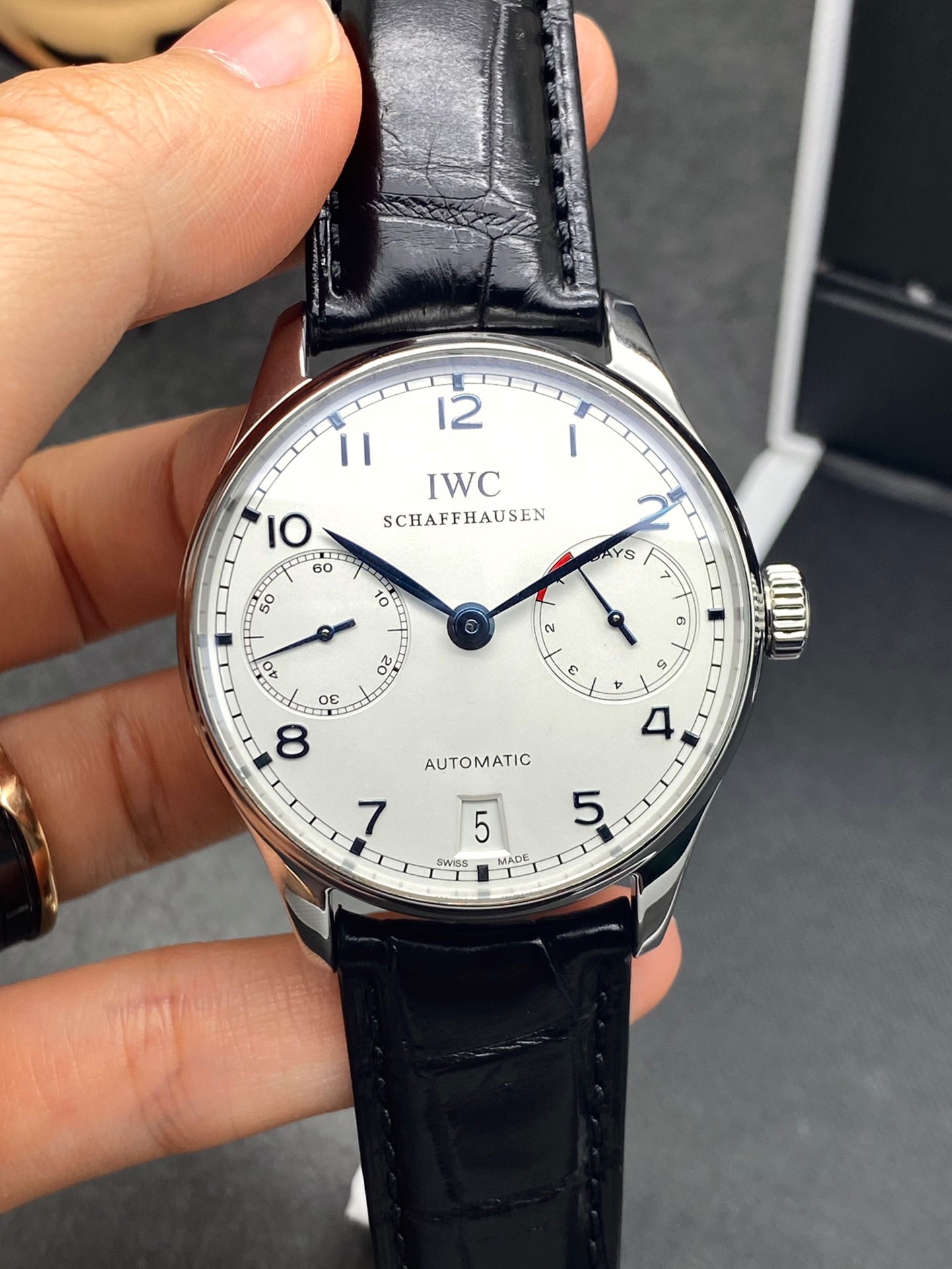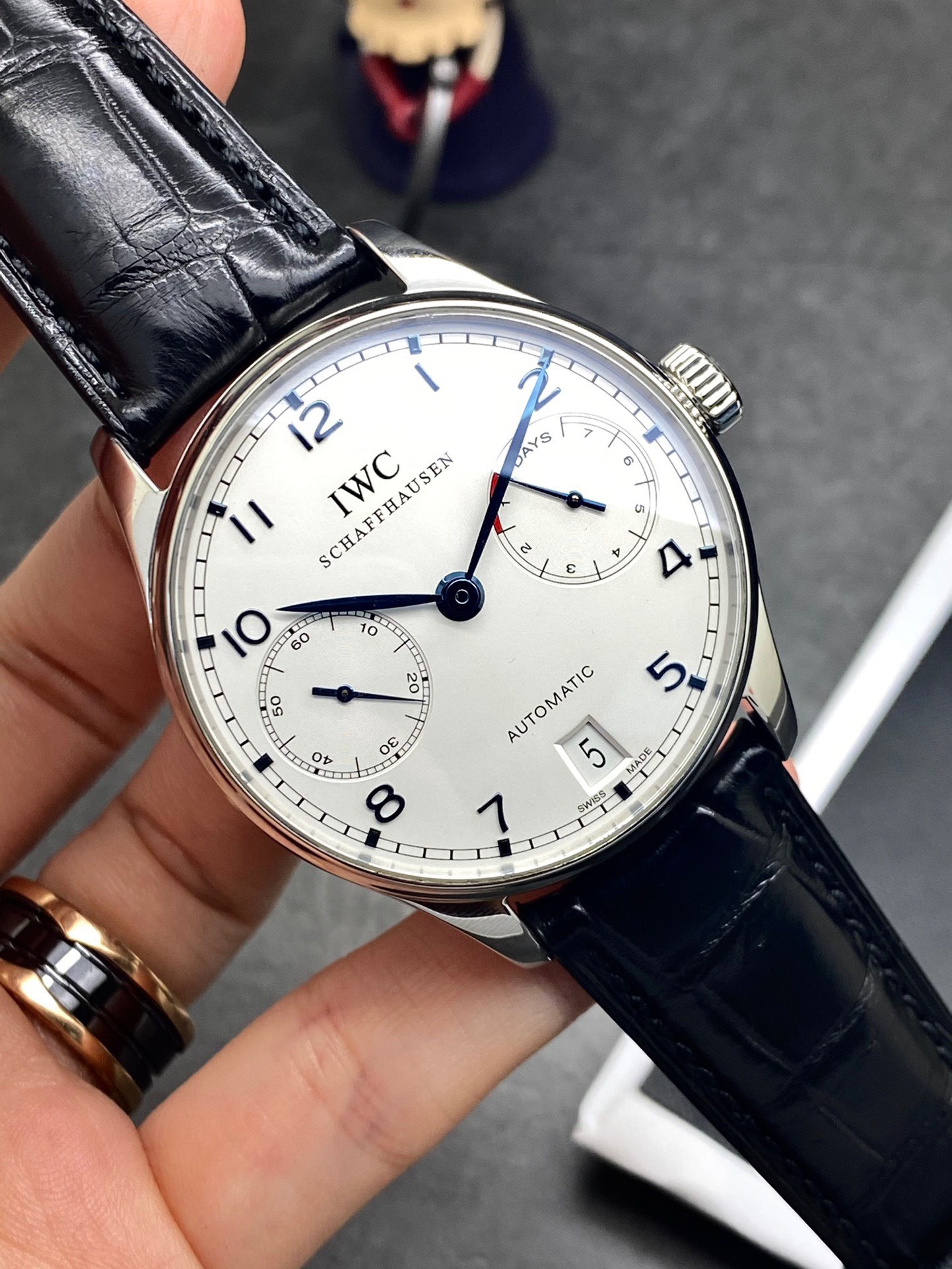 20年蓝针葡七万国葡萄牙7日链葡七IW500107蓝针男士腕表,表经42毫米,白盘蓝针