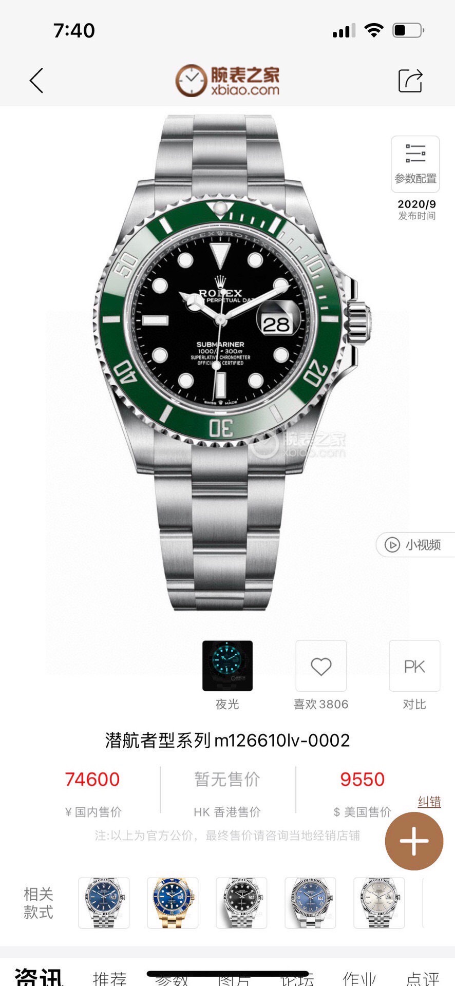 劳力士潜航者系列 型号:m126610lv-0002