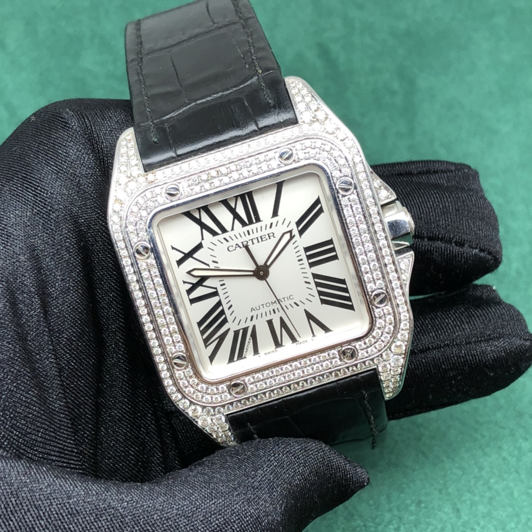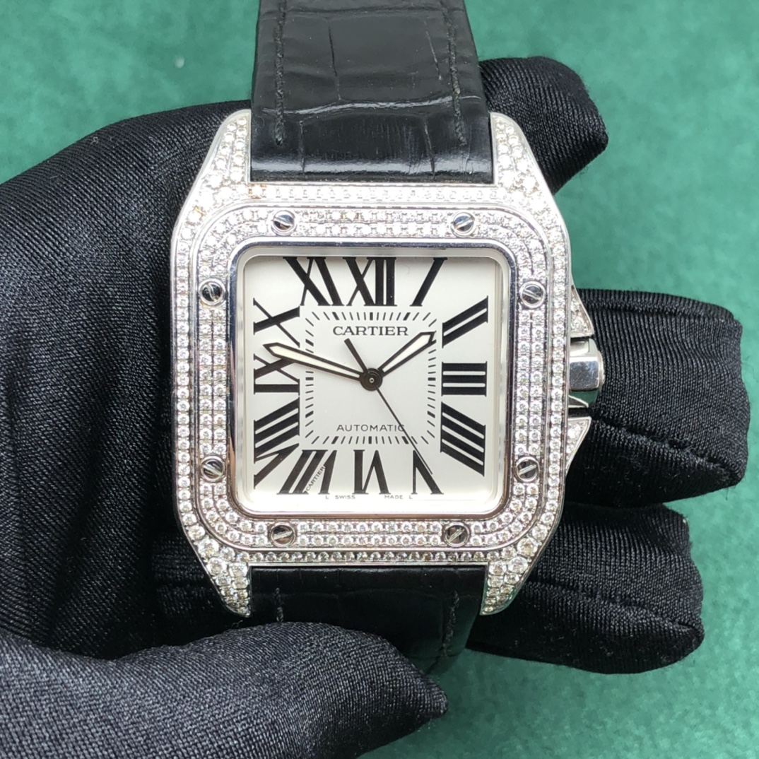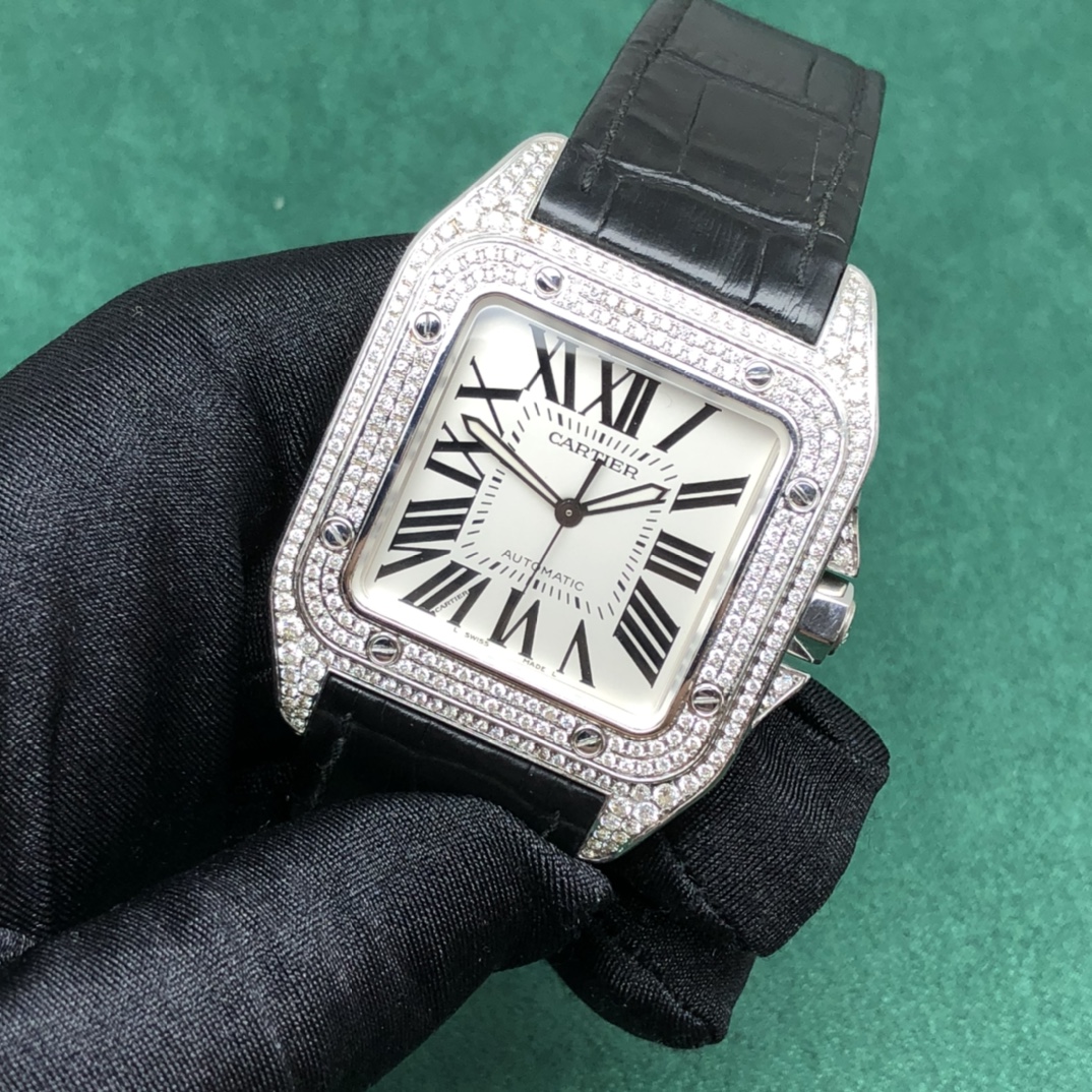 卡地亚山度士系列自动机械男士手表51.1*41.3mm表径W20073X8精钢后镶钻
