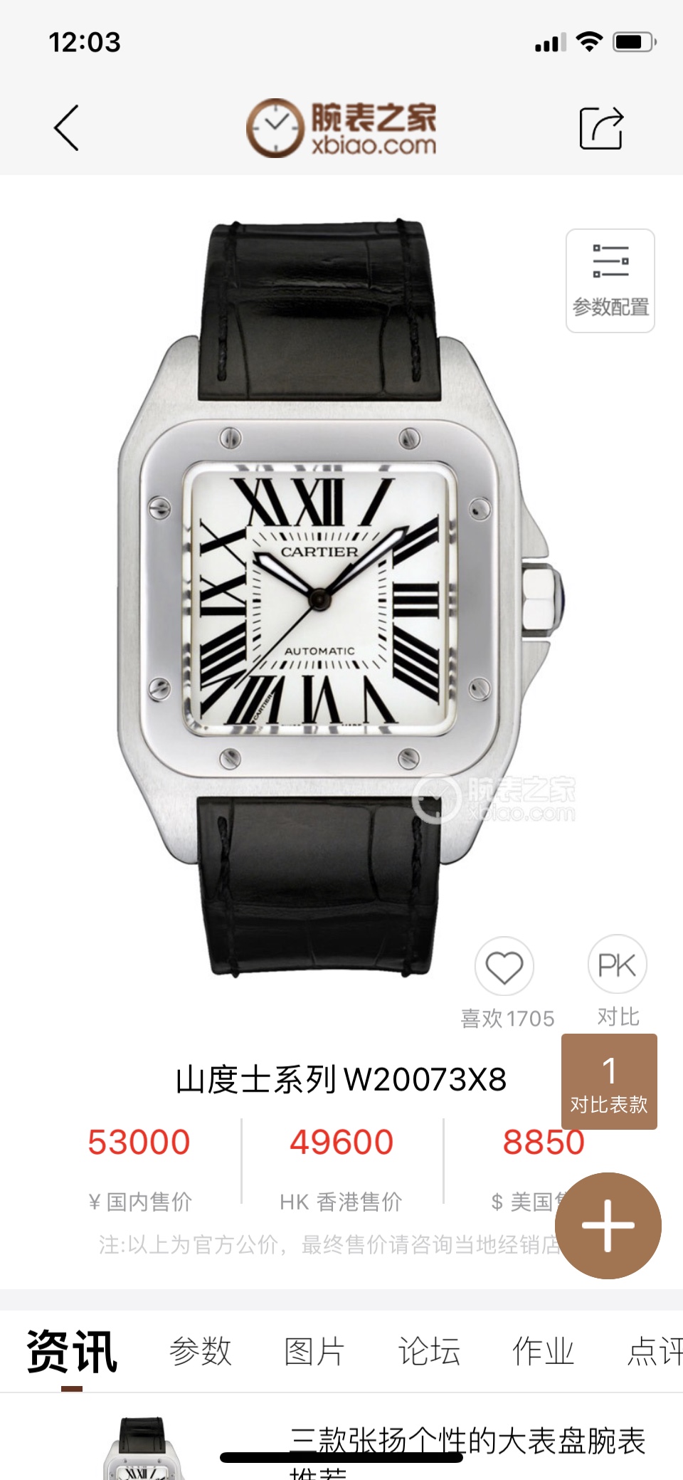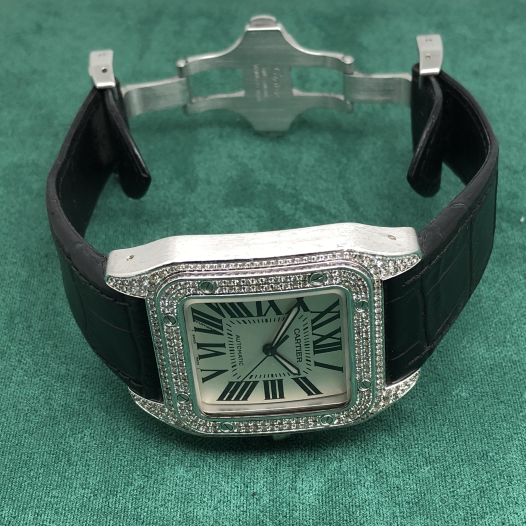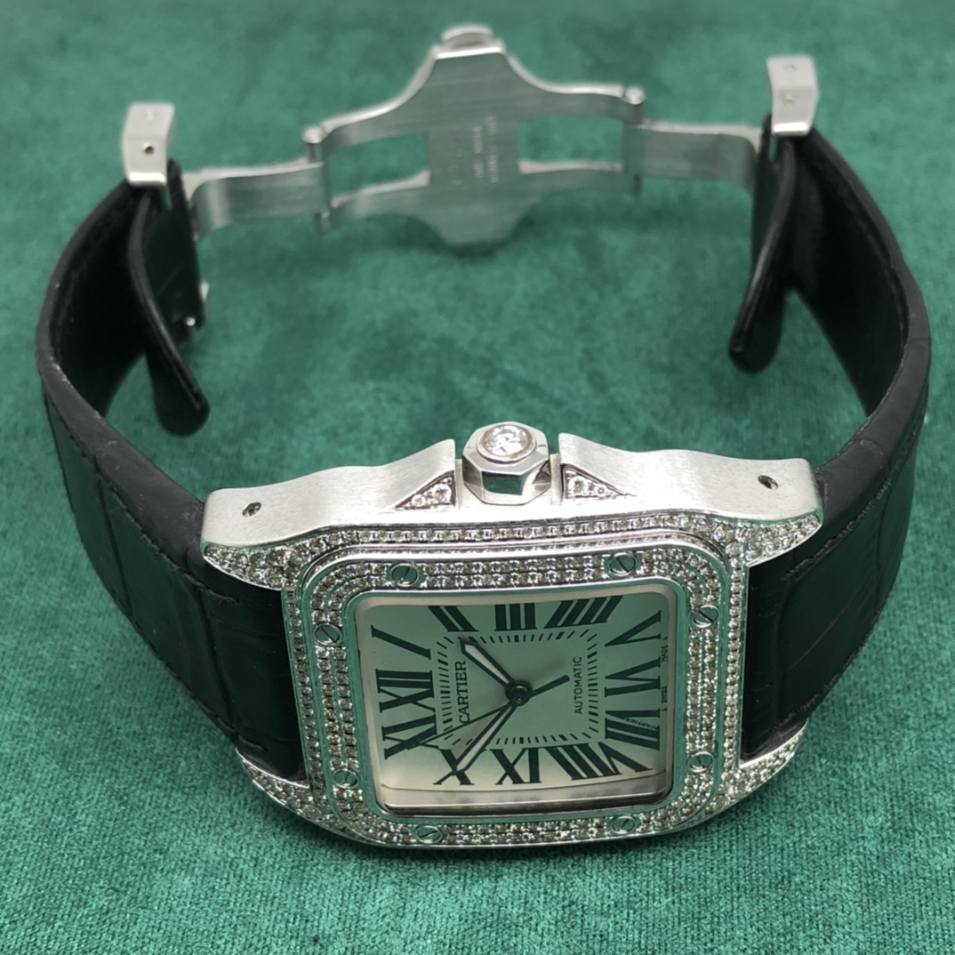 卡地亚山度士系列自动机械男士手表51.1*41.3mm表径W20073X8精钢后镶钻
