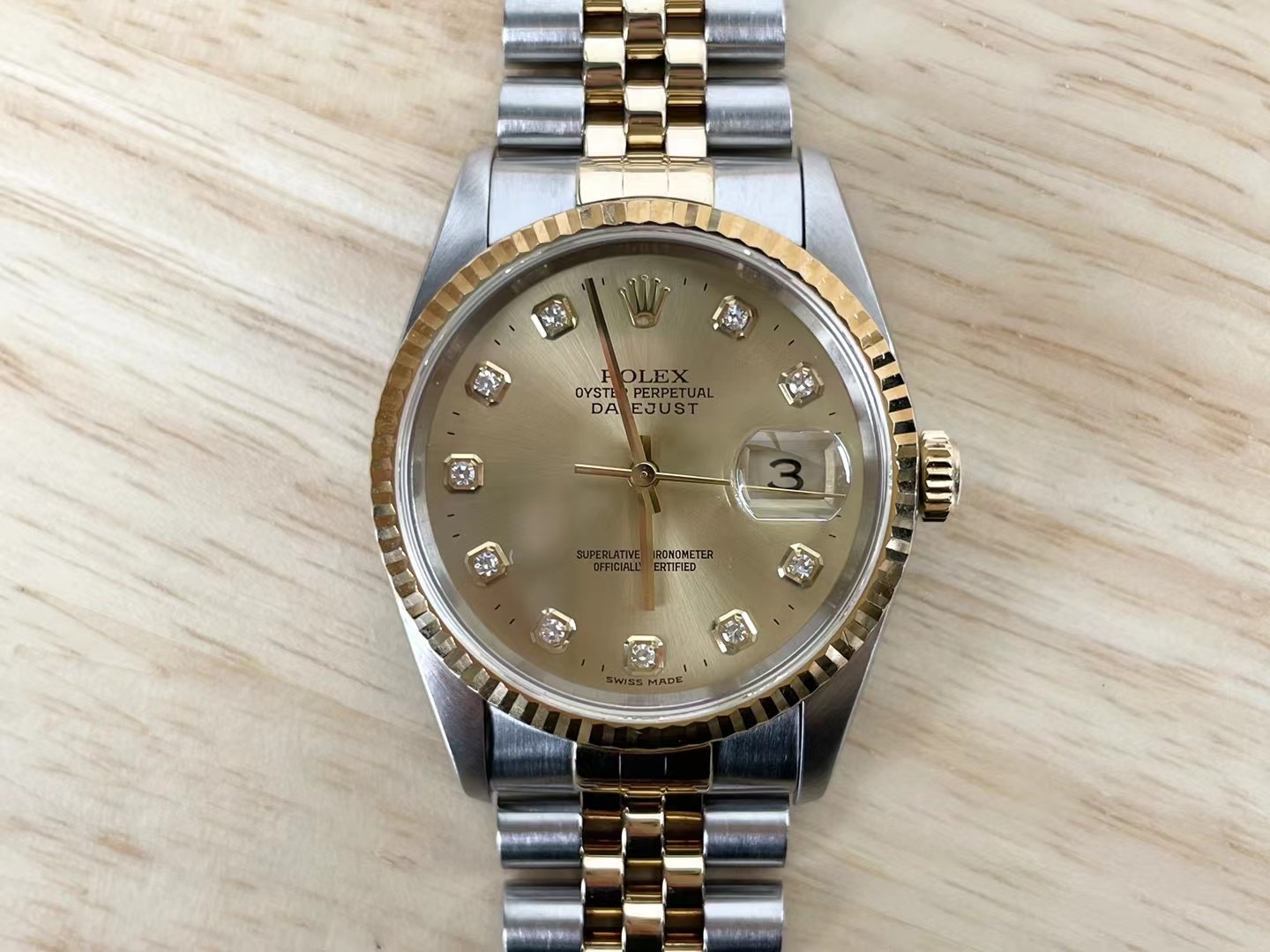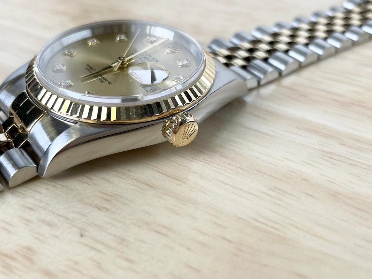 劳力士日志型,16233,表径36mm,香槟盘钻刻间金钢带单表,超热门,高性价比。 参考价10xxxx 现好价