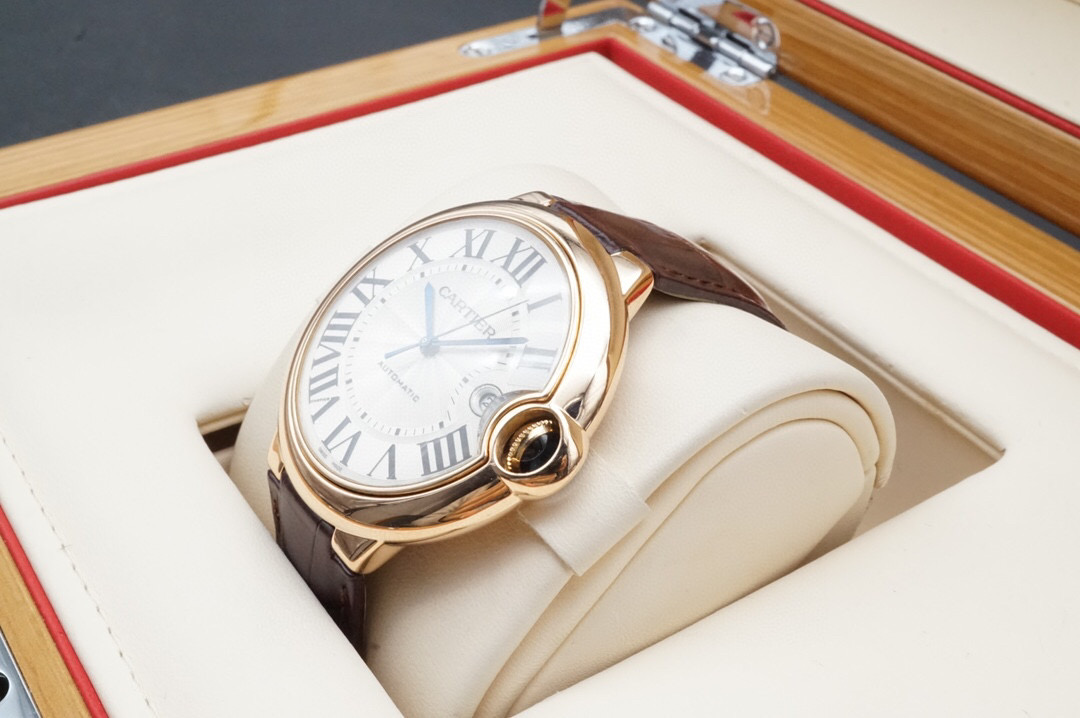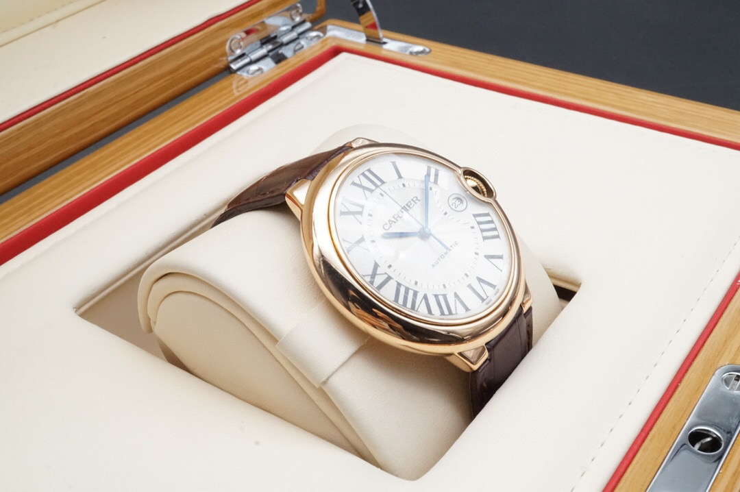 卡地亚蓝气球系列W6900651男士机械腕表,全套附件21年已延保8年,表径42 整表18K玫瑰金材质上手精致高档,原价144000