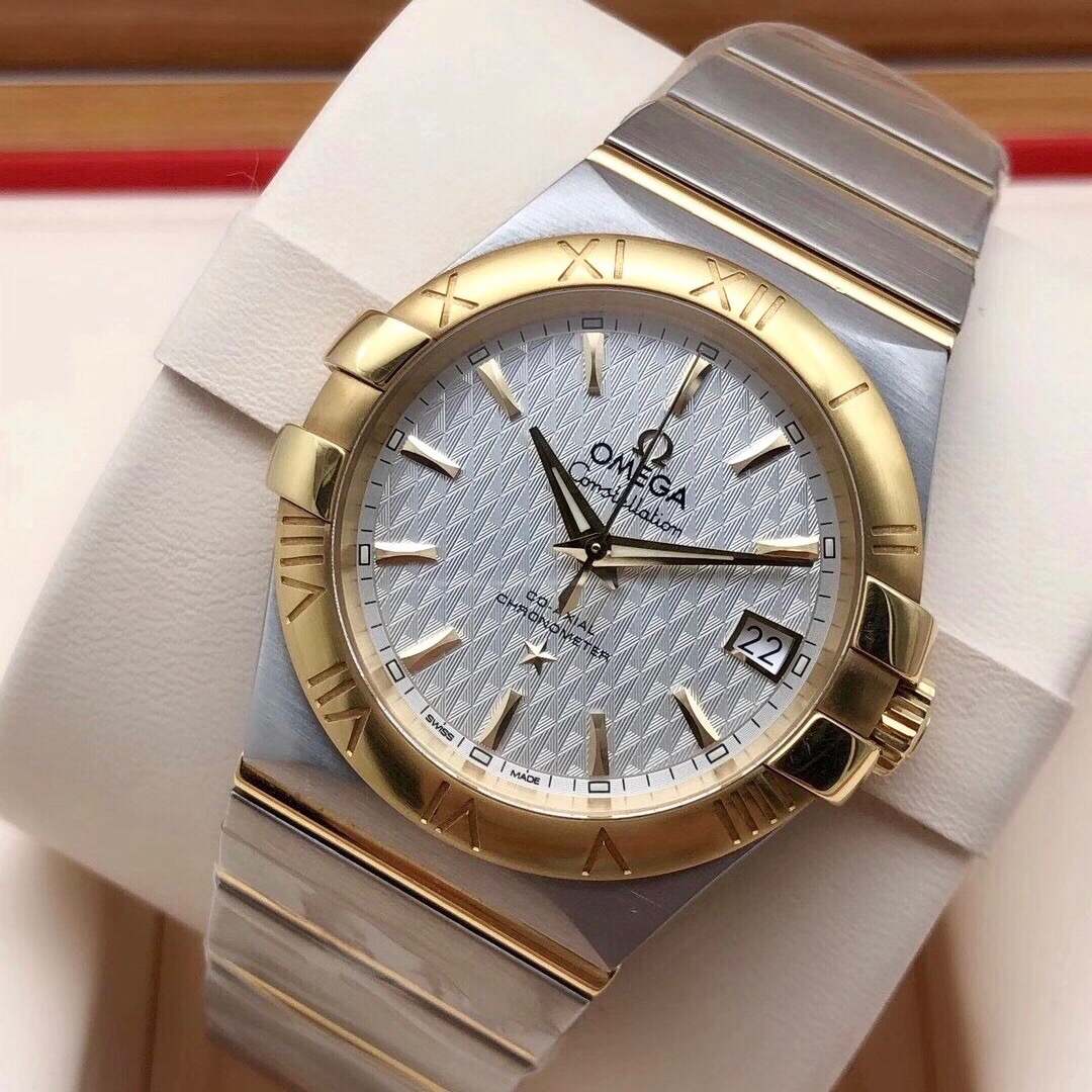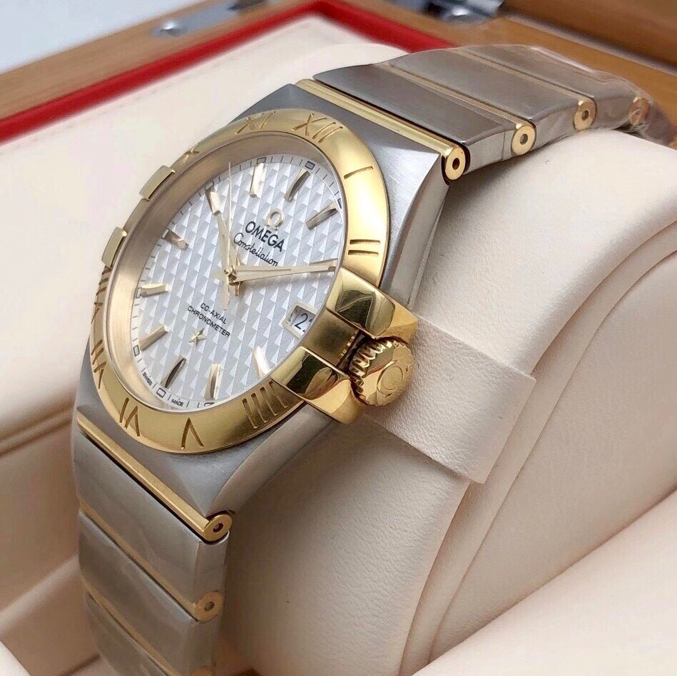 自动机械 35mm 18K黄金/精钢 浮雕菱形图案面盘 日期显示 未使用全套 公价51000~