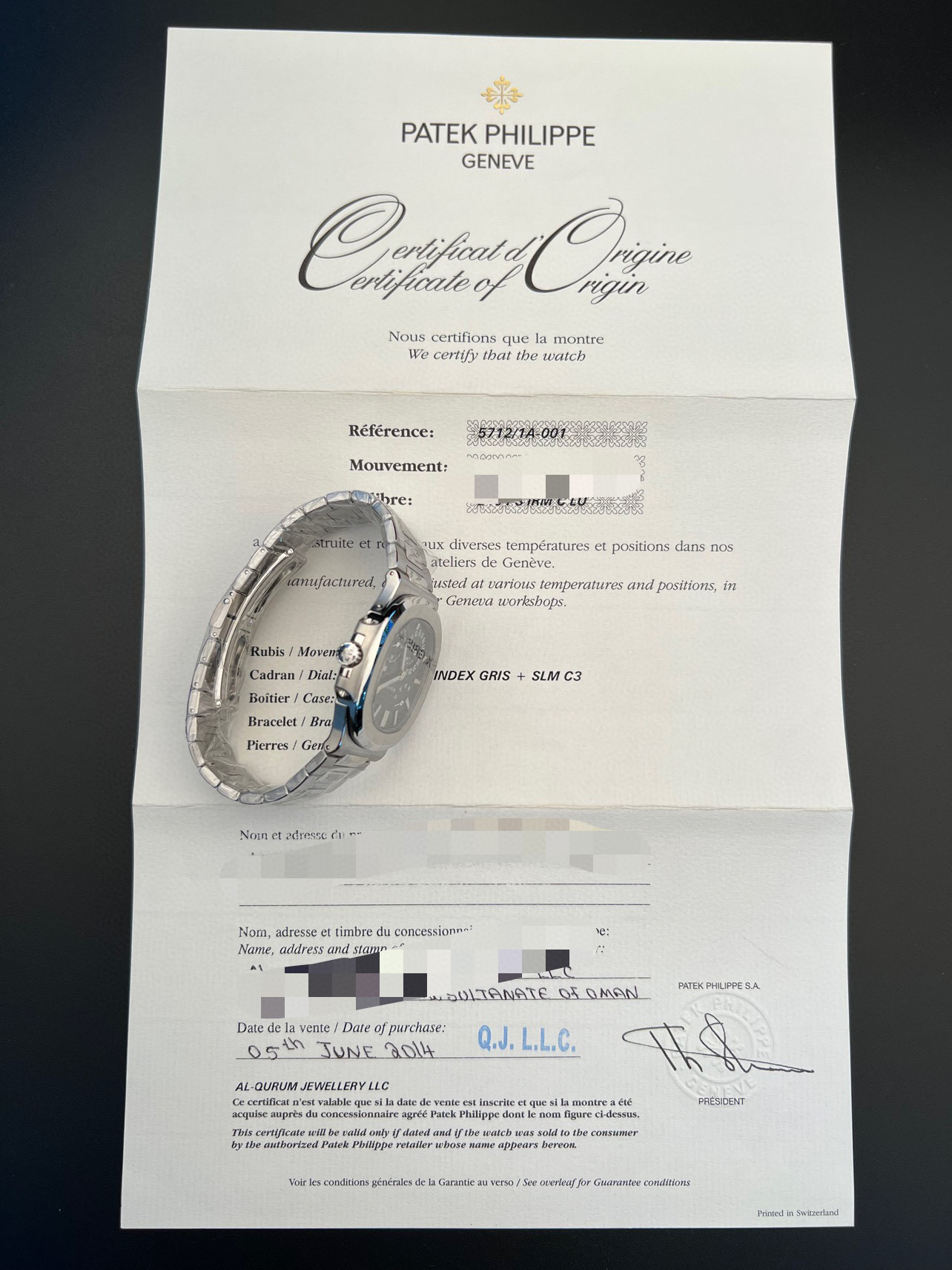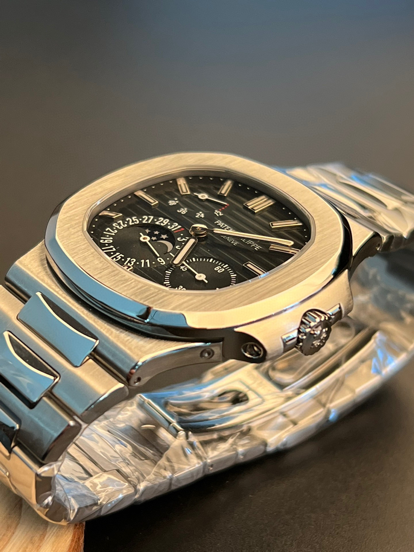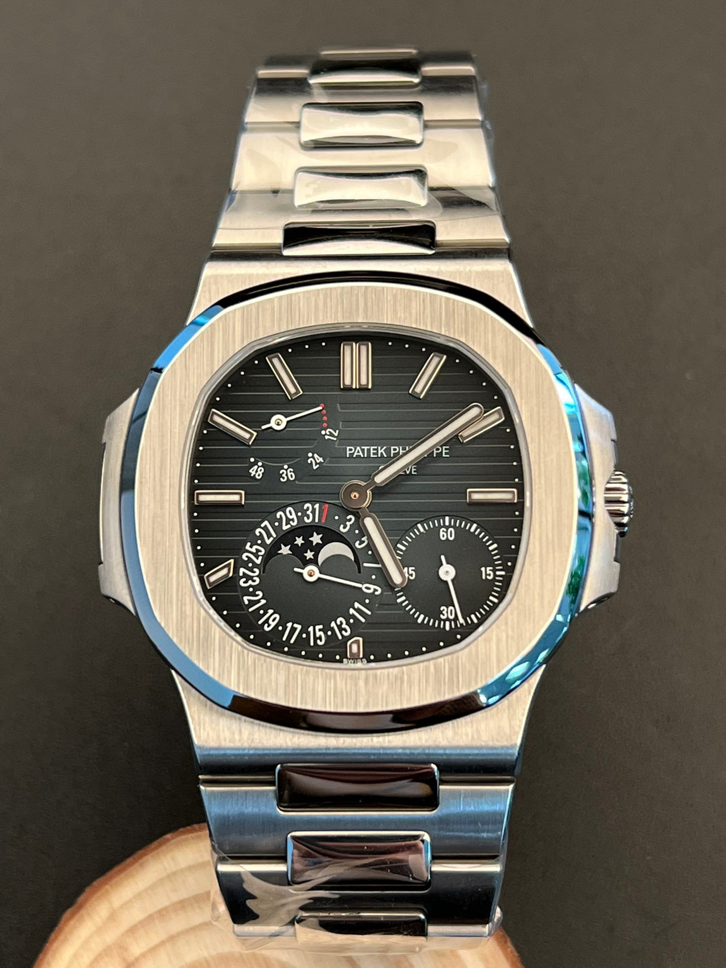 理财产品/百达翡丽鹦鹉螺系列男士腕表型号:5712/1A-001、精钢材质 自动机芯 40mm表径 功能 : 日期显示、动力储存显示、附件:盒子、说明书、、2017卡