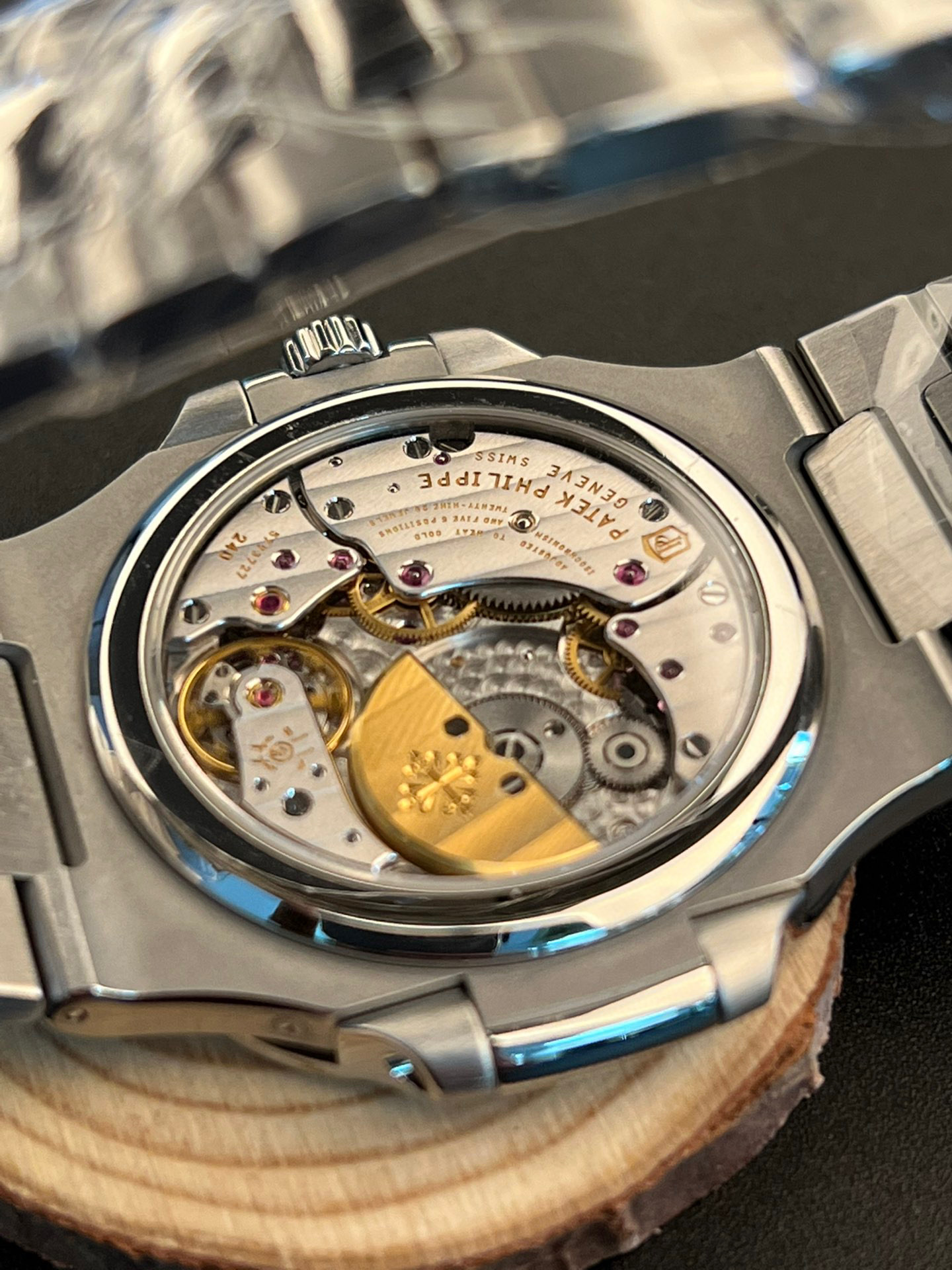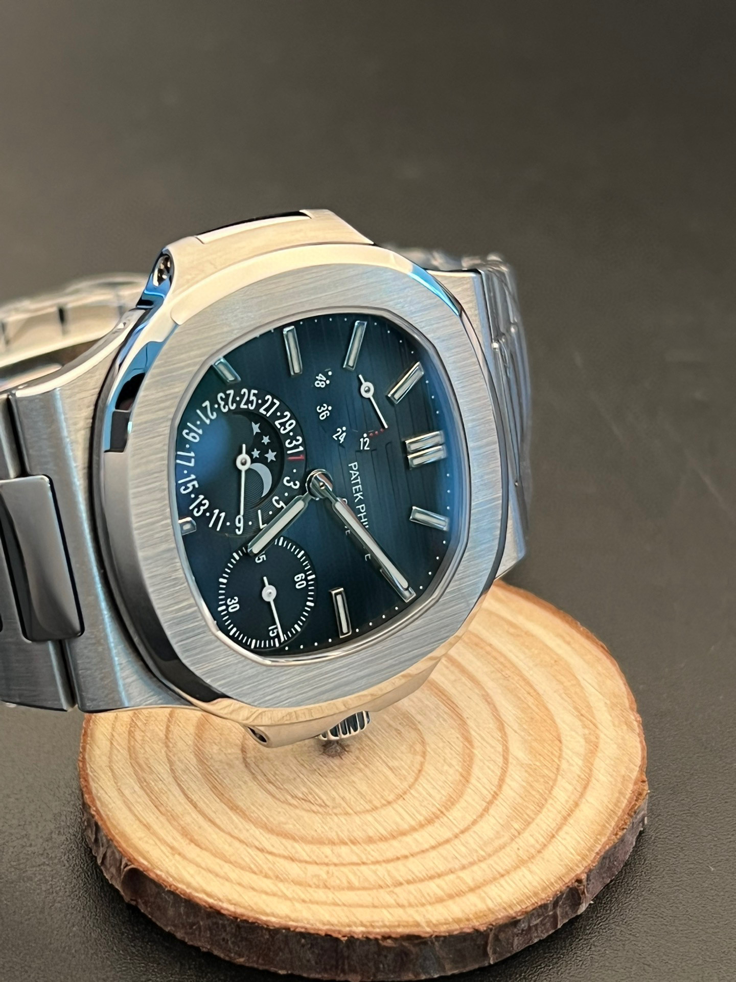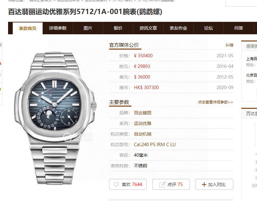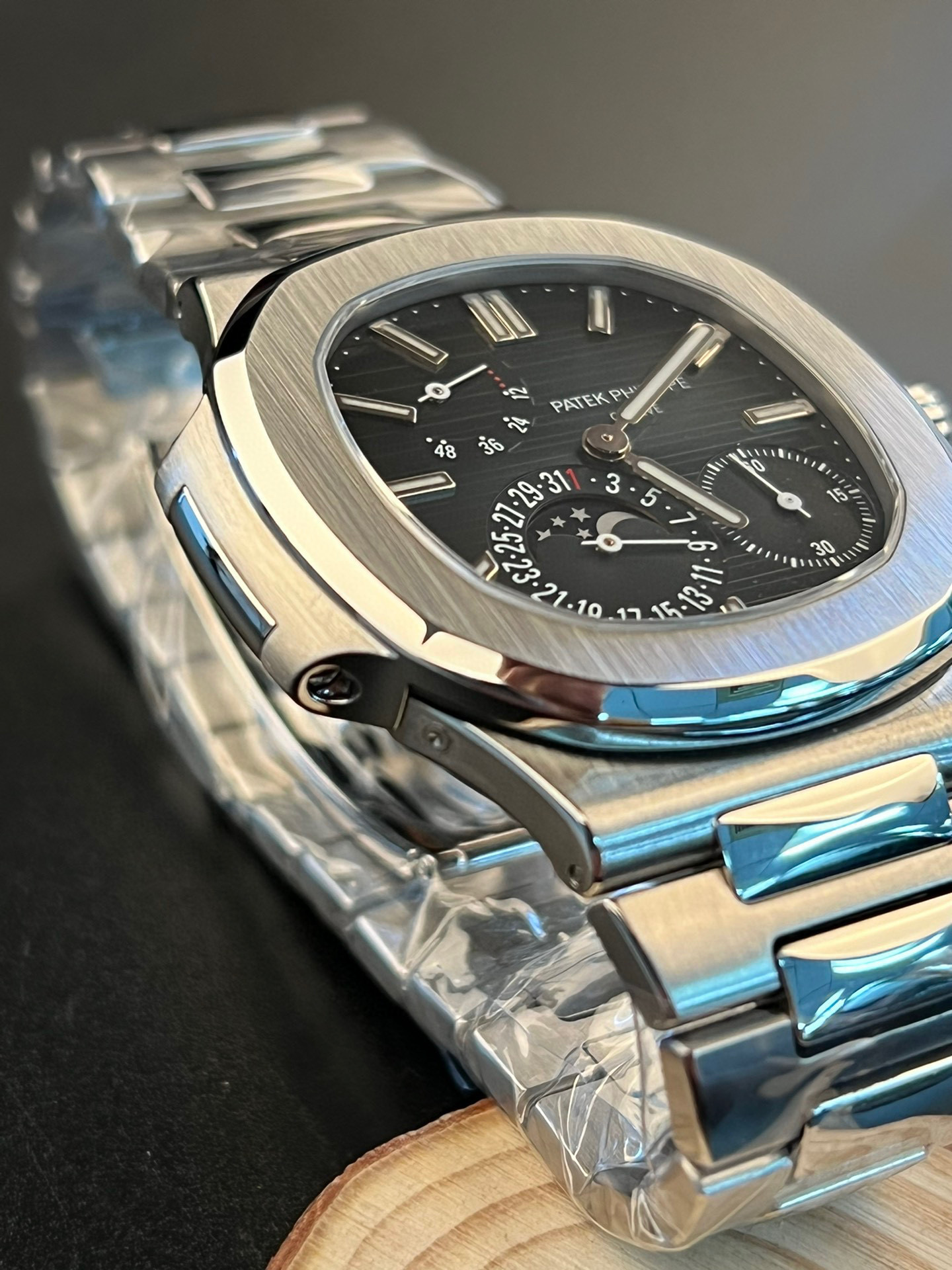 理财产品/百达翡丽鹦鹉螺系列男士腕表型号:5712/1A-001、精钢材质 自动机芯 40mm表径 功能 : 日期显示、动力储存显示、附件:盒子、说明书、、2017卡