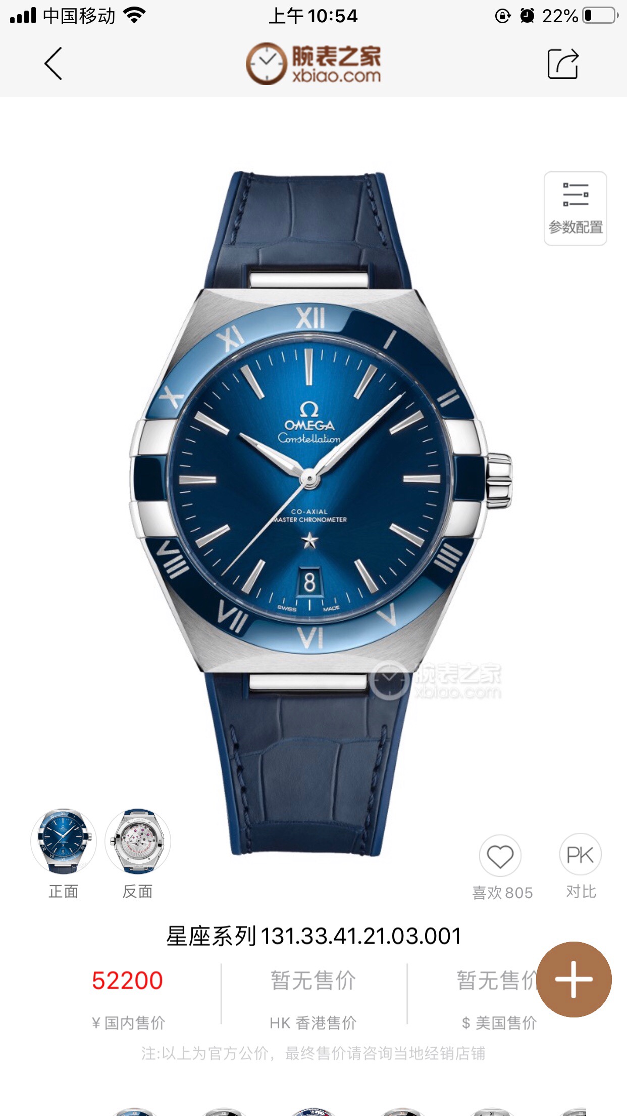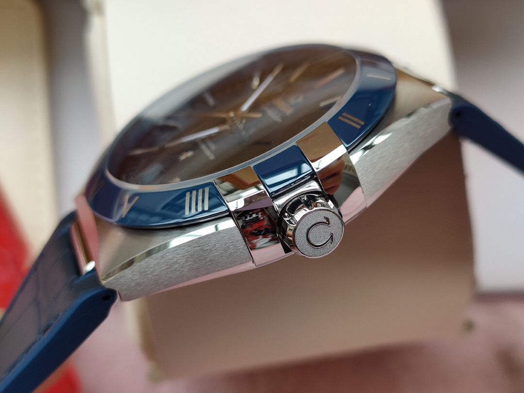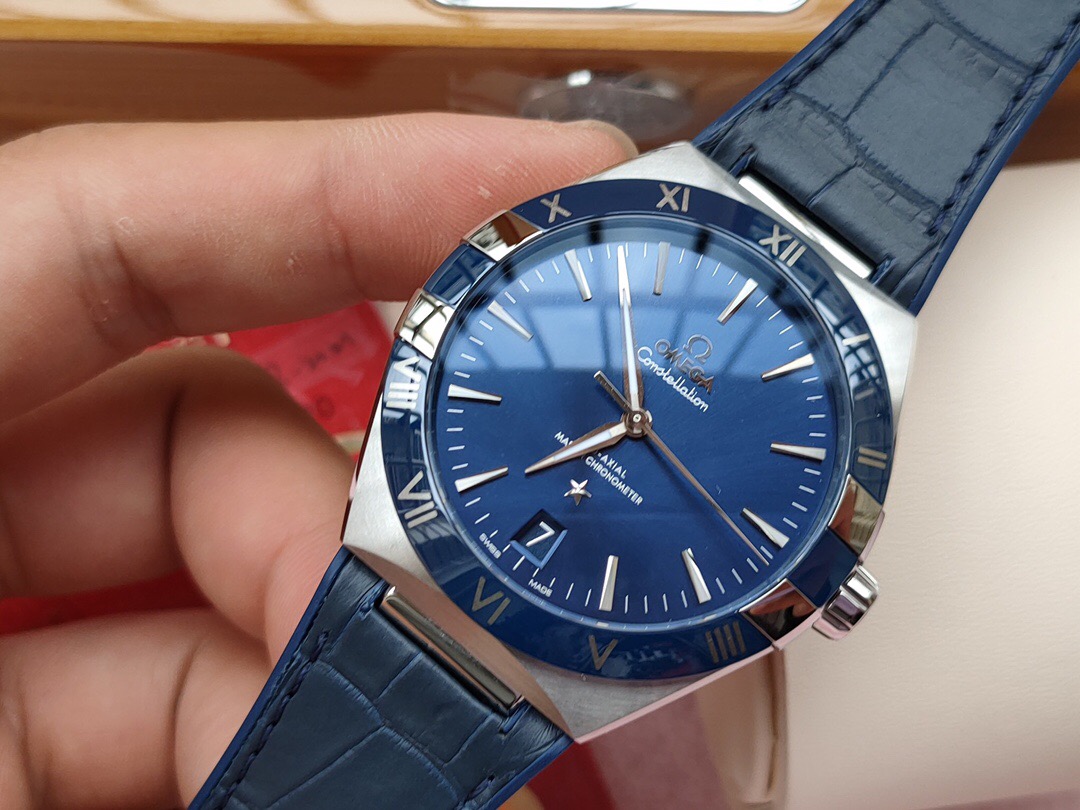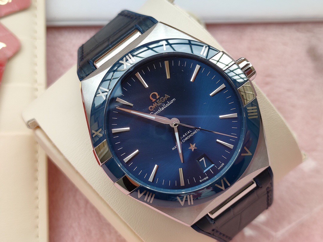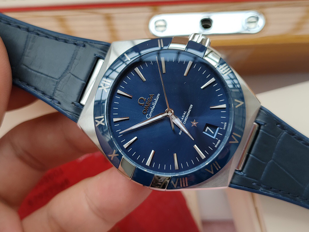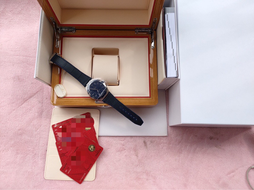 腕表特征: 男士自动机械腕表 表径:41毫米 最新款 宝蓝色字面,蓝色陶瓷外圈 防水深度:50米生活防水 表壳精钢材质 功能:日期显示防磁 附件:21未使用全套