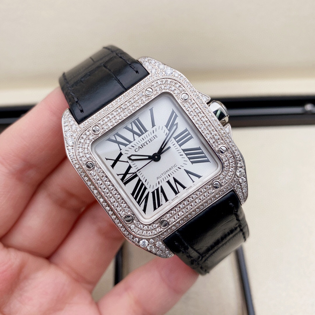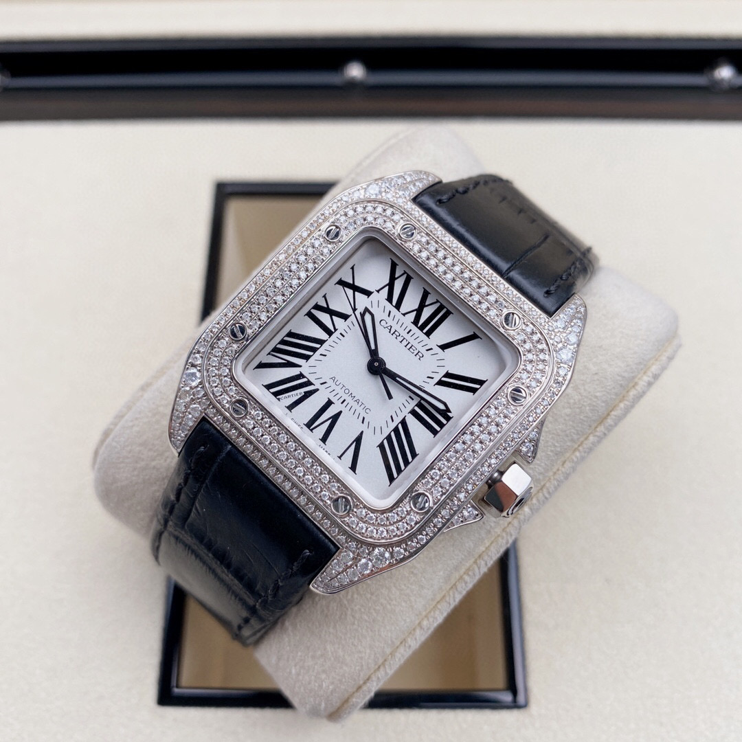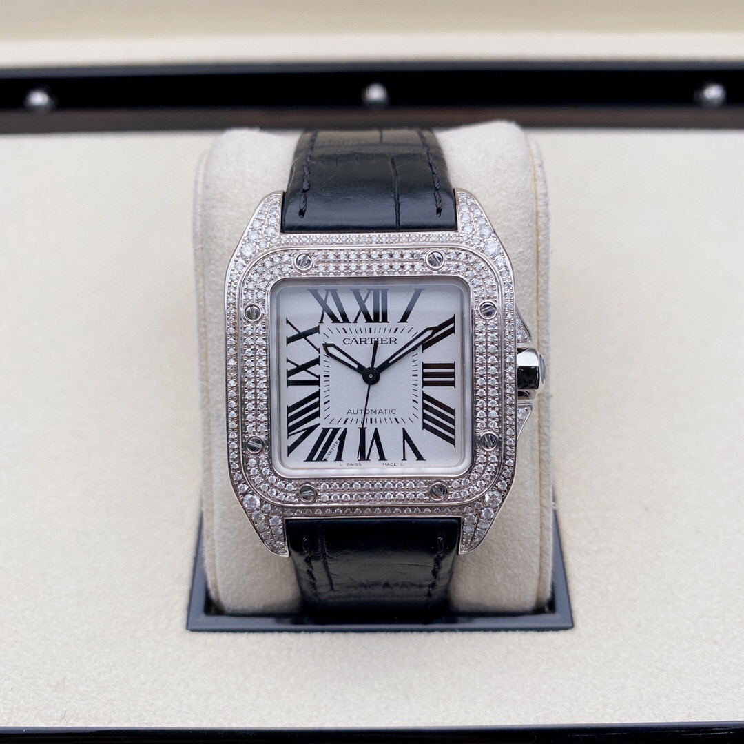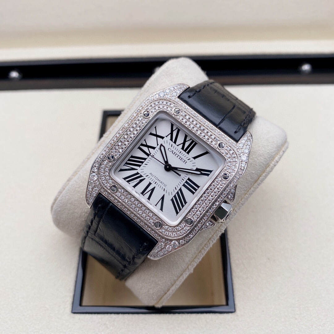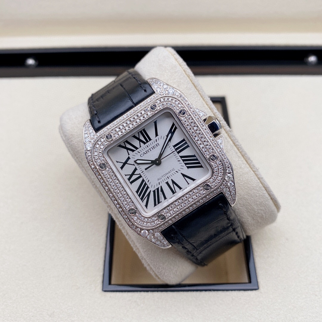卡地亚山度士系列W20106X8男士自动机芯腕表,中号山度士,表经44.2 x 35.6,后镶好品质钻石,单表无附件,表况良好,未镶钻公价47600