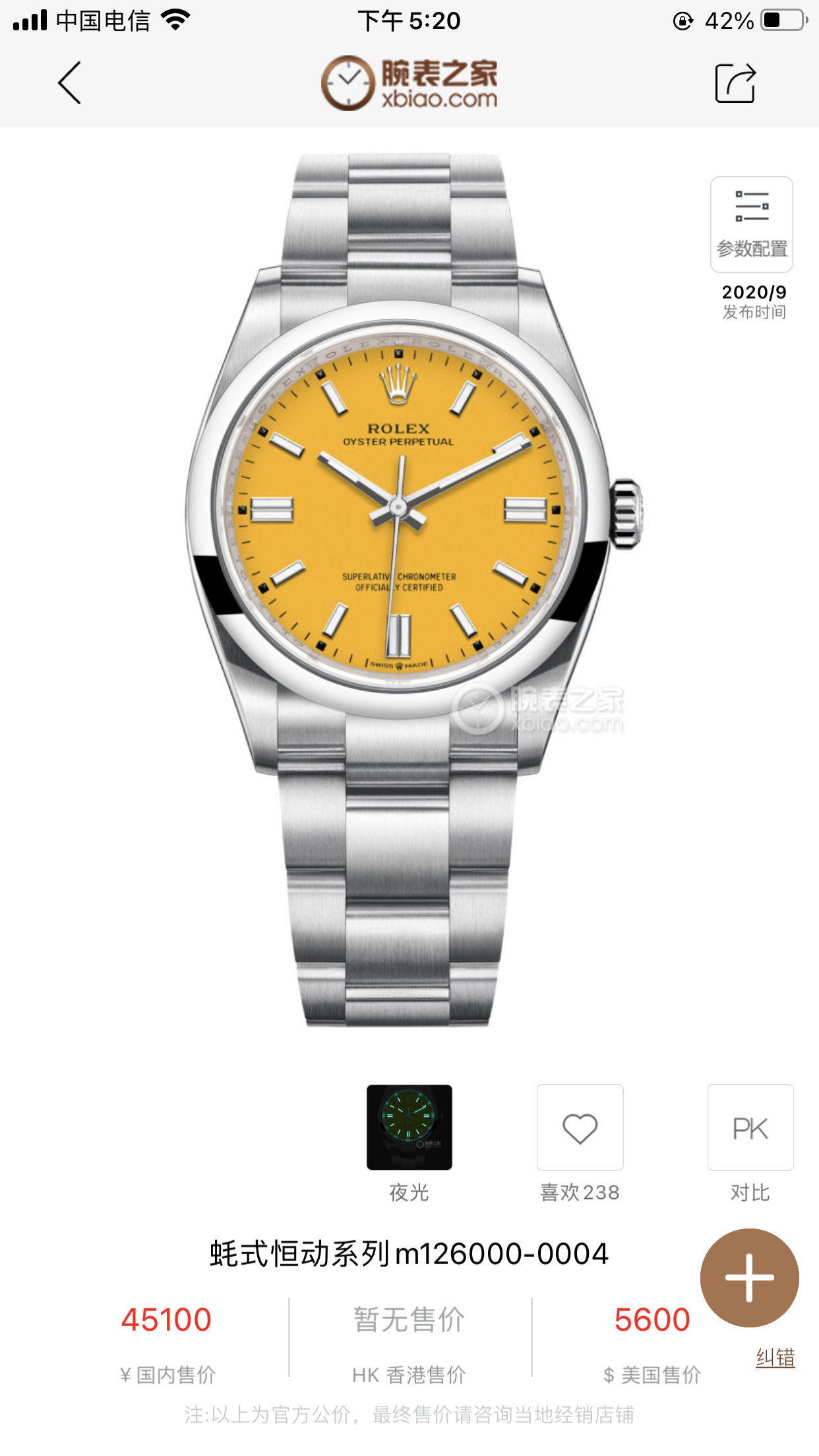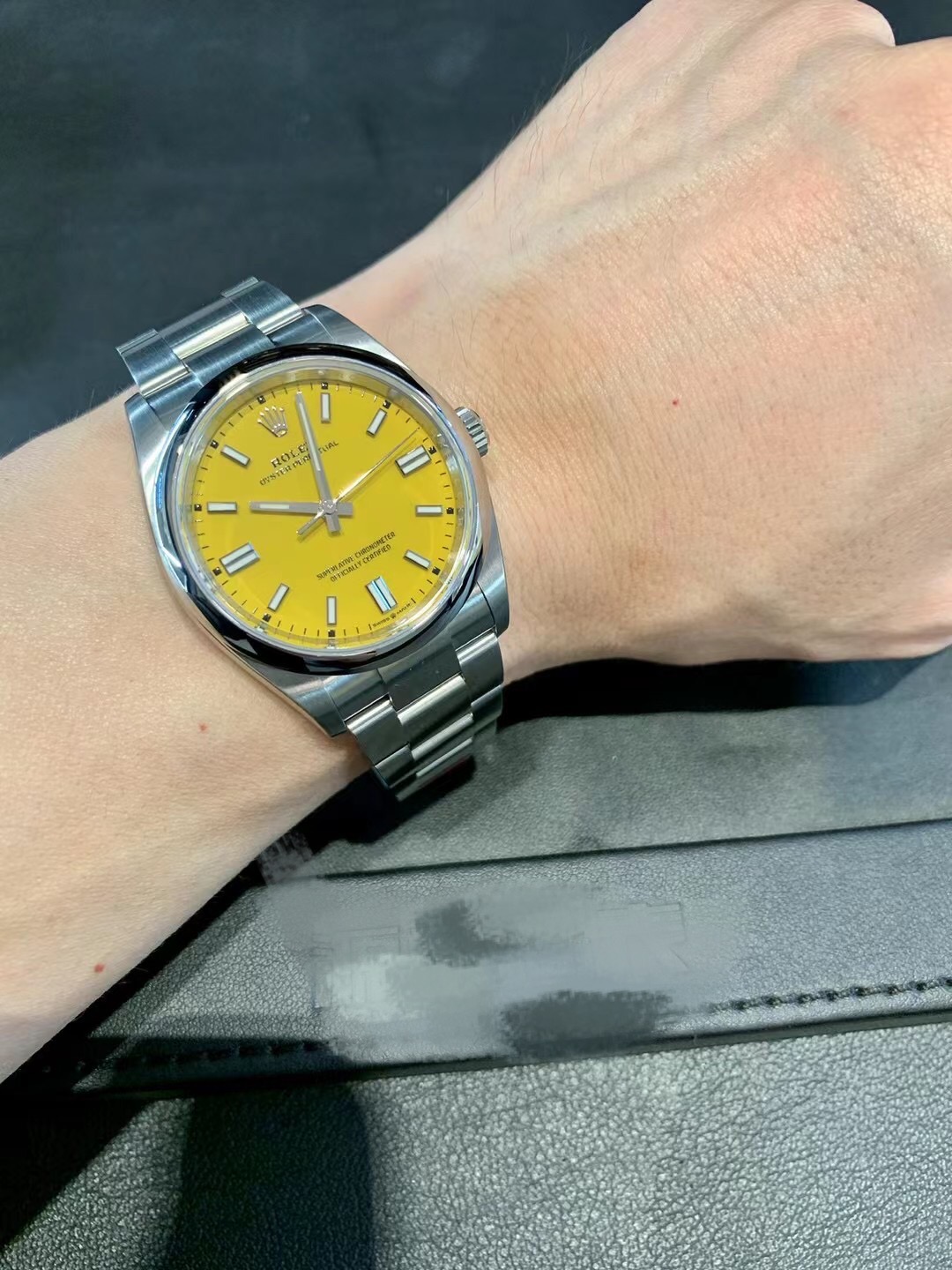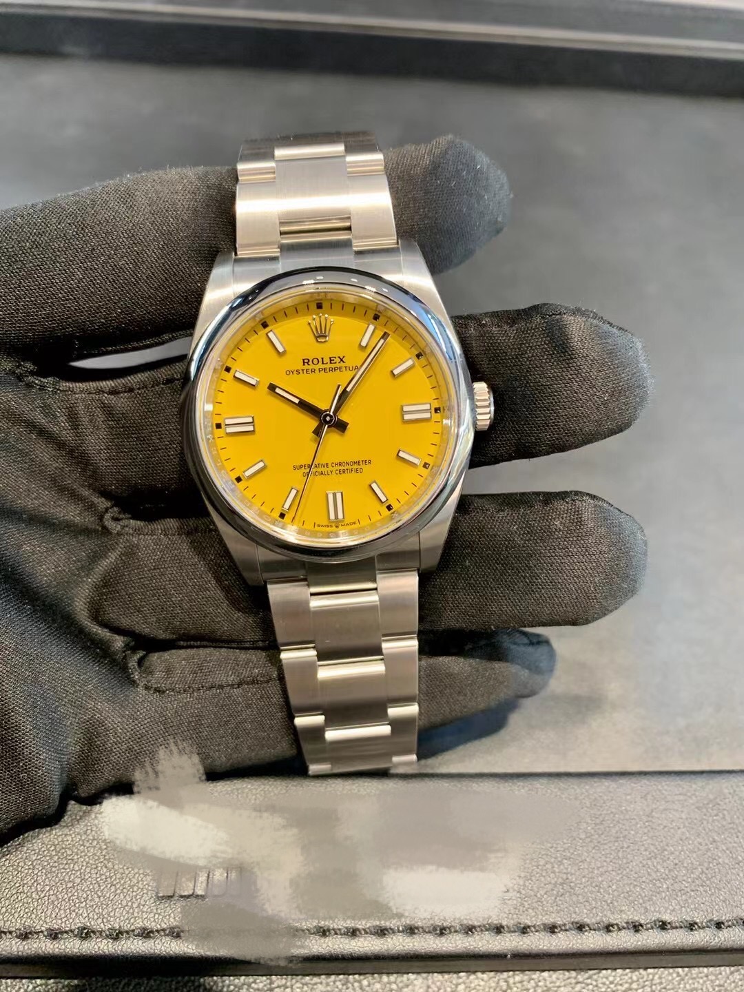 黄色盘面精钢蚝式表带 非常稀少款式。附件:未使用全套