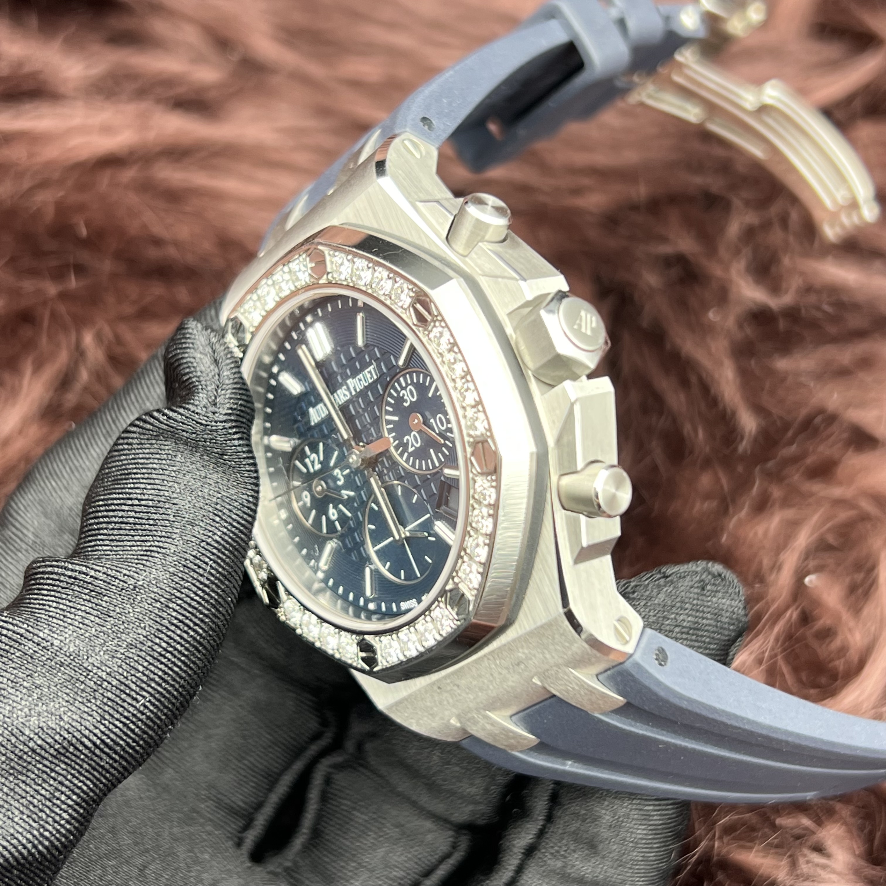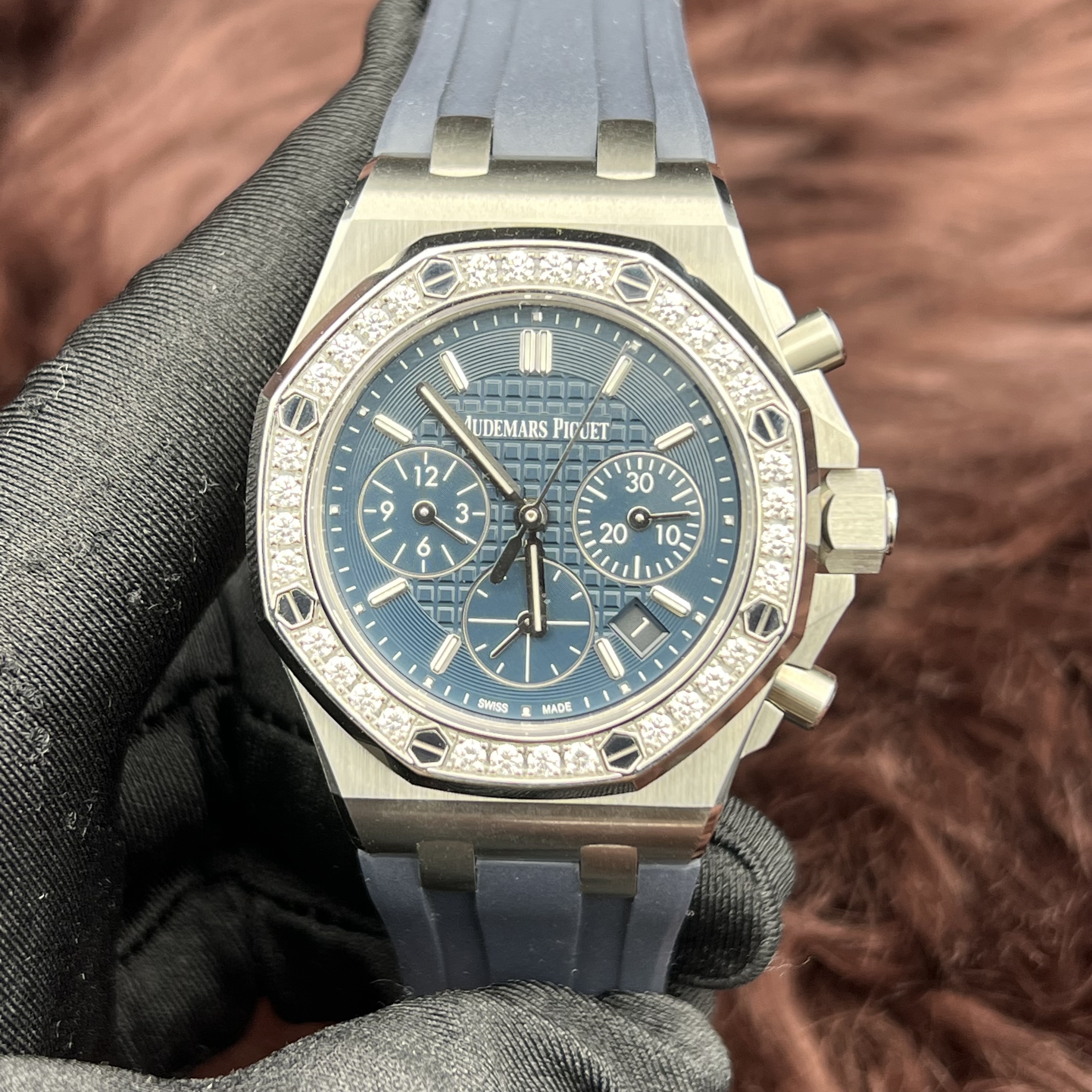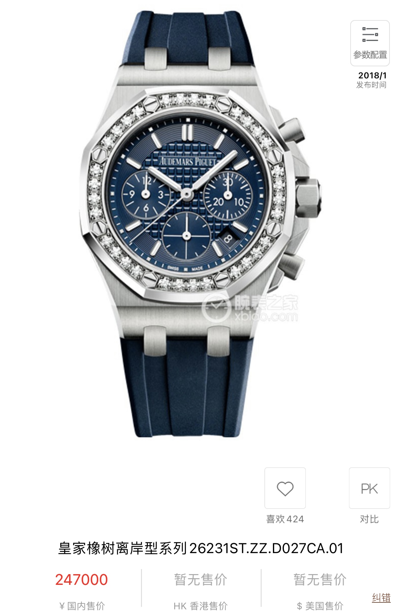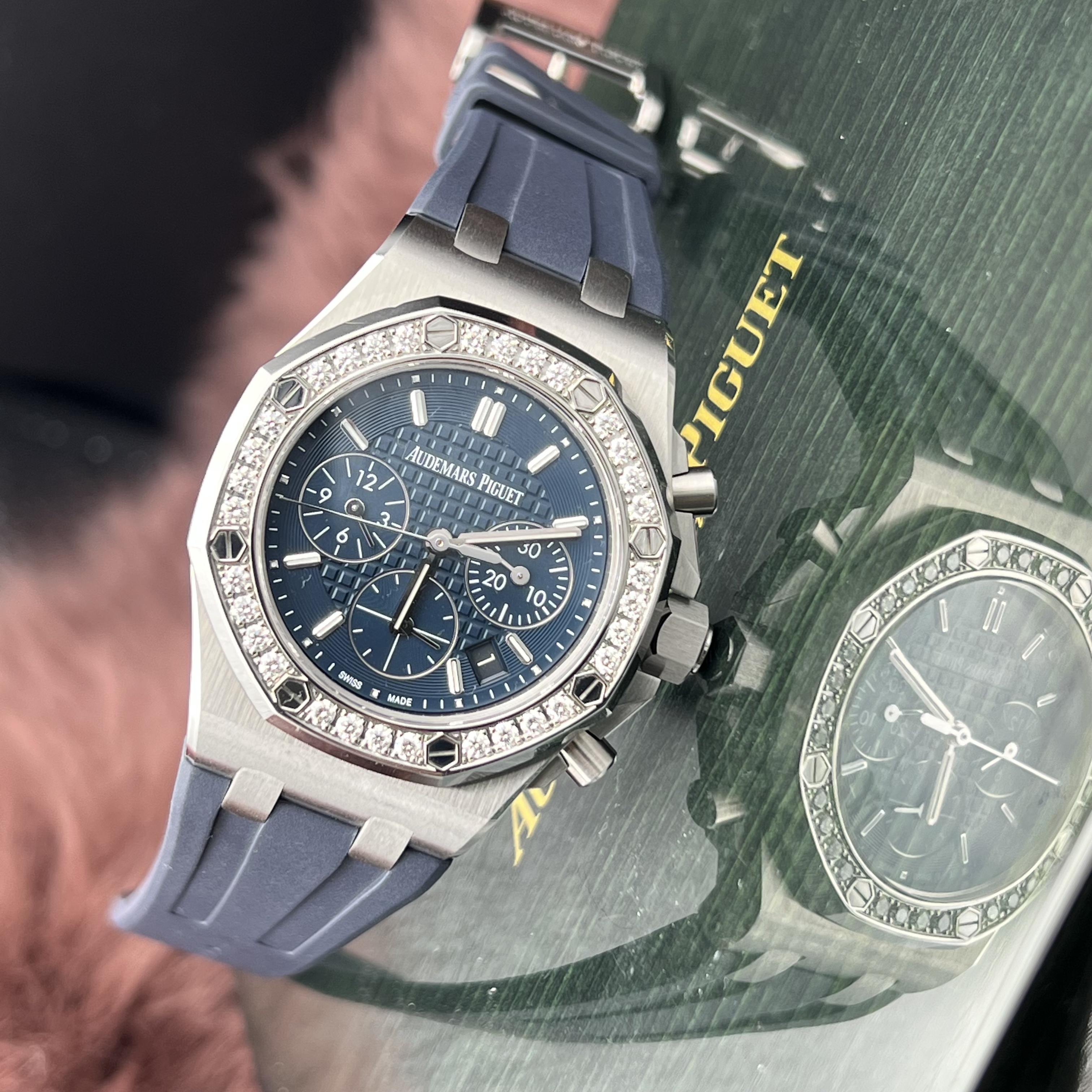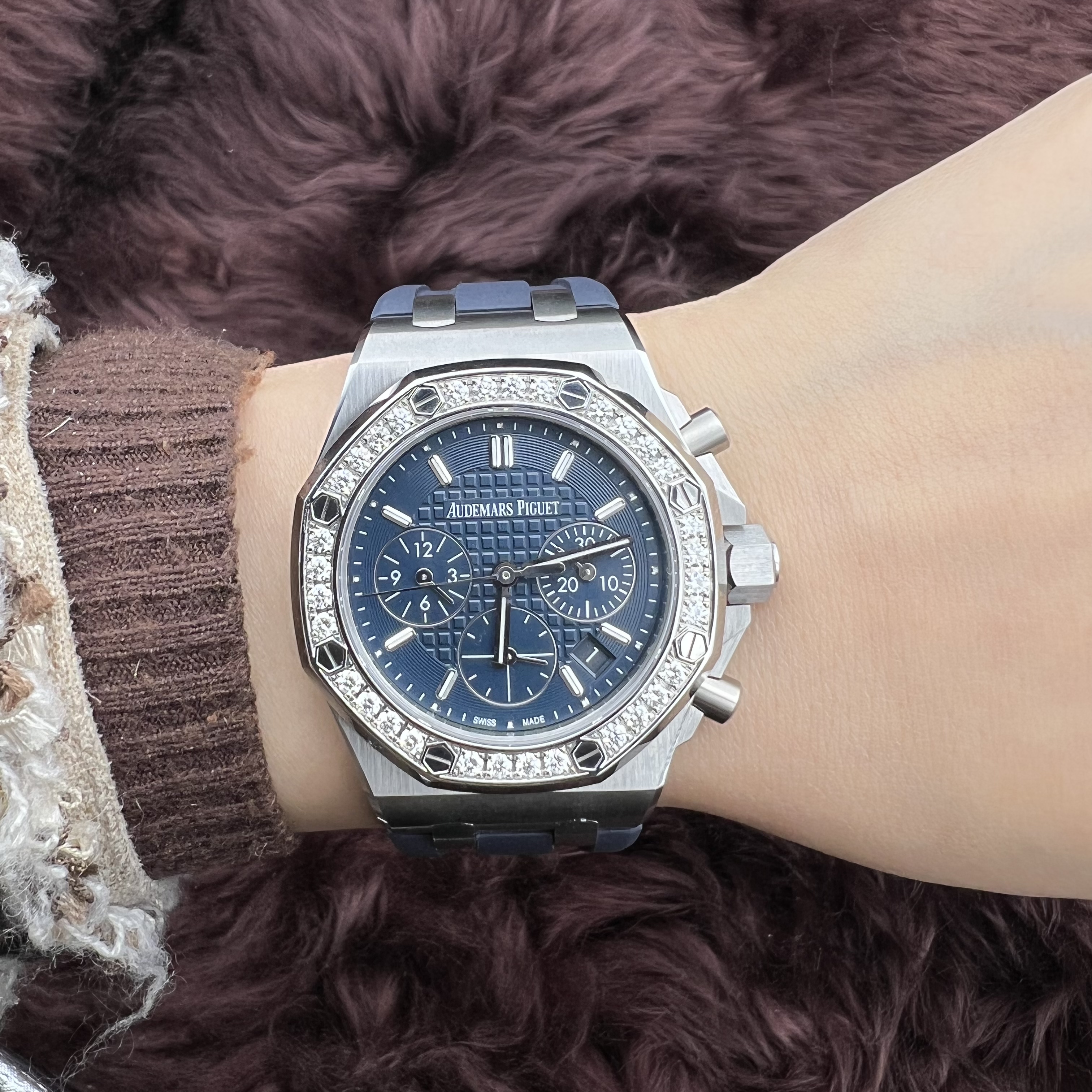 爱彼 皇家橡树离岸型系列26231ST.ZZ.D027CA.01自动机械女士腕表,37毫米表径,最美稀有蓝色格纹面盘,王子文火爆同款,原镶钻,可遇不可求!极品单表一枚超公价款,现货好价
