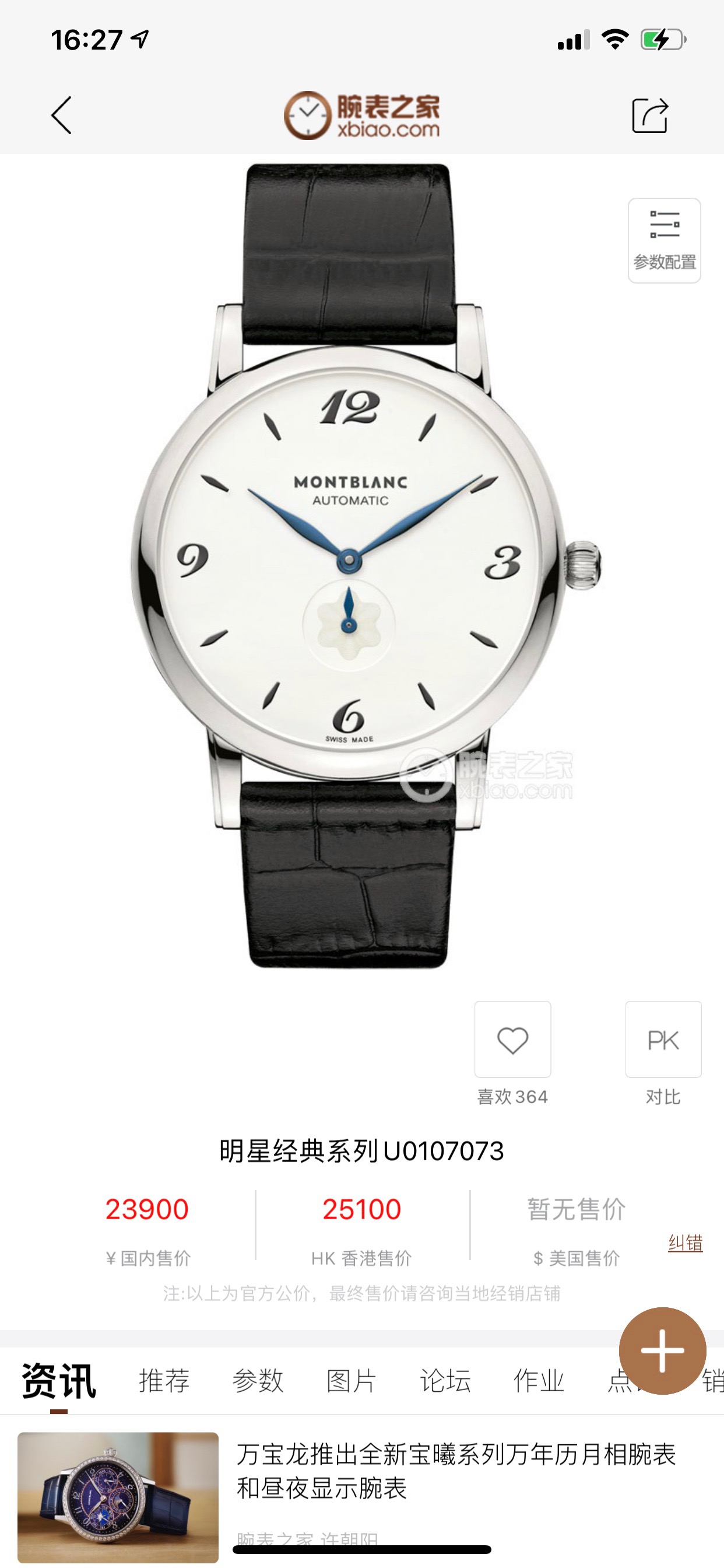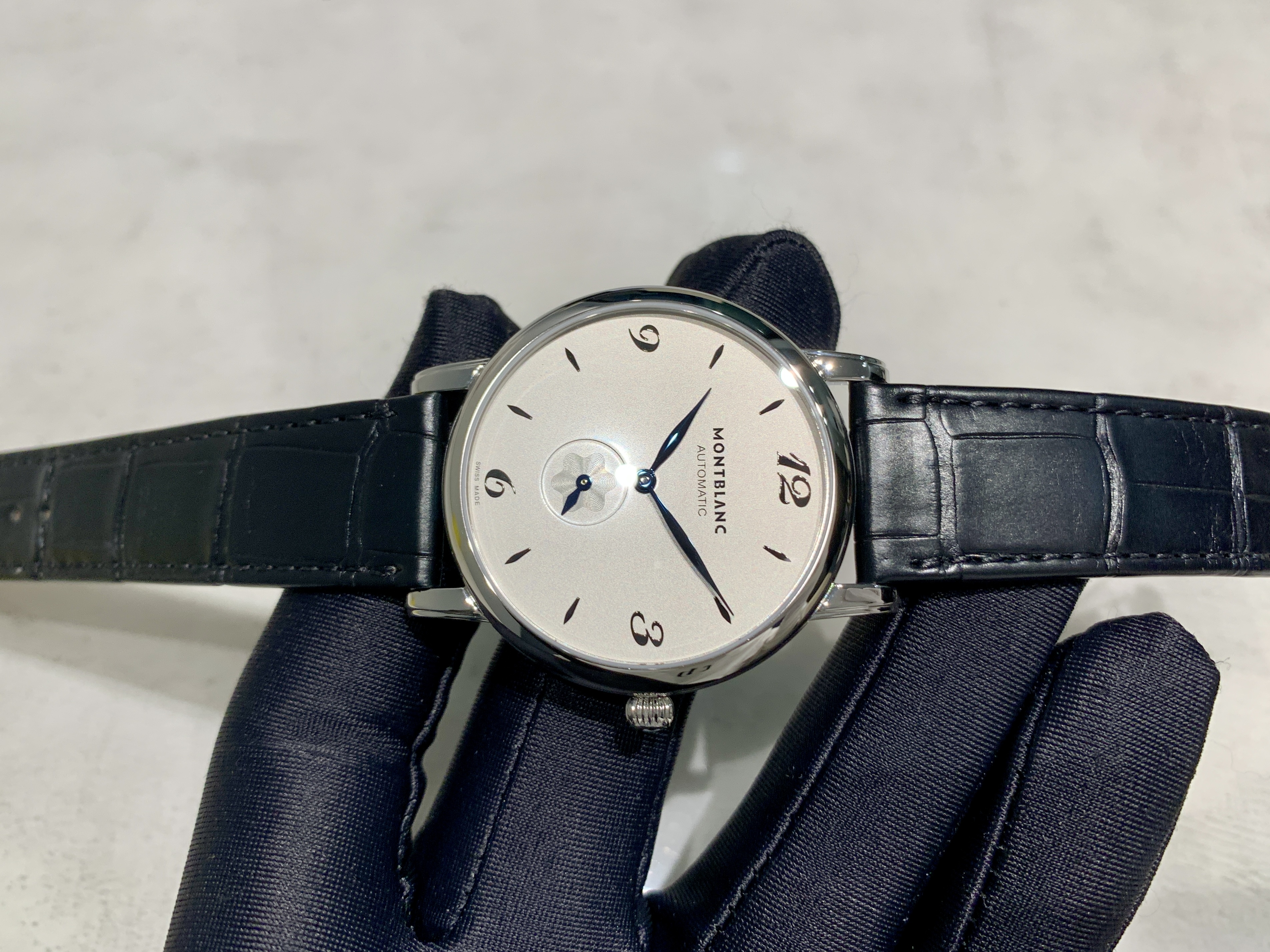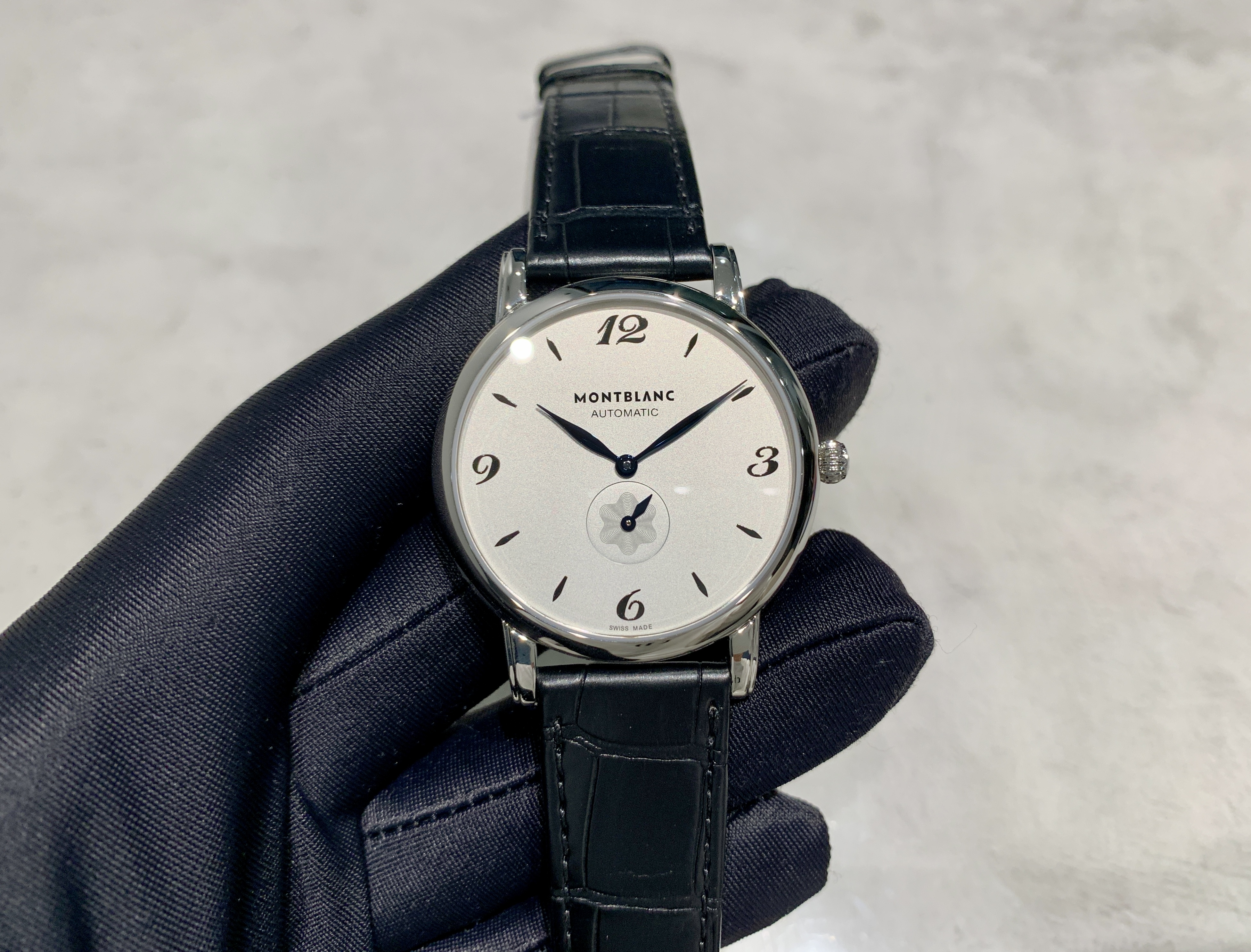 万宝龙 明星 107073 表径39mm,精钢材质,白盘蓝钢指针,Cal.4810/408 机芯,皮带针扣。公价23900元,现货全套。