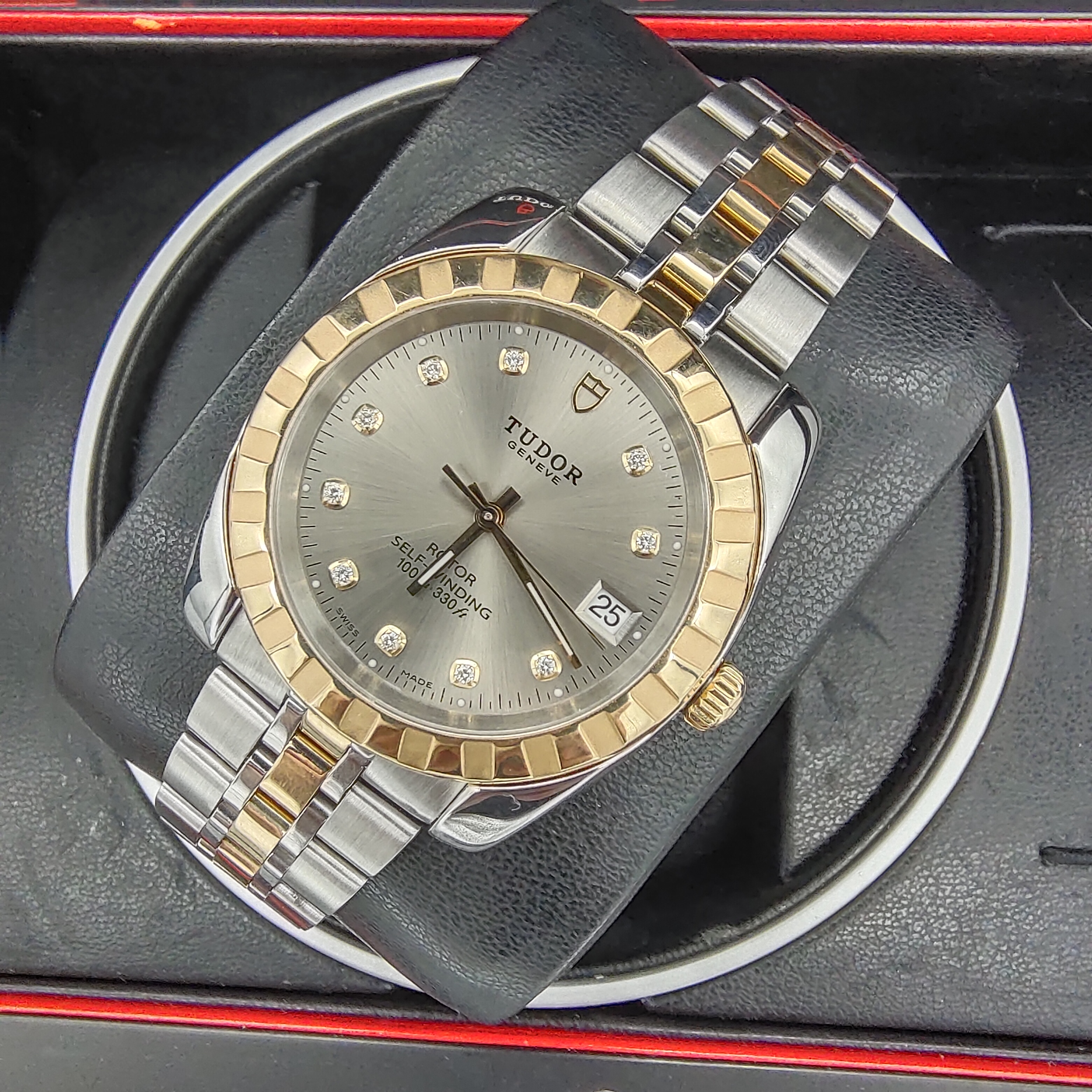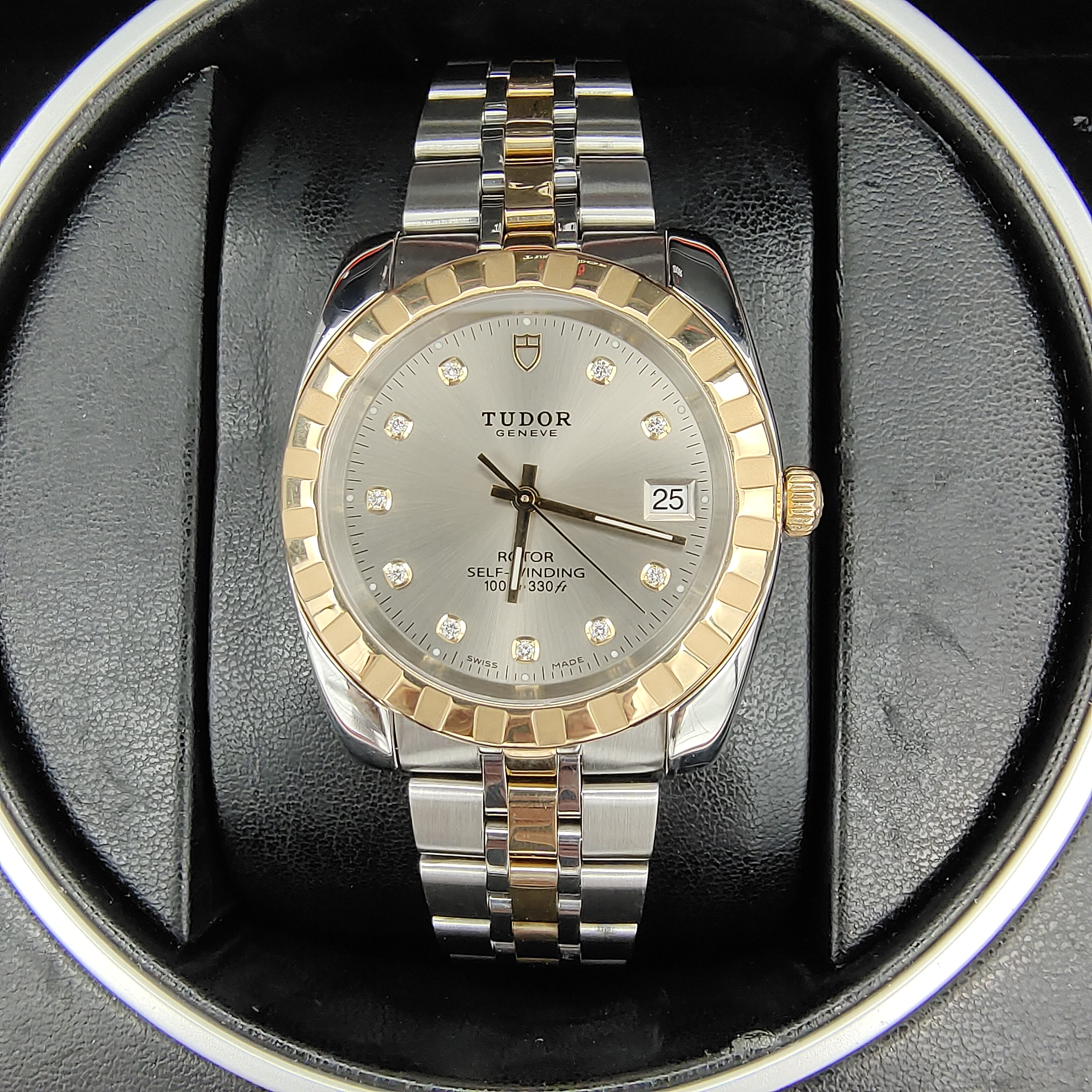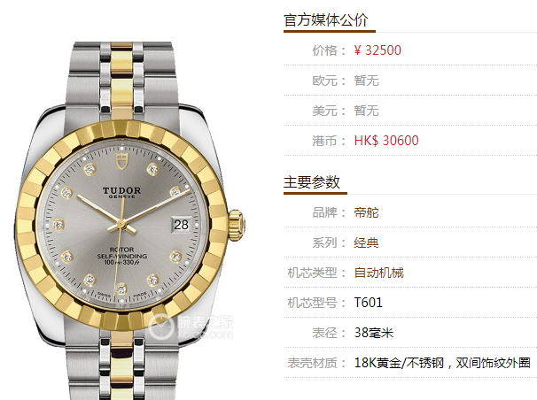 帝舵经典系列M21013-0012腕表 公价32500 自动机械 表径38毫米 18K黄金/不锈钢材质 表盘镶钻 蓝宝石水晶玻璃表镜 38小时动储 防水深度100米(注:无附件单表)