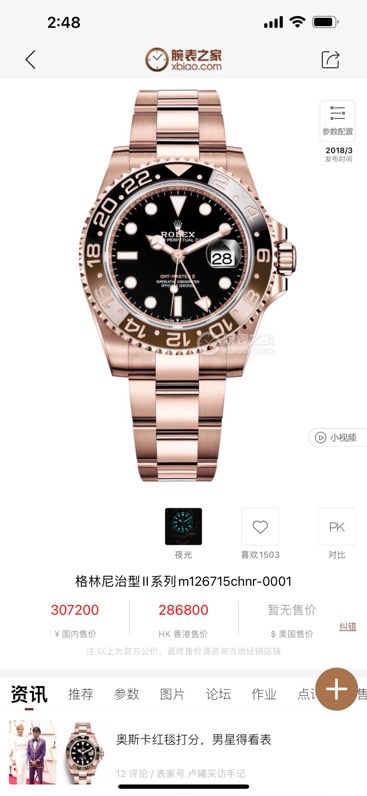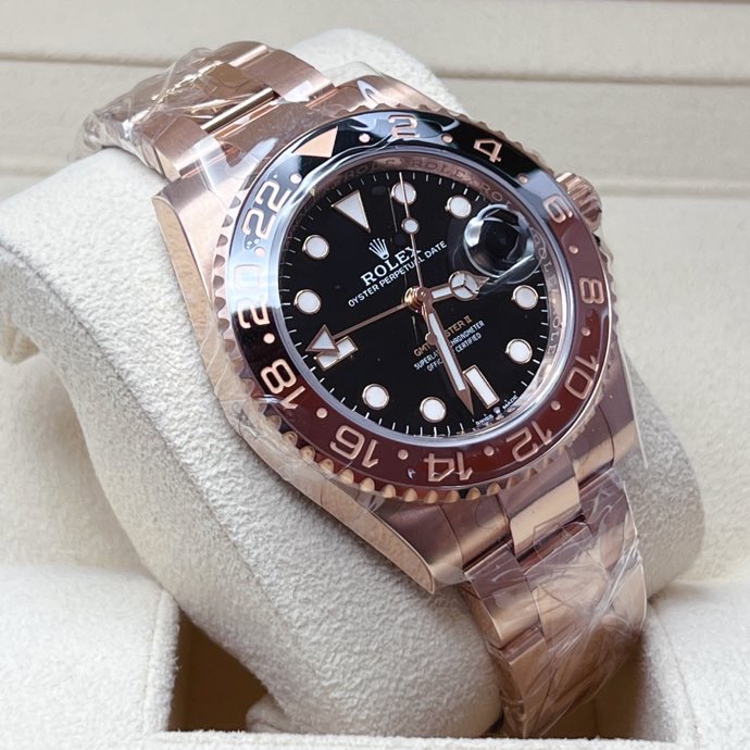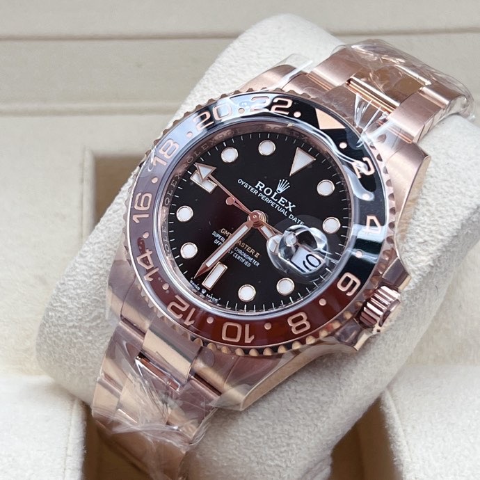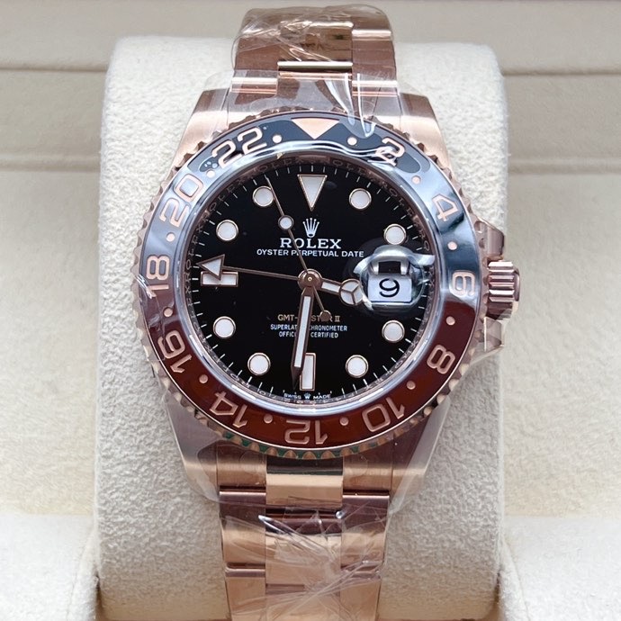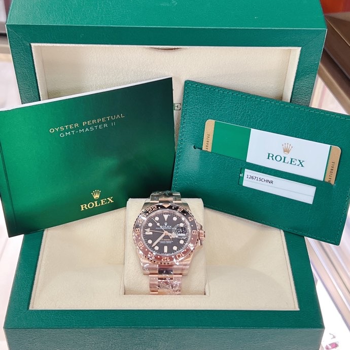 劳力士 格林尼治II 126715CHNR 大闸蟹 18K玫瑰金材质 40mm表径 金壳金带 日期显示 GMT两地时功能 新款自动机械 专柜售价307200 2019年大全套未使用品二维码全 现货好价
