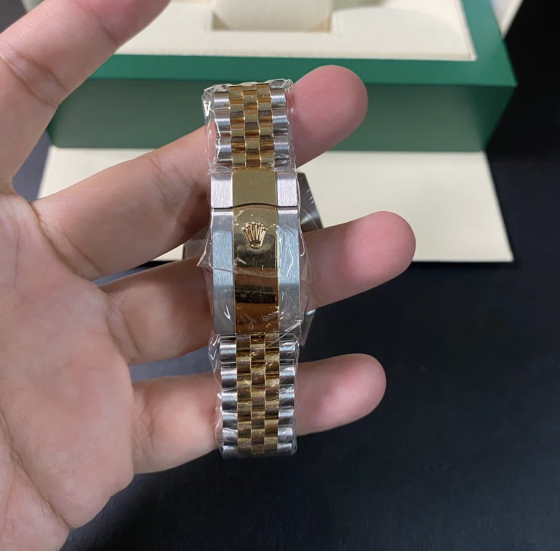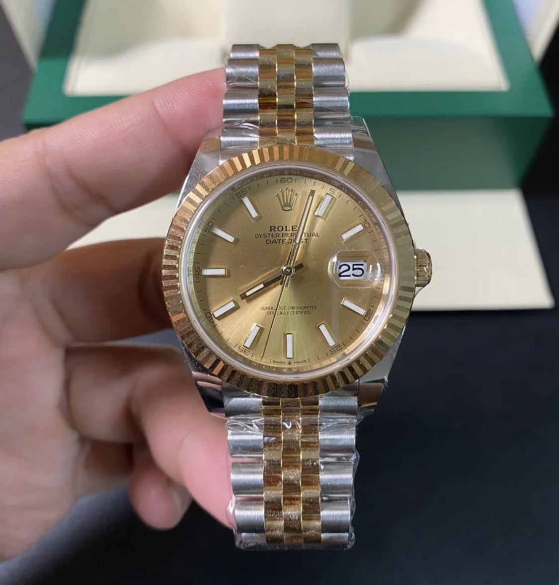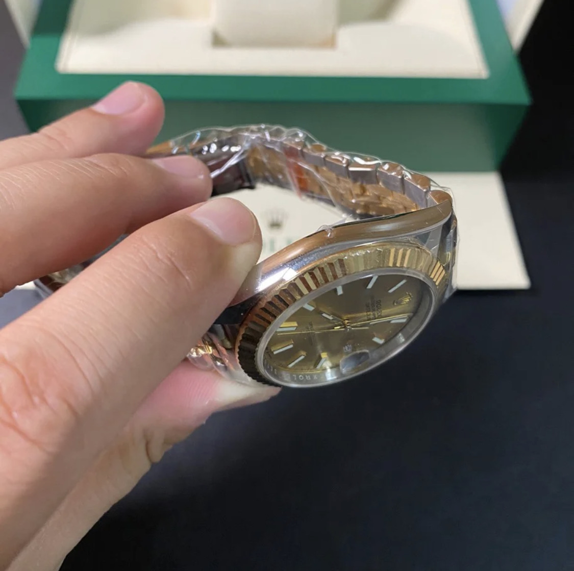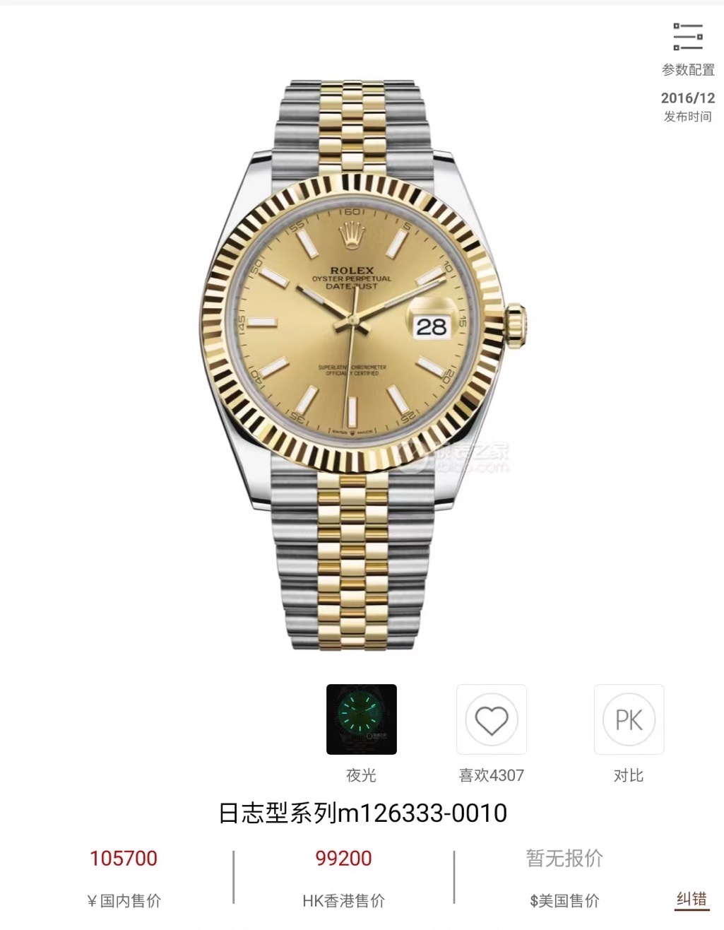 劳力士日志126333-0010间金 黄丁条 劳力士日志型41mm间金机械腕表,18k黄金表圈及间金表带,土豪金面盘,搭载最新自产Cal.3235机芯,动力储存增至70小时长动力,专柜售价105700元,现好价出!!