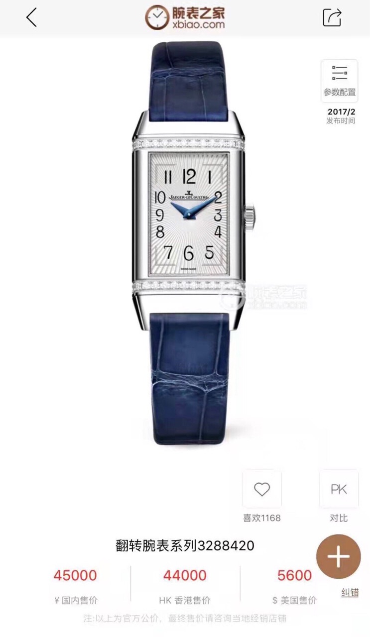 积家/Jaeger LeCoultre Reverso 翻转腕表系列 JLQ3288420 石英机芯 精钢 40.1 X 20毫米 专柜价 45000