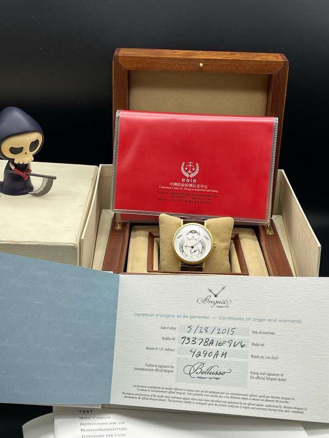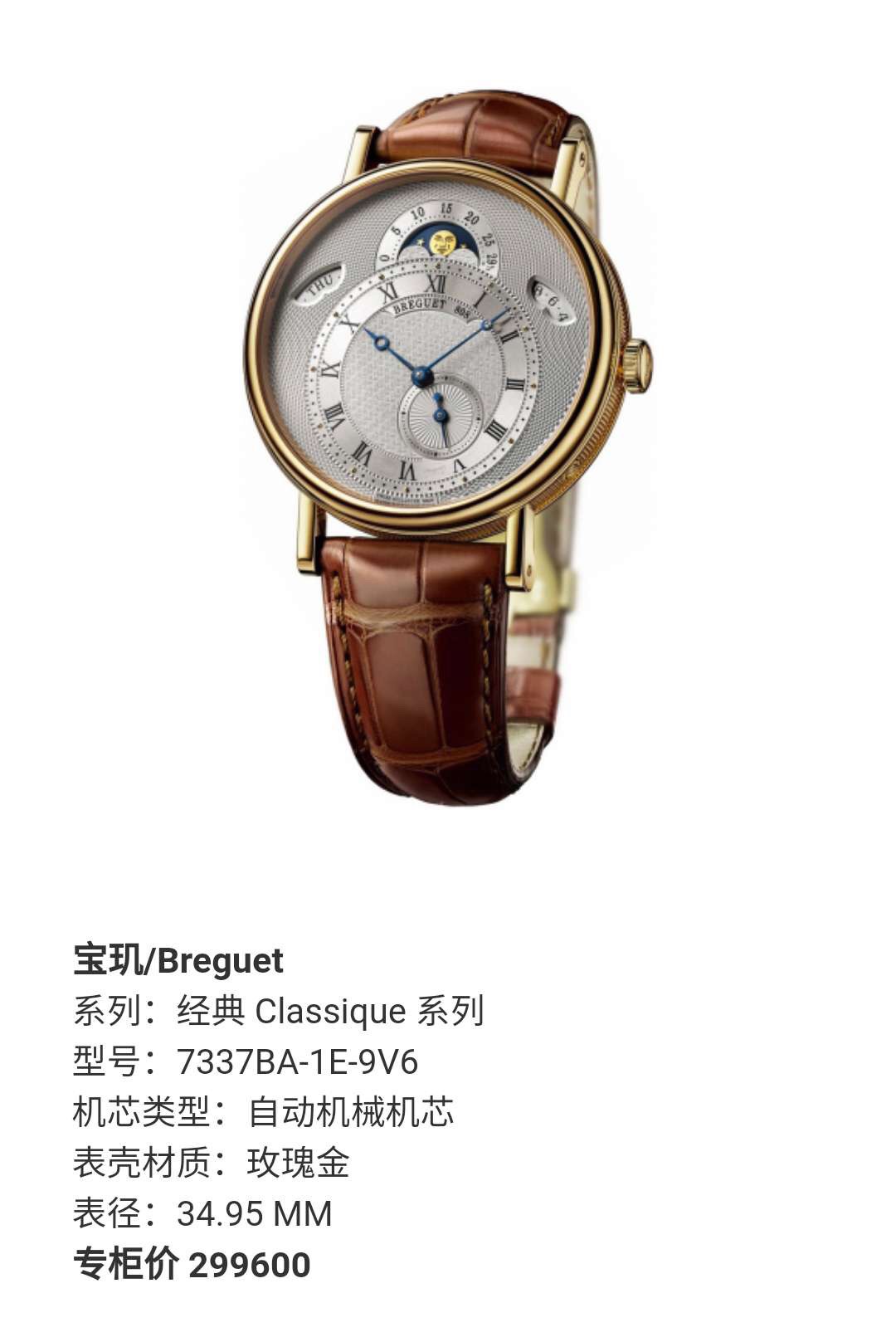 【15年宝玑7337BA】宝玑经典系列7337BA黄金月相,2015年5月大全套,月相 星期 日历功能,整表无硬伤,公价299600,现货特价~