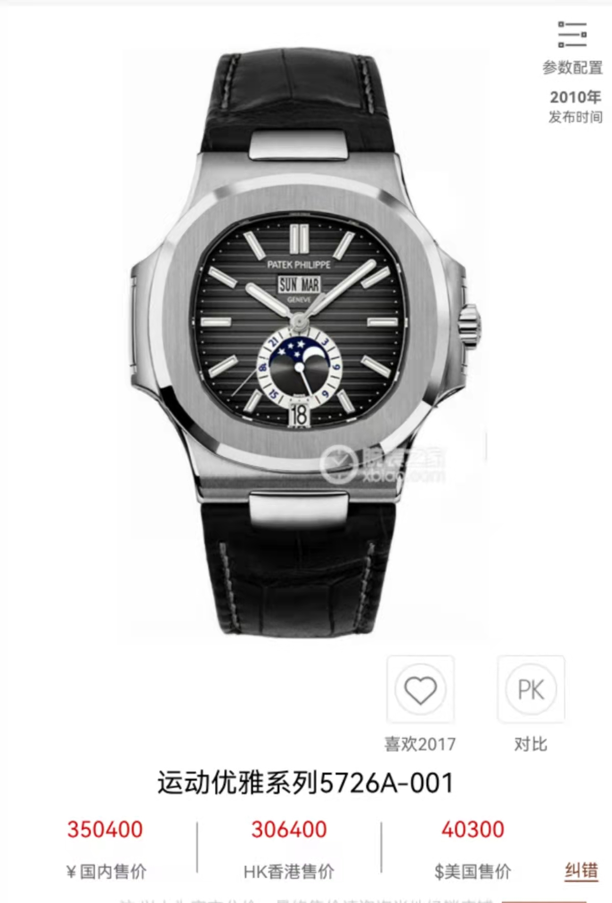 百达翡丽 5726A运动款鹦鹉螺,40.5毫米表径。日期、星期 、年历 、月相。国行22年2月底全套带发票未使用品,超公价升值理财产品,心动的感觉!现货好价