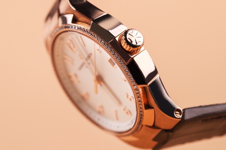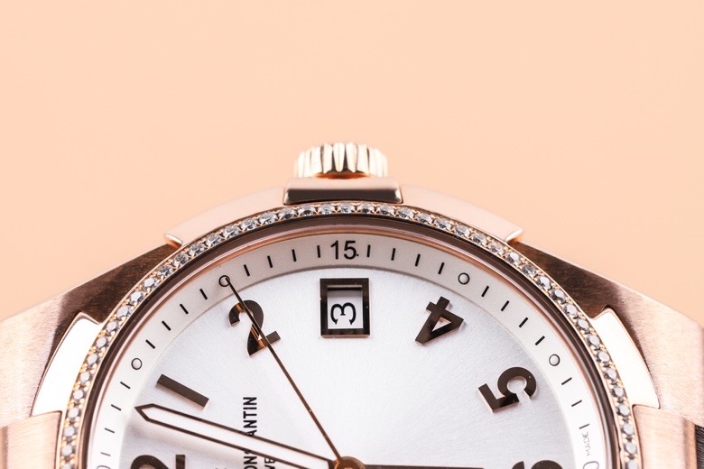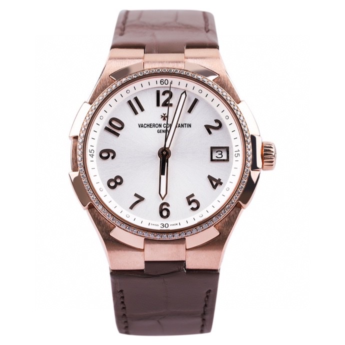 江诗丹顿原钻 江诗丹顿纵横四海系列47560自动机械女款 36毫米表盘 18k玫瑰金表壳材质 日历显示 阿拉伯数字刻度 原镶钻 折叠扣 参考专柜241000元