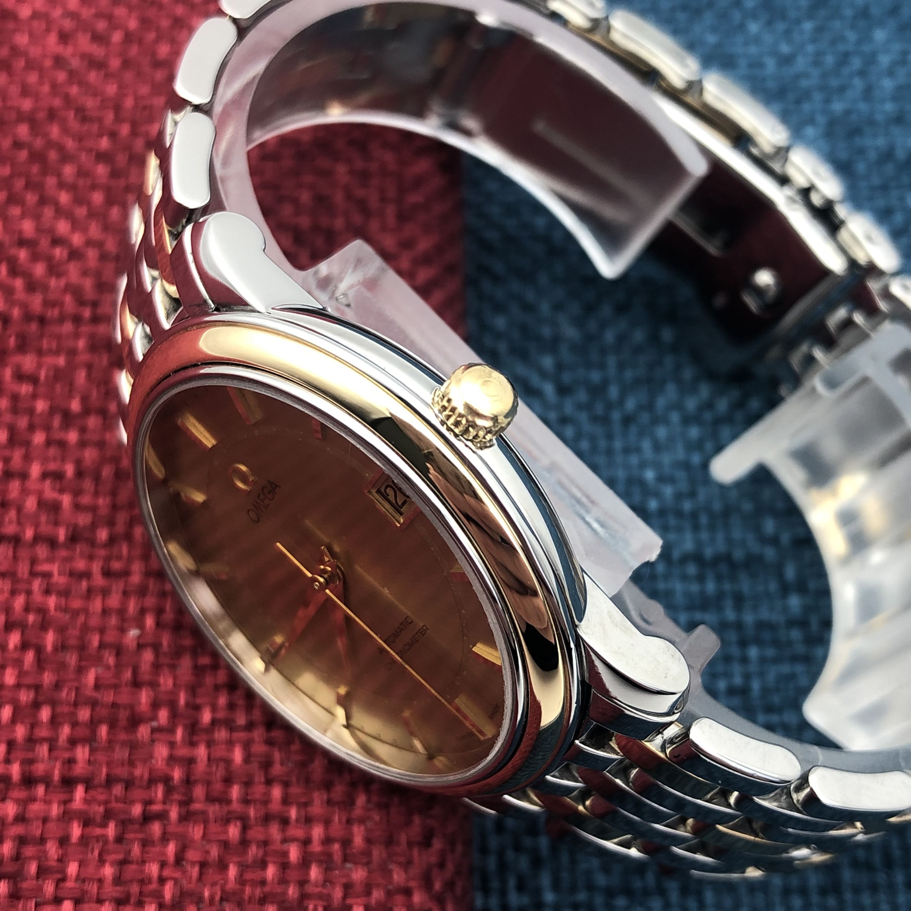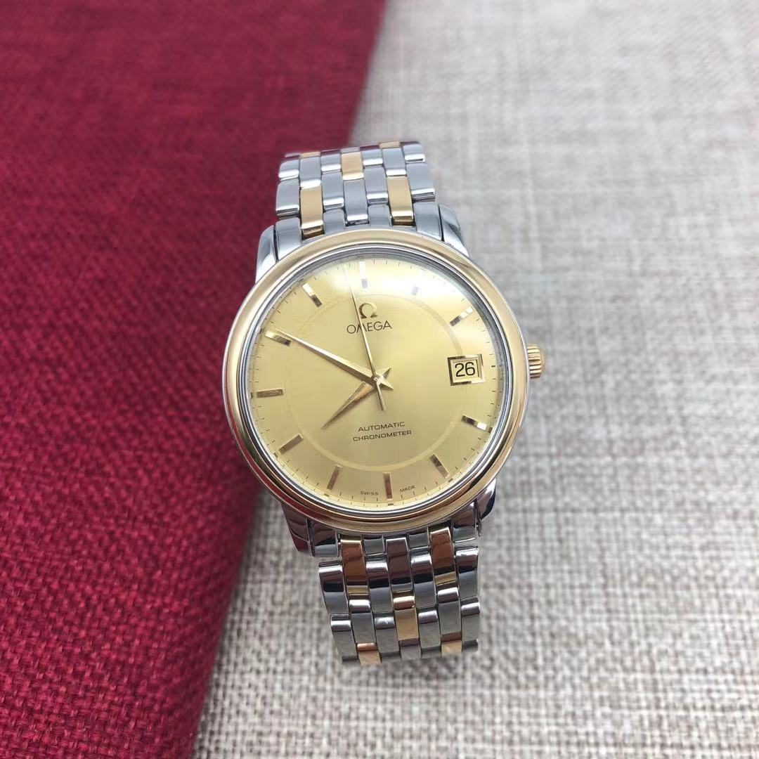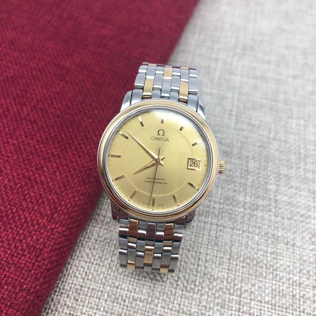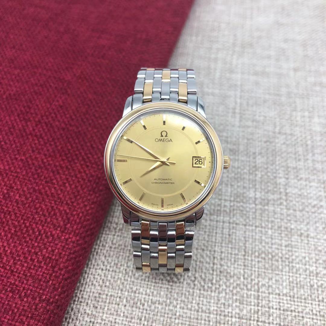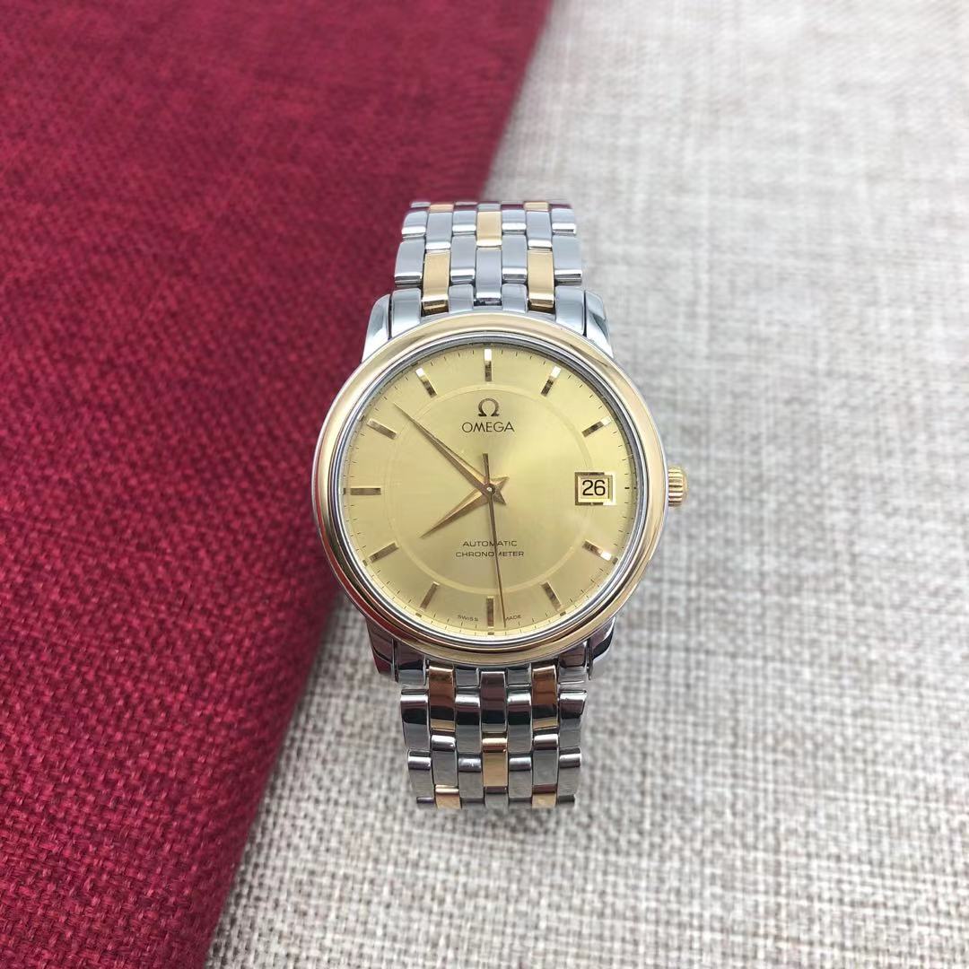 欧米茄碟飞4300.11.00,自动机械男士腕表,表径34.5mm,瑞士天文台认证,表壳/表带/表扣材质:18k黄金-精钢,表冠材质:18k黄金, 公价23500,好价几千~