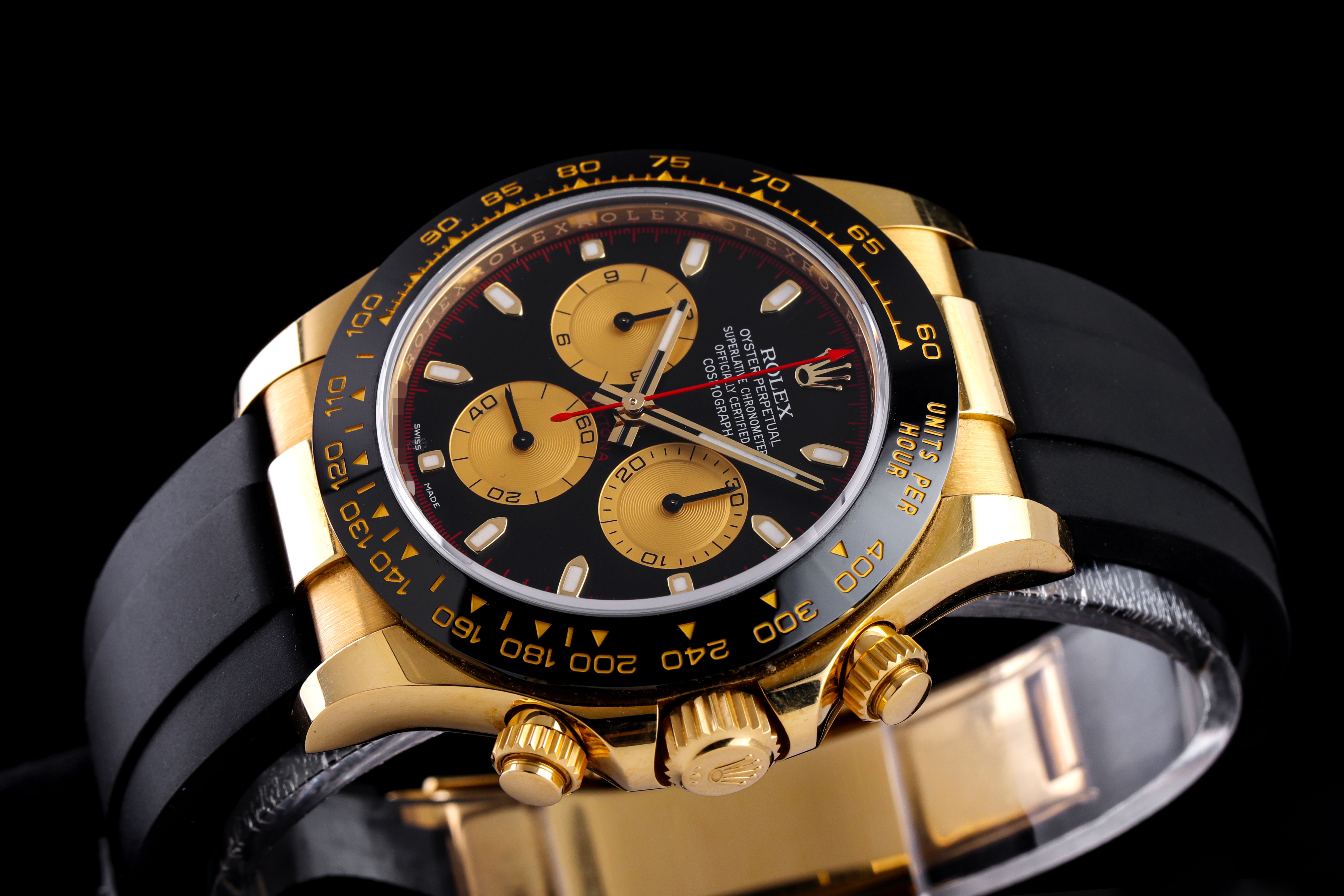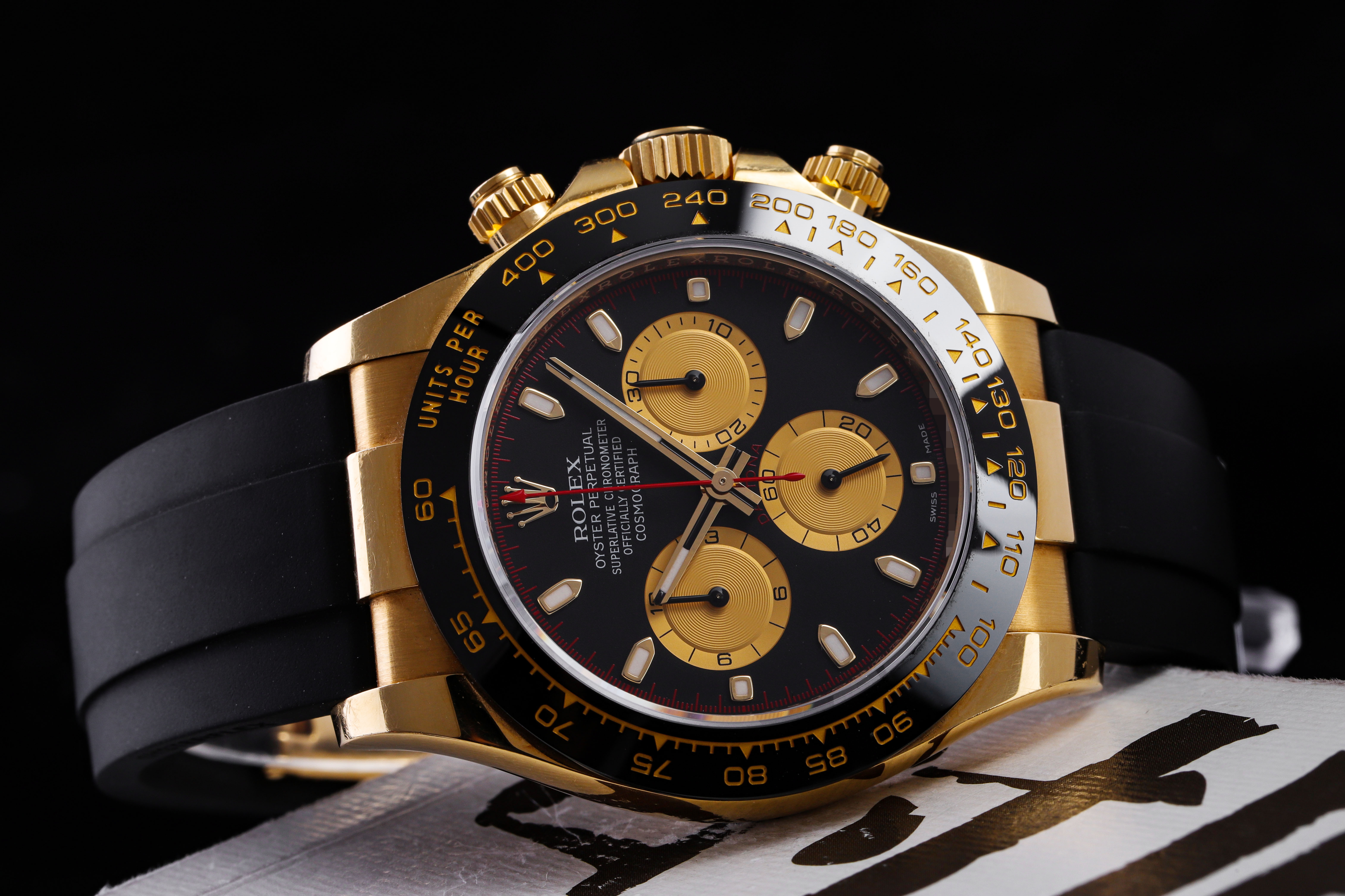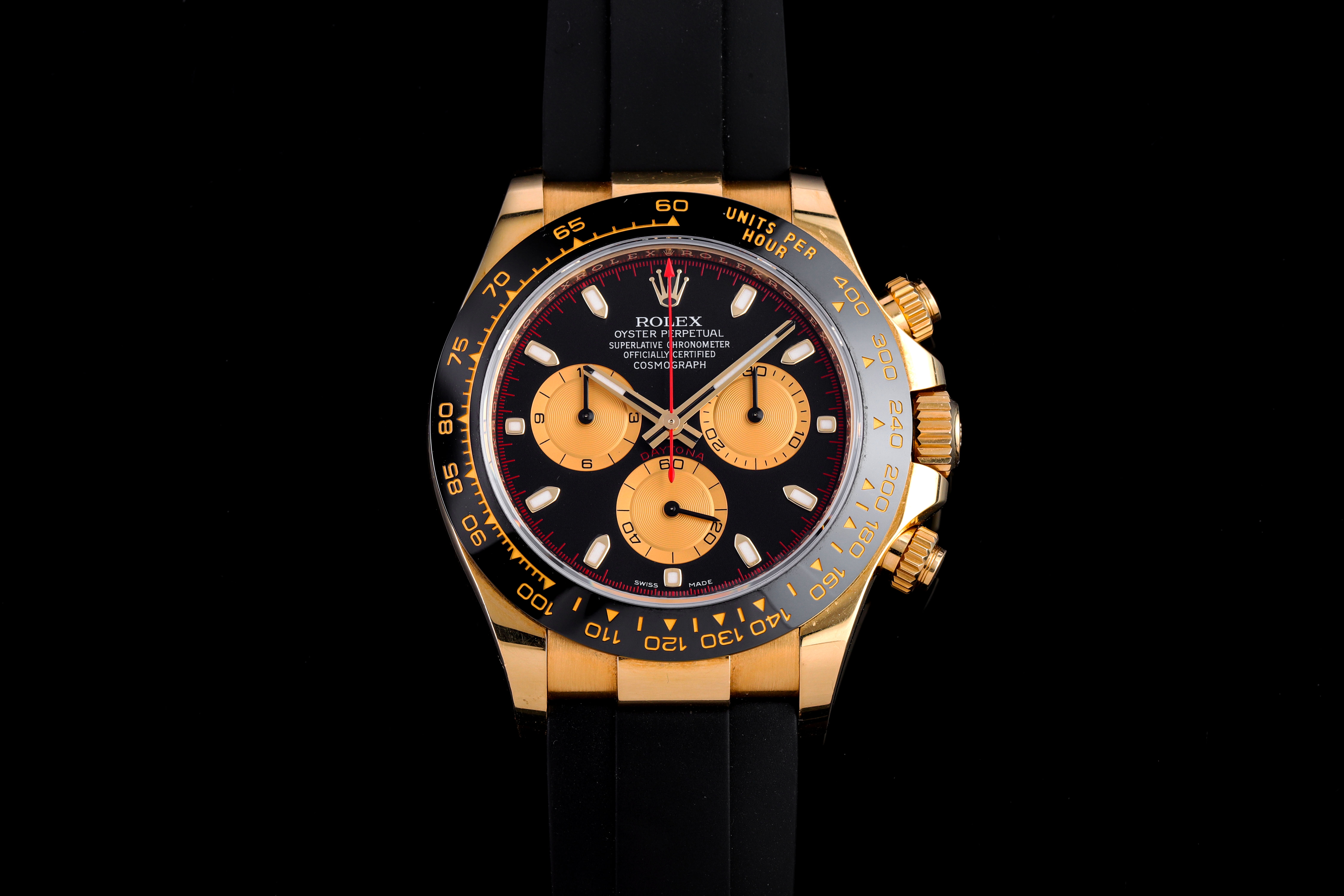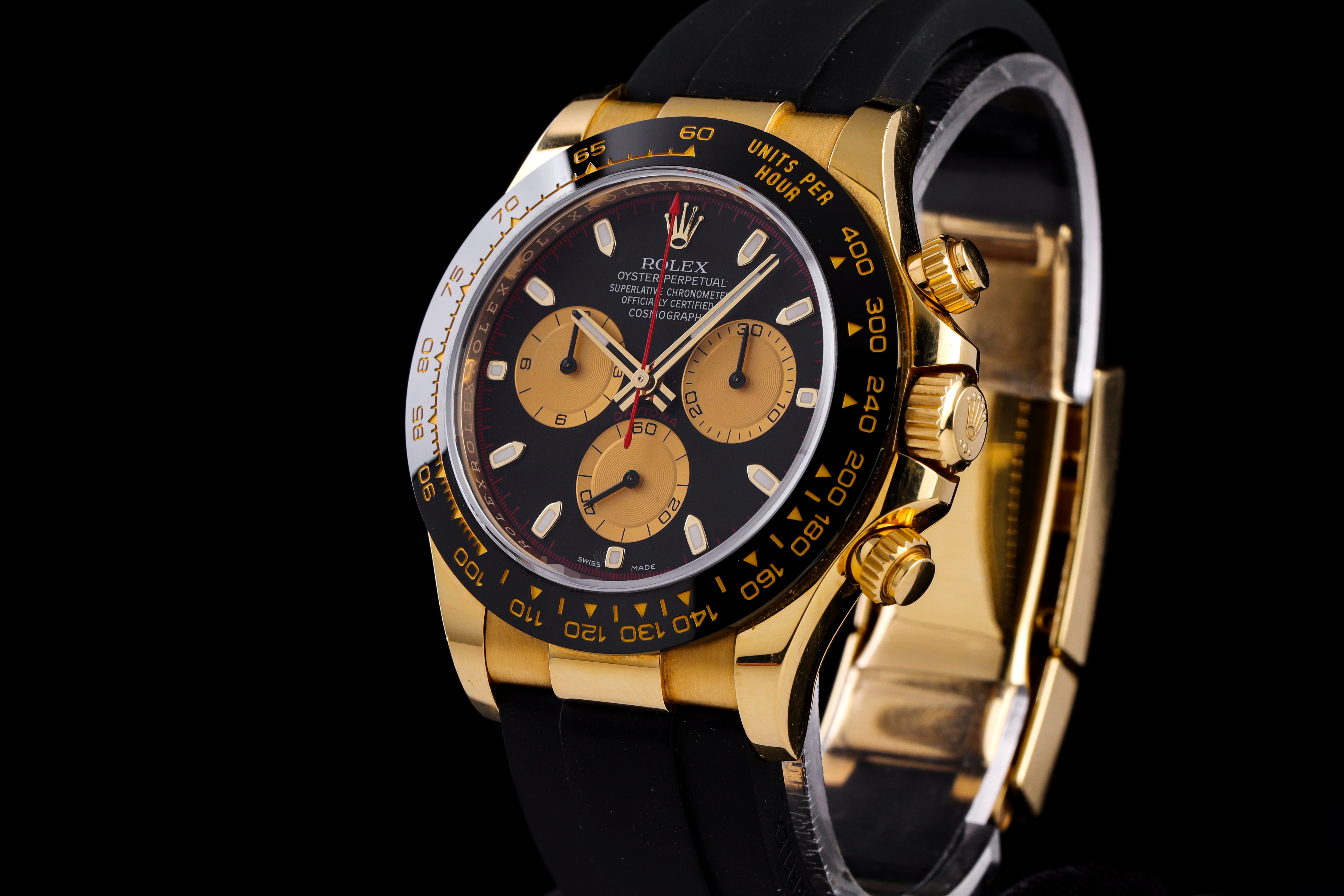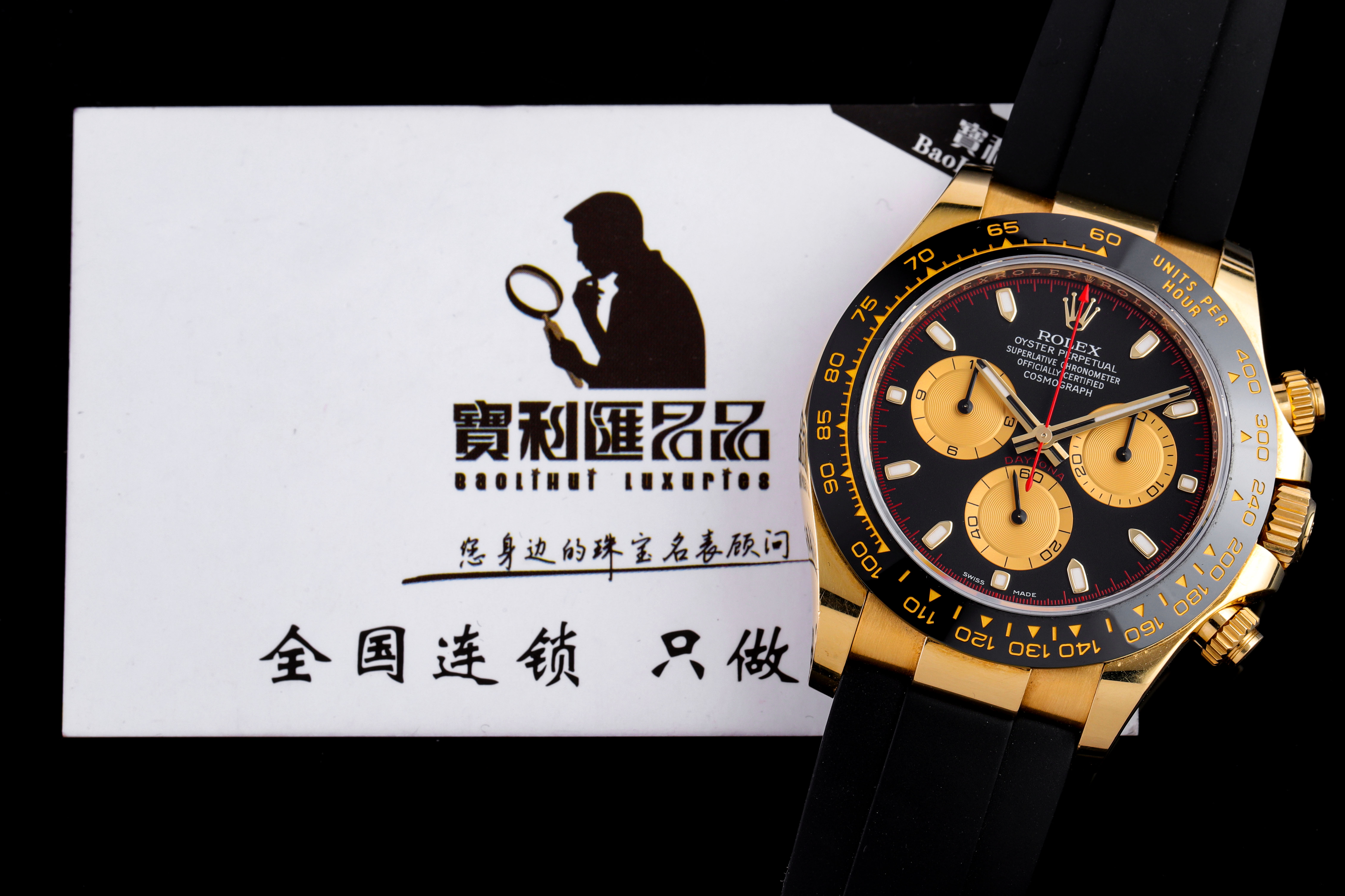 劳力士宇宙计型迪通拿系列116518LN-0047保罗纽曼;俗称小怪兽,40毫米表径,18K黄金材质表壳表扣,自动机械折叠扣设计,二手极品全套附件,非常漂亮的盘面。专柜定价231900元,现货超原价