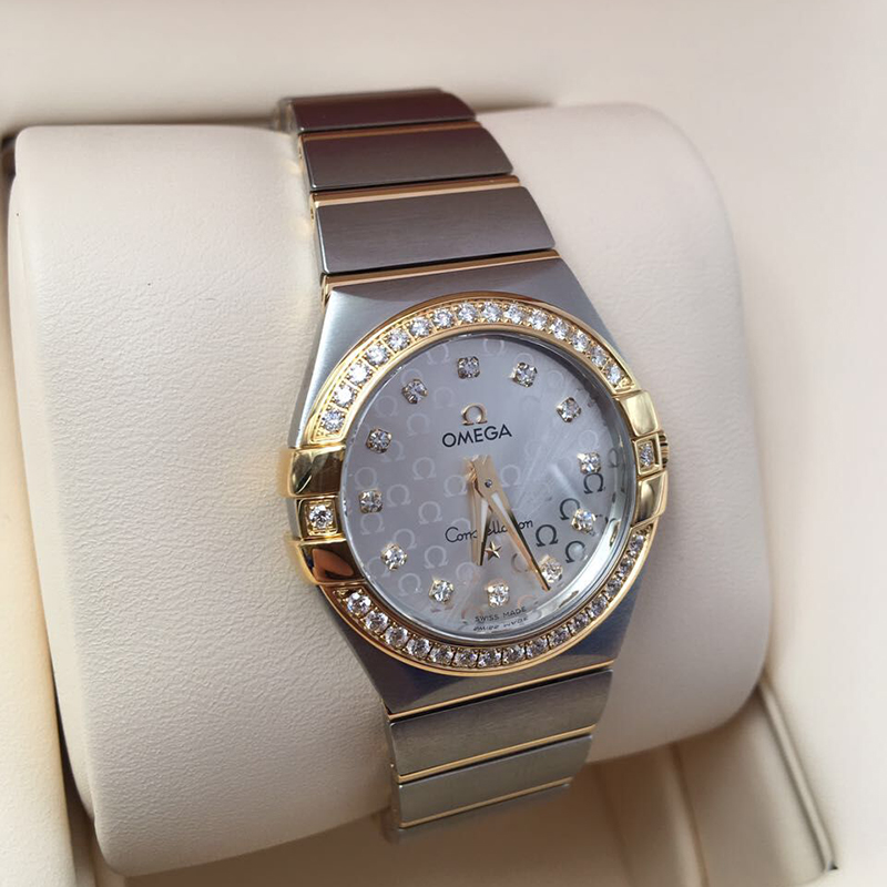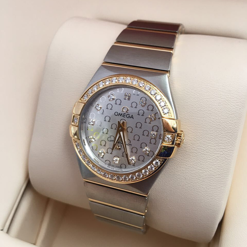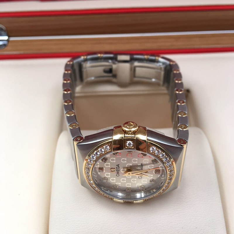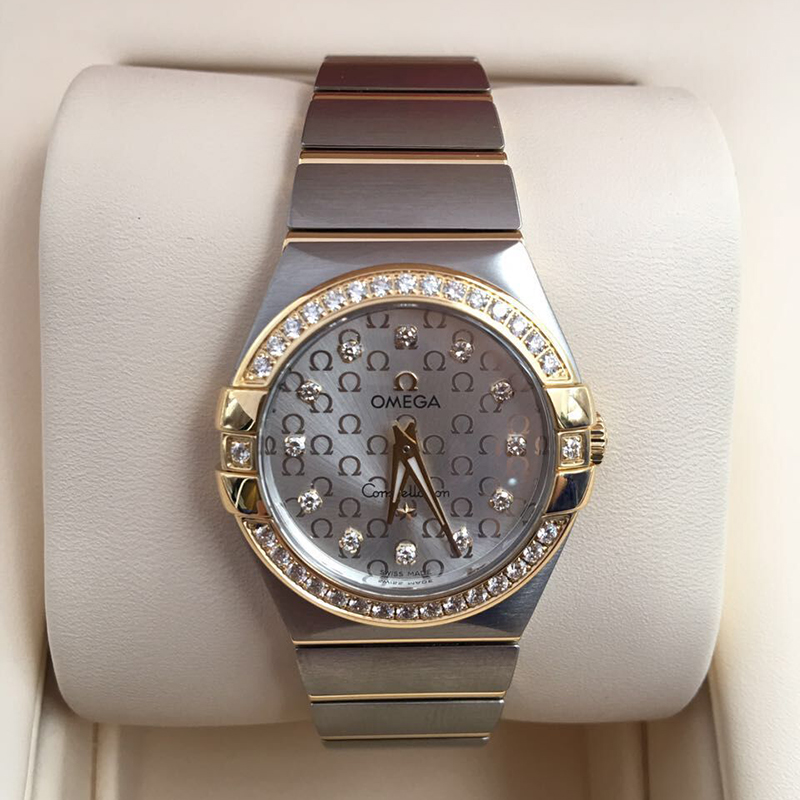 欧米茄 星座系列 自动机械 型号:123.25.27.60.52.002 女士腕表 表径:27mm 间金镶钻材质 单表 参考公价:54100