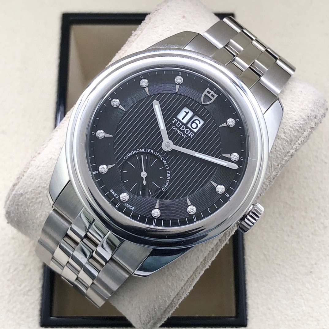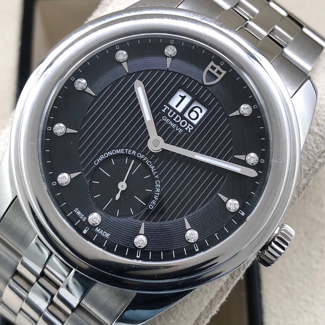 帝舵 骏珏系列 M57100-0004型号 自动机械表 动力储备70小时 瑞士天文台认证 表径42mm 背透 100米防水深度 不锈钢材质 大日历 2019年全套