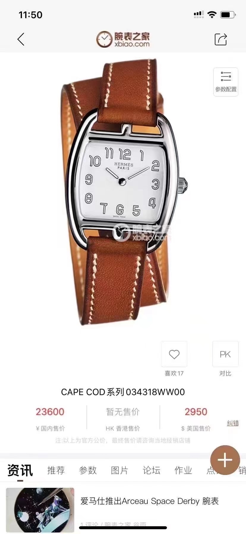 爱马仕 CAPE COD系列 女士 石英表 闲置品后盖膜都在 原价23600 现特价出