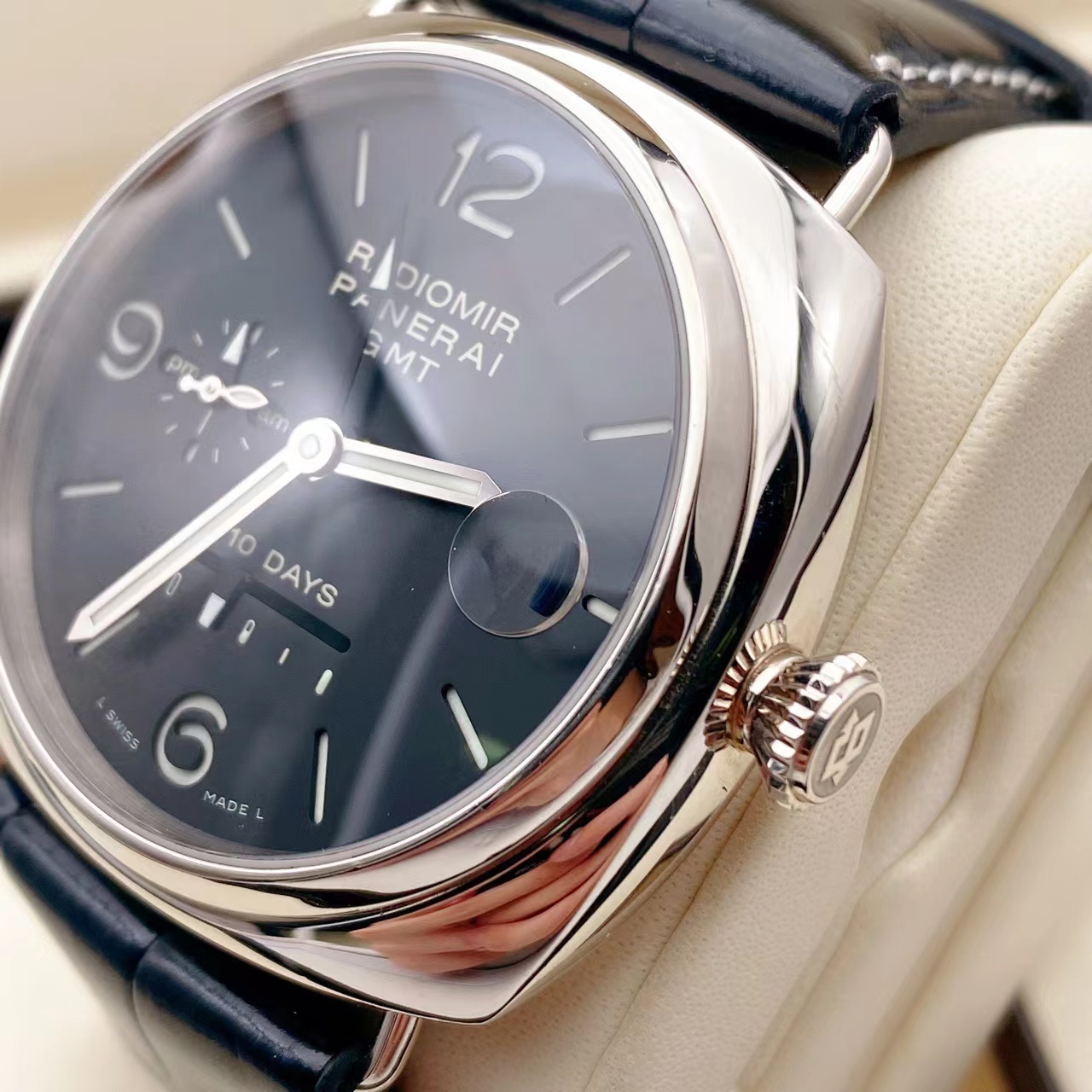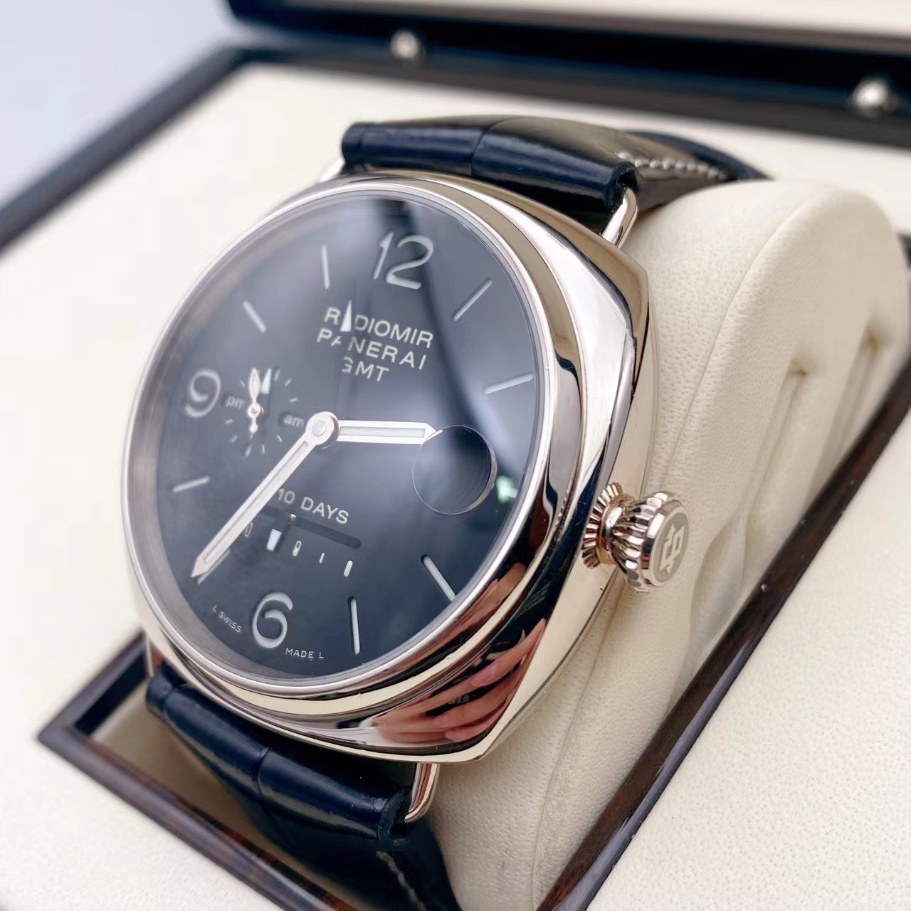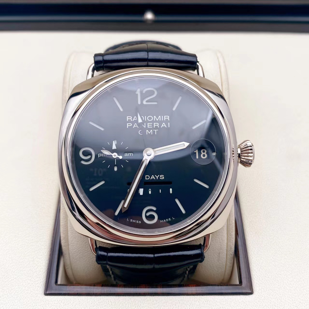 沛纳海PAM00235,限量款 18K白金外壳 十天动力显示 白金折叠扣 背透自动机械机芯 GMT显示 八年延保到2027年 购入价34万多 特价~