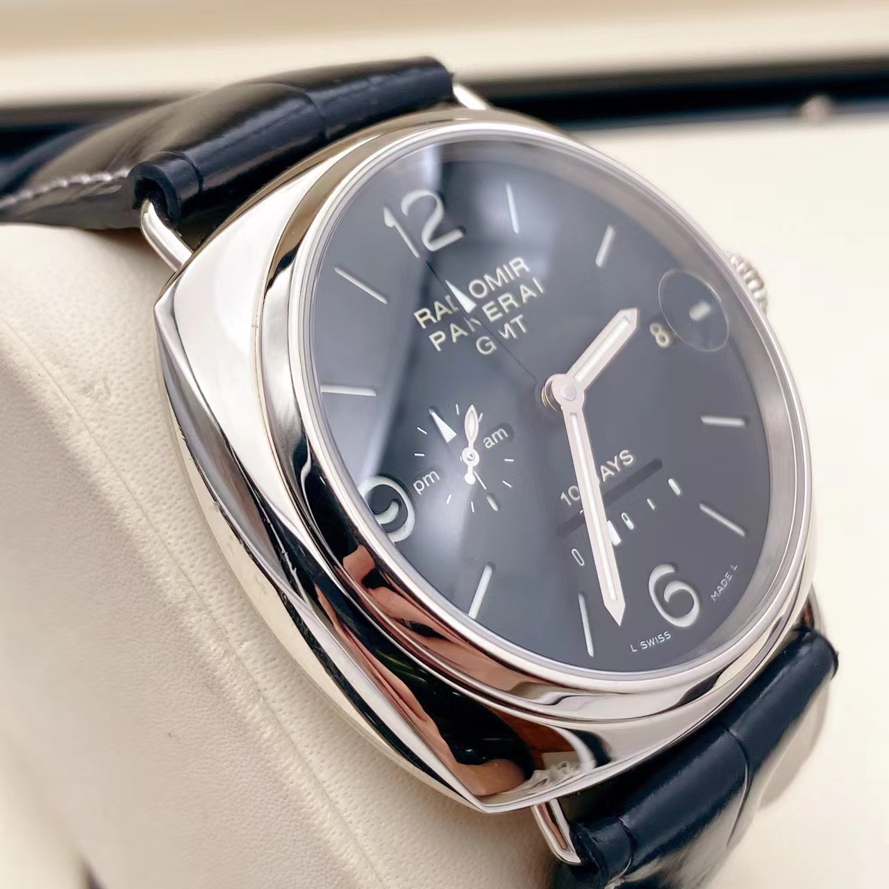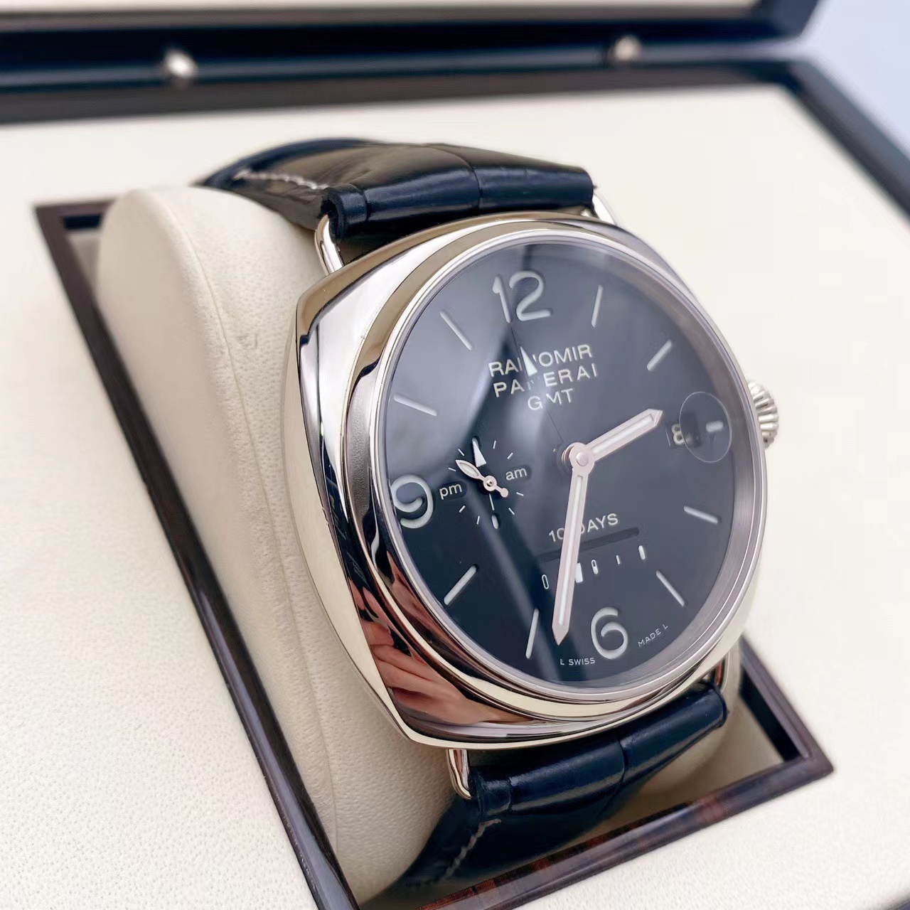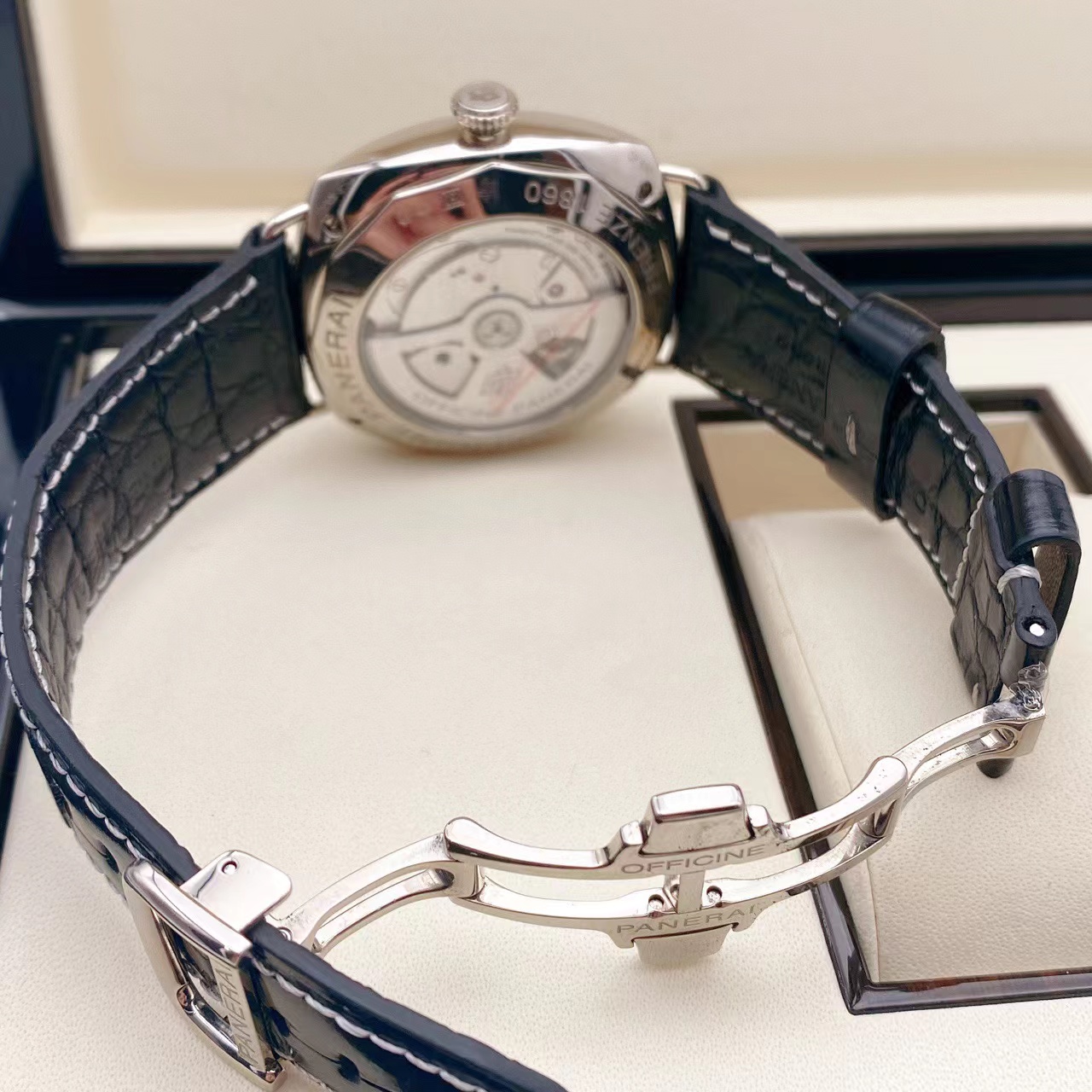沛纳海PAM00235,限量款 18K白金外壳 十天动力显示 白金折叠扣 背透自动机械机芯 GMT显示 八年延保到2027年 购入价34万多 特价~