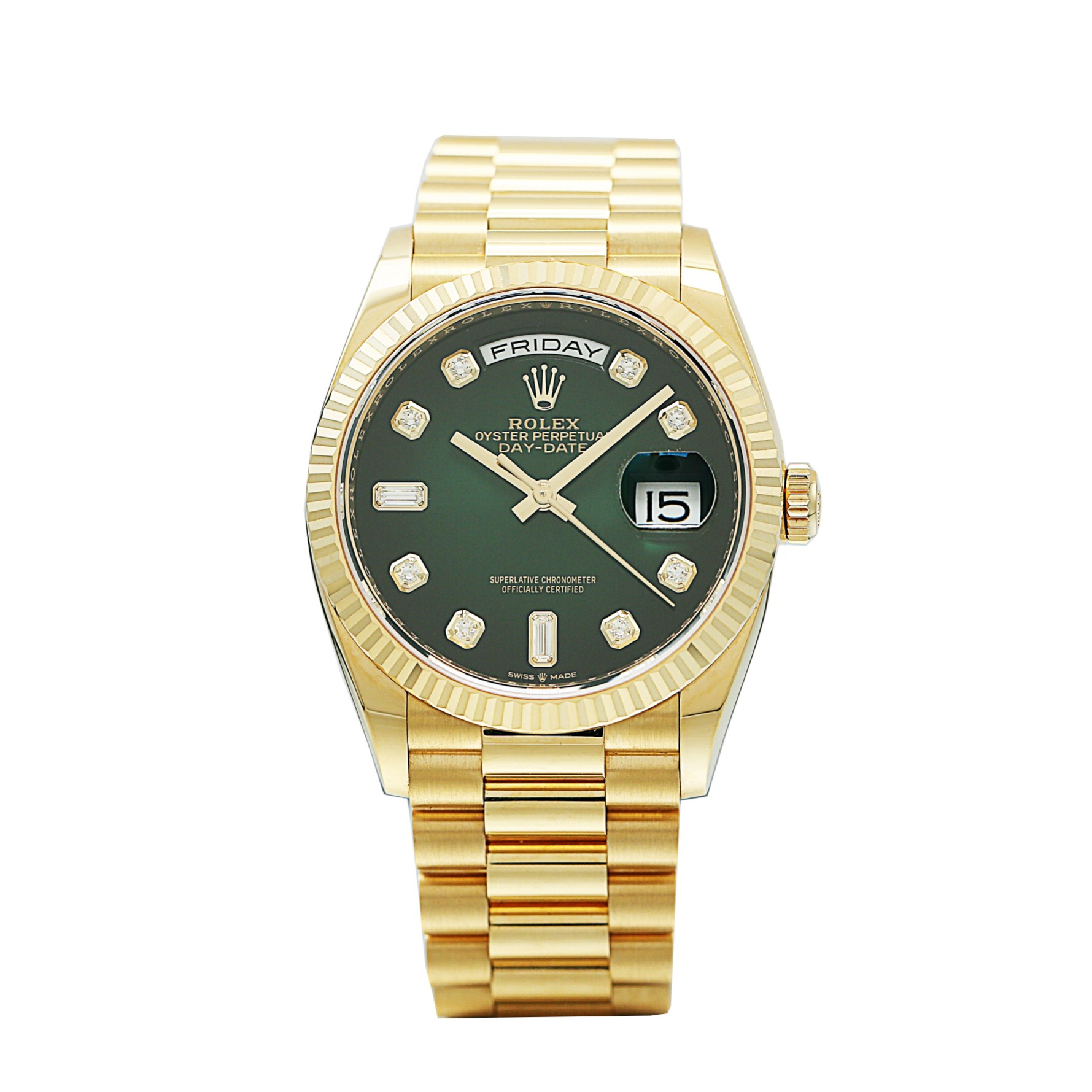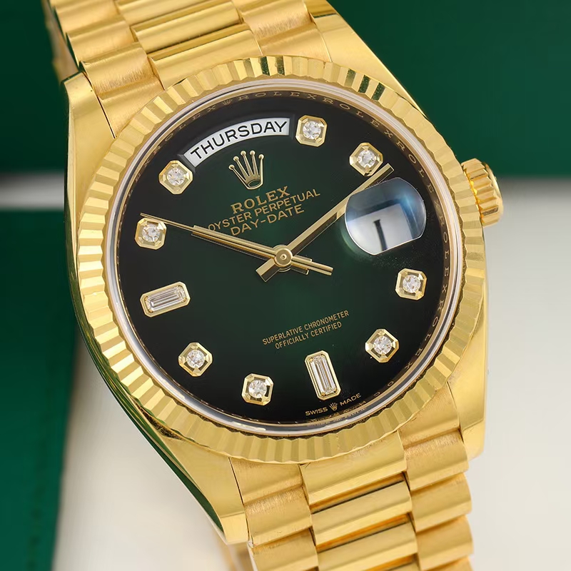 品牌:劳力士 系列:星期日历系列 型号:128238 材质:18k黄金 镜面:蓝宝石玻璃 表盖:密底 表扣:折叠扣 表径:36mm 机芯类型:自动机械机芯 成色:97新 附件:21年盒证 公价:282600 保修:一年