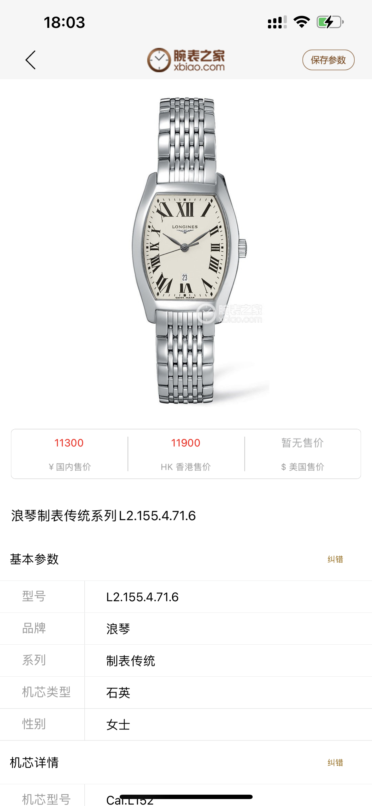 浪琴典藏L2.155.4.71.6石英女性
