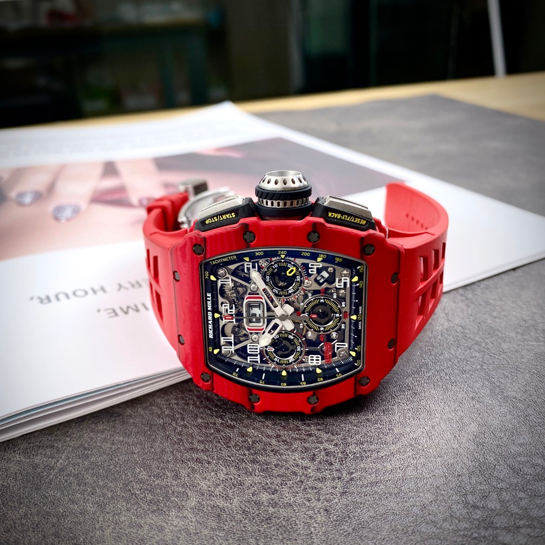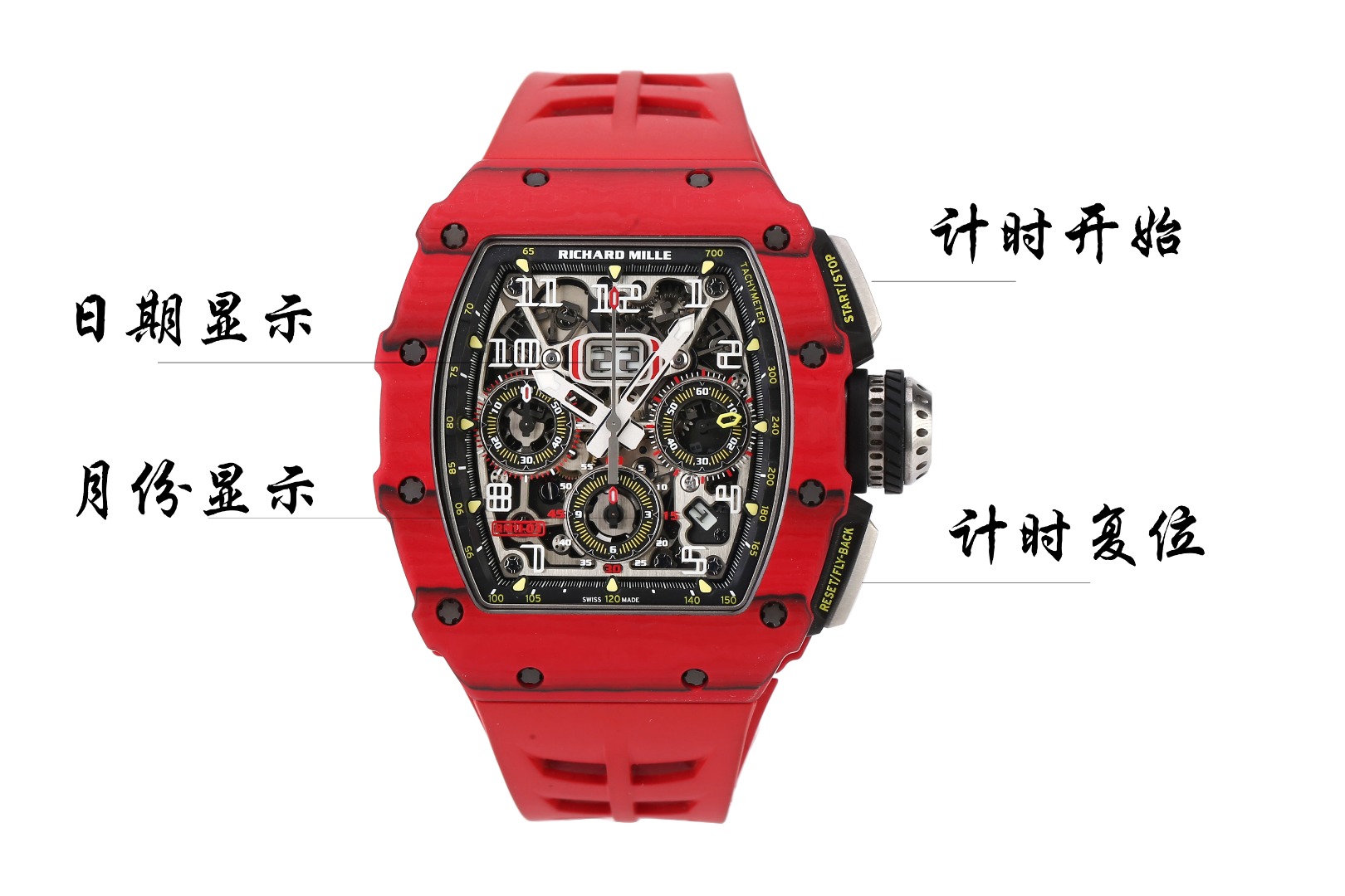 理查德米勒男士系列NTPT碳纤维自动机械男表】型号:RM11-03 表径:49.94*44.5mm 功能:日期显示;月份显示;计时
