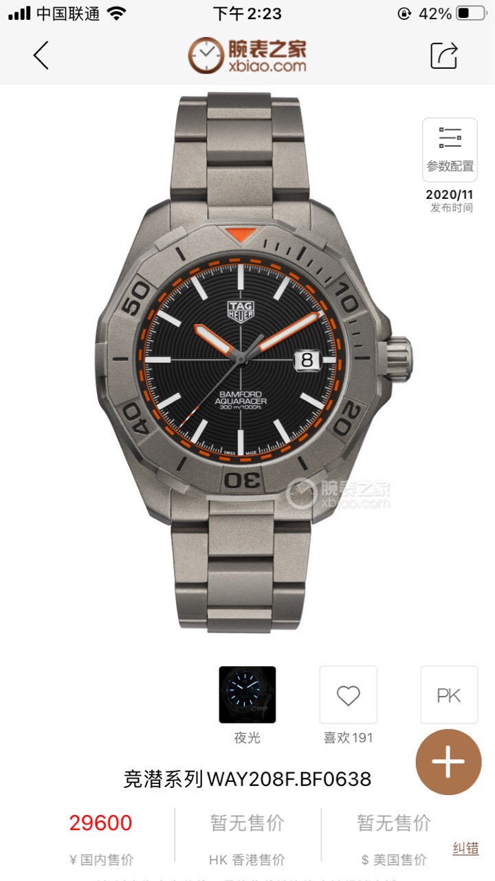 泰格豪雅竞潜钛金属限量版机械表竞潜系列