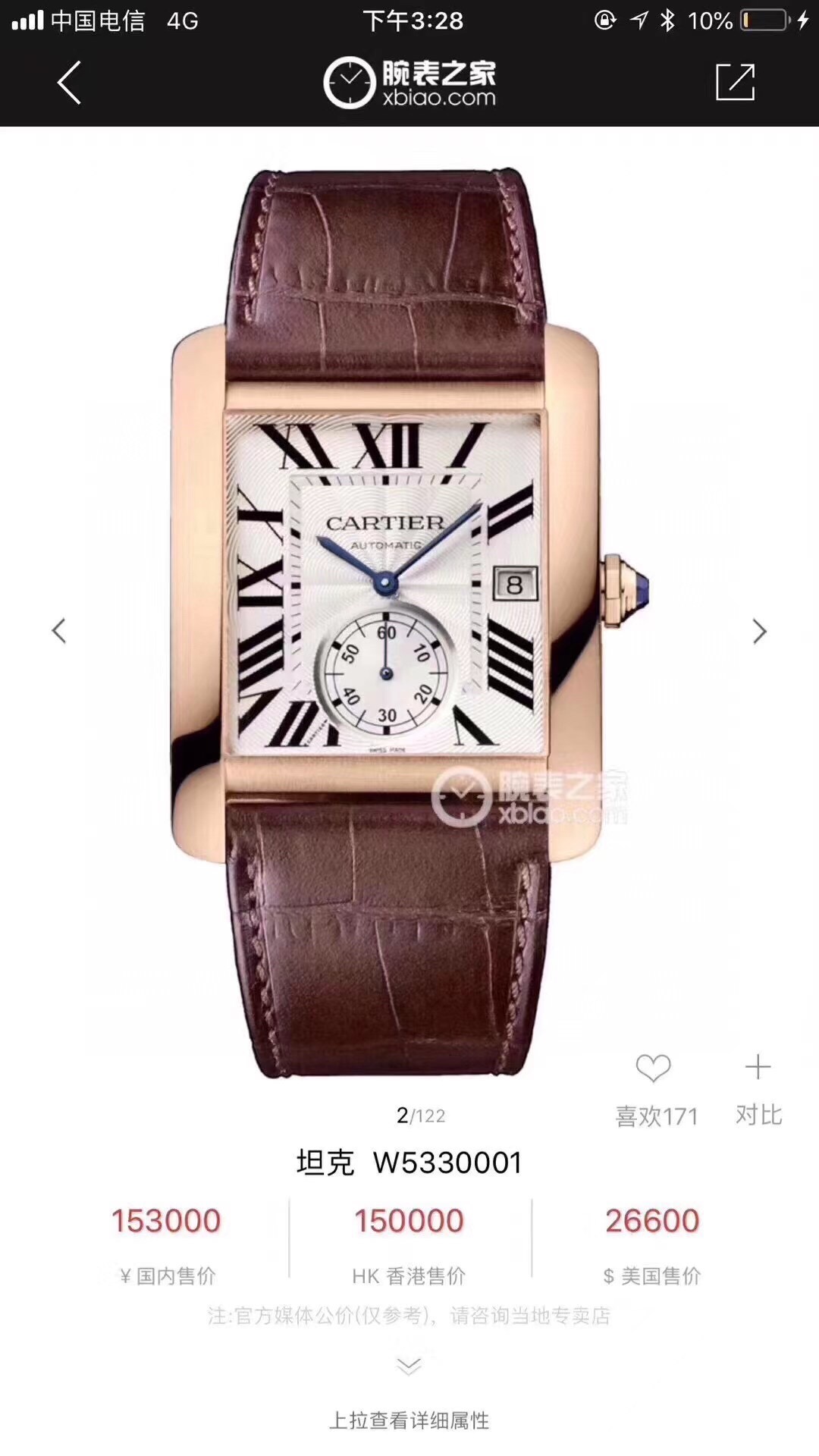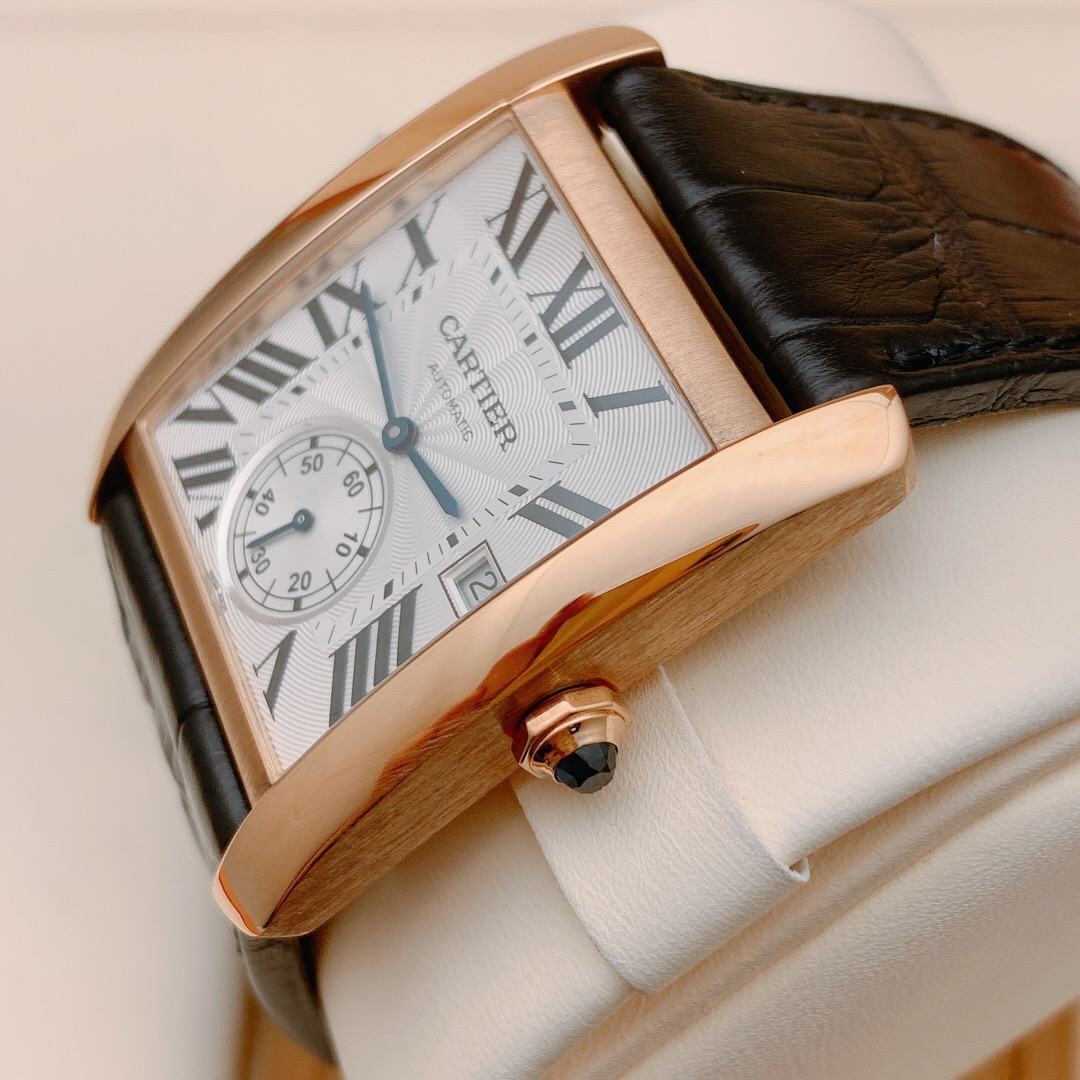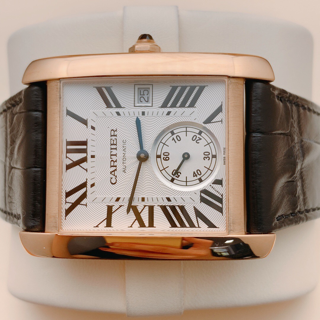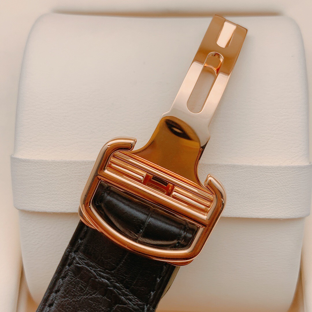 卡地亚刘德华同款 型号:W5330001 自动机械 经典款 与早前的卡地亚菱角分明的特点相比,线条更为柔和,角度也比较圆润,而且大胆融入珠宝腕表的设想,表冠上镶嵌一枚蓝色的宝石,与经典的蓝钢针相呼应。此款采用18k玫瑰金材质打造,工价154000 万时好价收藏