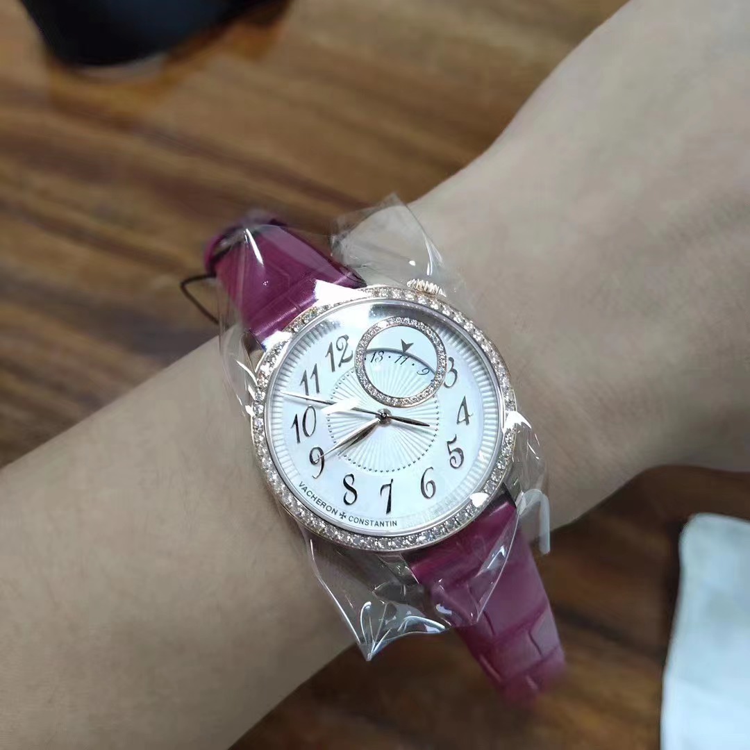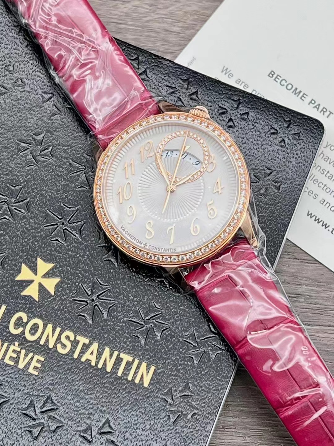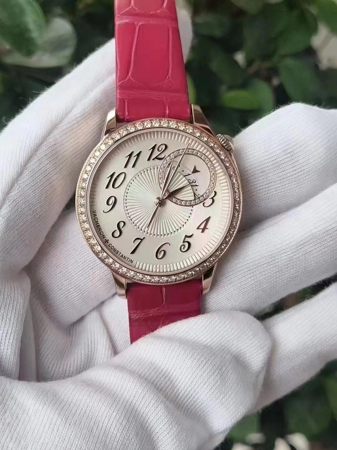 江诗丹顿4605F/000R-B496,伊灵女神系列女士腕表,35mm,自动机械,背透机芯,玫瑰金满钻 专柜价239000,未使用品全套~