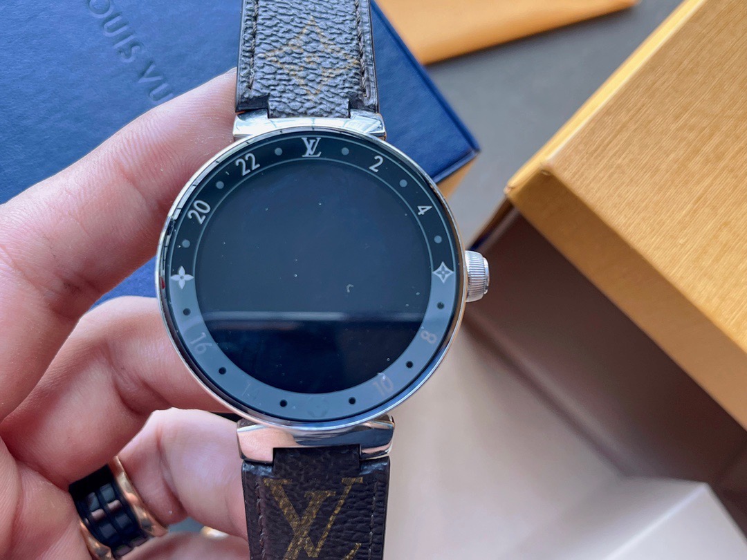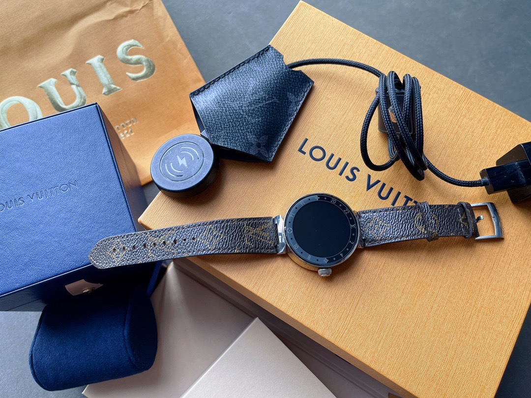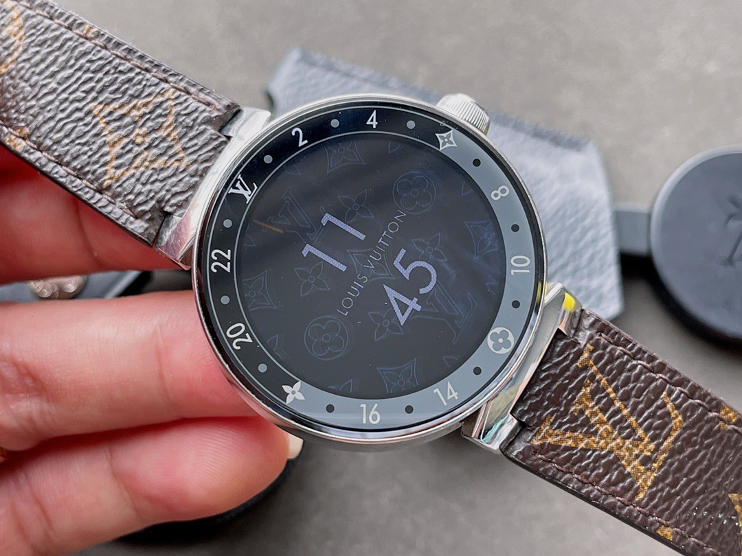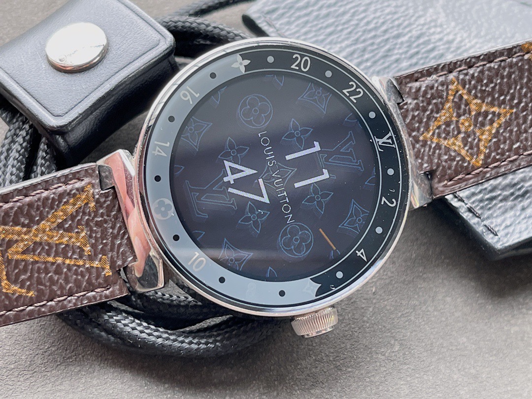 LV 智能手表系列男士智能手表 表径42毫米 精钢材质 金属色智能手表 老花皮带款 95新成色 原装皮带成色很好 附件如图 少保卡 原价20300 现好价分享