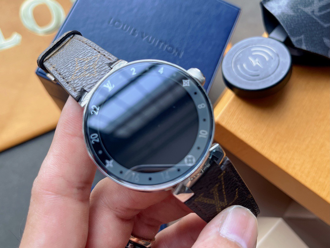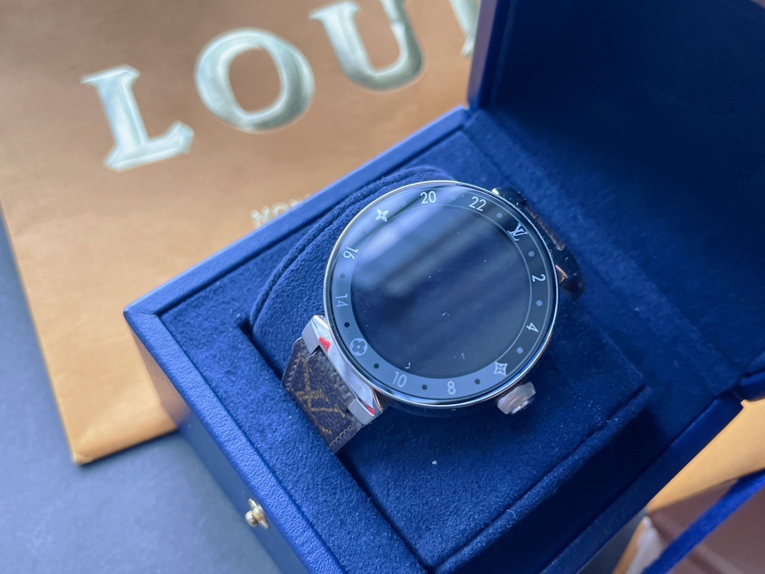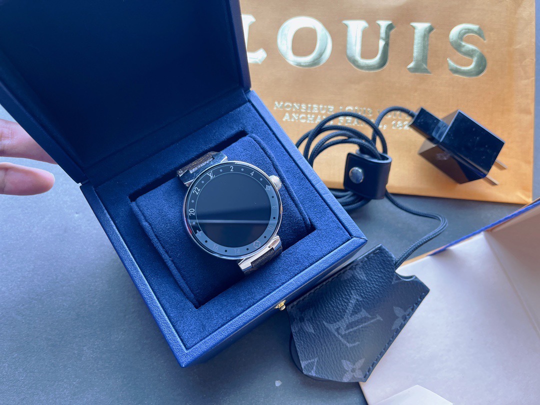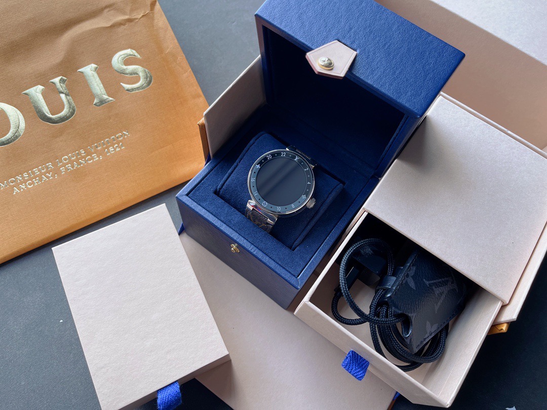 LV 智能手表系列男士智能手表 表径42毫米 精钢材质 金属色智能手表 老花皮带款 95新成色 原装皮带成色很好 附件如图 少保卡 原价20300 现好价分享